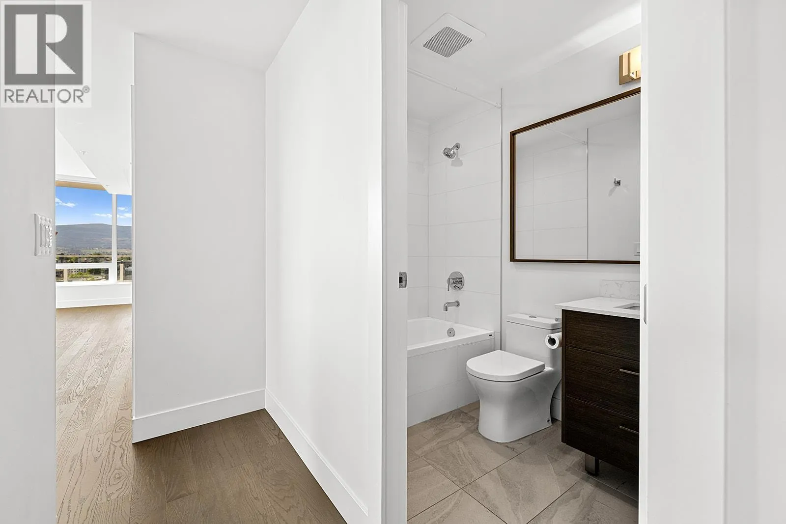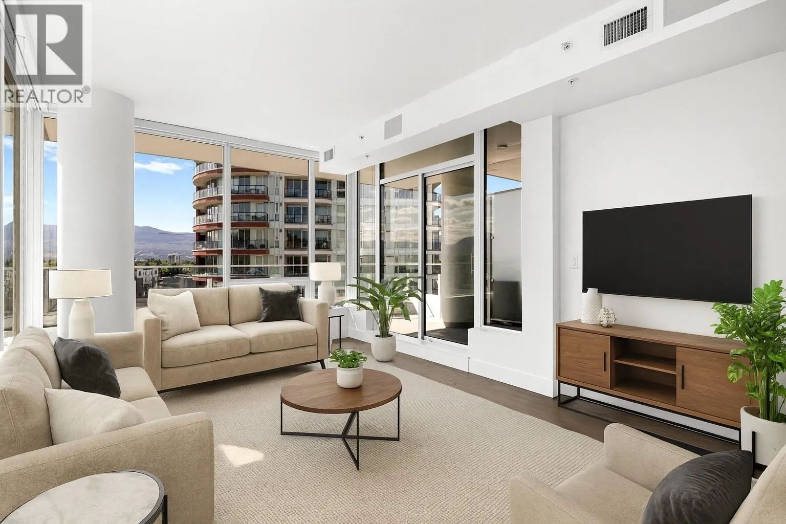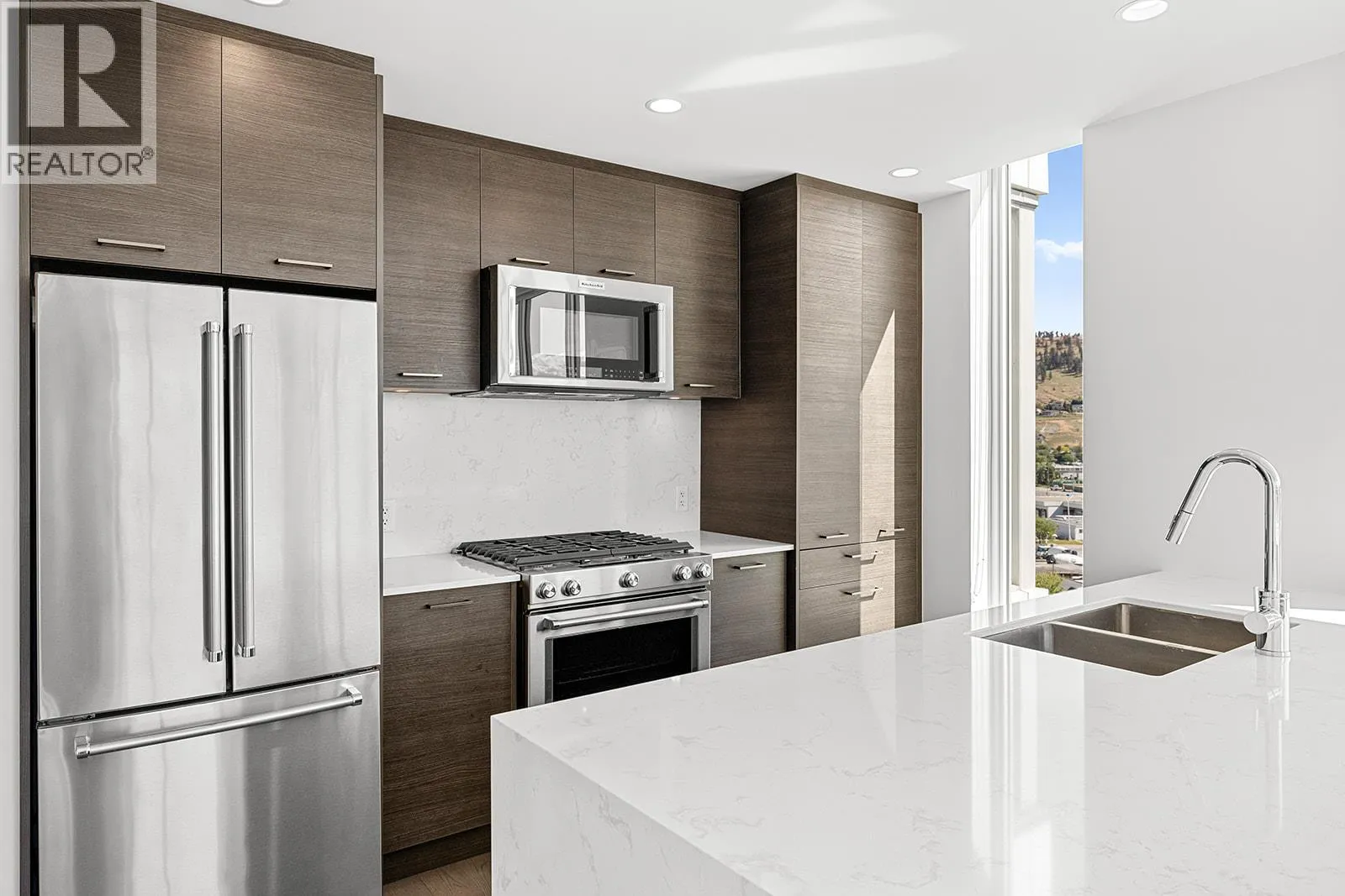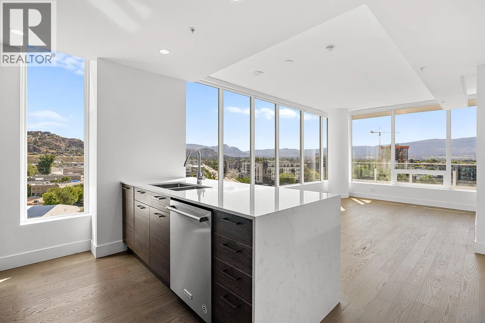 Join the prestige of ONE WATER STREET in the East Tower within this downtown location of sunny Kelowna. Located on the 8th floor, you will experience the downtown conveniences and enjoy the view above it all; restaurants, cafes, shoppes, the iconic boardwalk, walking trails, beaches and more. This home not only offers a completely hands off lifestyle, but it is a highly desirable floorplan which includes two bedrooms, two bathrooms. Upgraded Silver SMART HOME Package includes in-home speakers throughout. The inviting main entrance of the tower features a seating area with fireplace, the mail room and mailboxes for easy access in addition to 24/7 on staff security/concierge. Ample windows allows for a bright, modern design with function in mind to maximize your space and ensure your upmost comfort. The open living space is designed to take advantage of the 02 plan's patio area which produces an oversized entertaining footprint which you can enjoy during the many beautiful months in the Okanagan. With a primary suite that offers closet space, plus a stunning en-suite bathroom, this contemporary home is sure to impress. A second bedroom and washroom offers additional space for the family, guests, roommate, or a functional home office! This amenity-rich strata offers a 4th floor bench area with 2 swimming pools, an oversized hot tub, pickleball court, and BBQ areas. Fashioned with 2 first-class gym facilities, car-wash bay, conference and board rooms - vacant and ready to go! (id:27476)