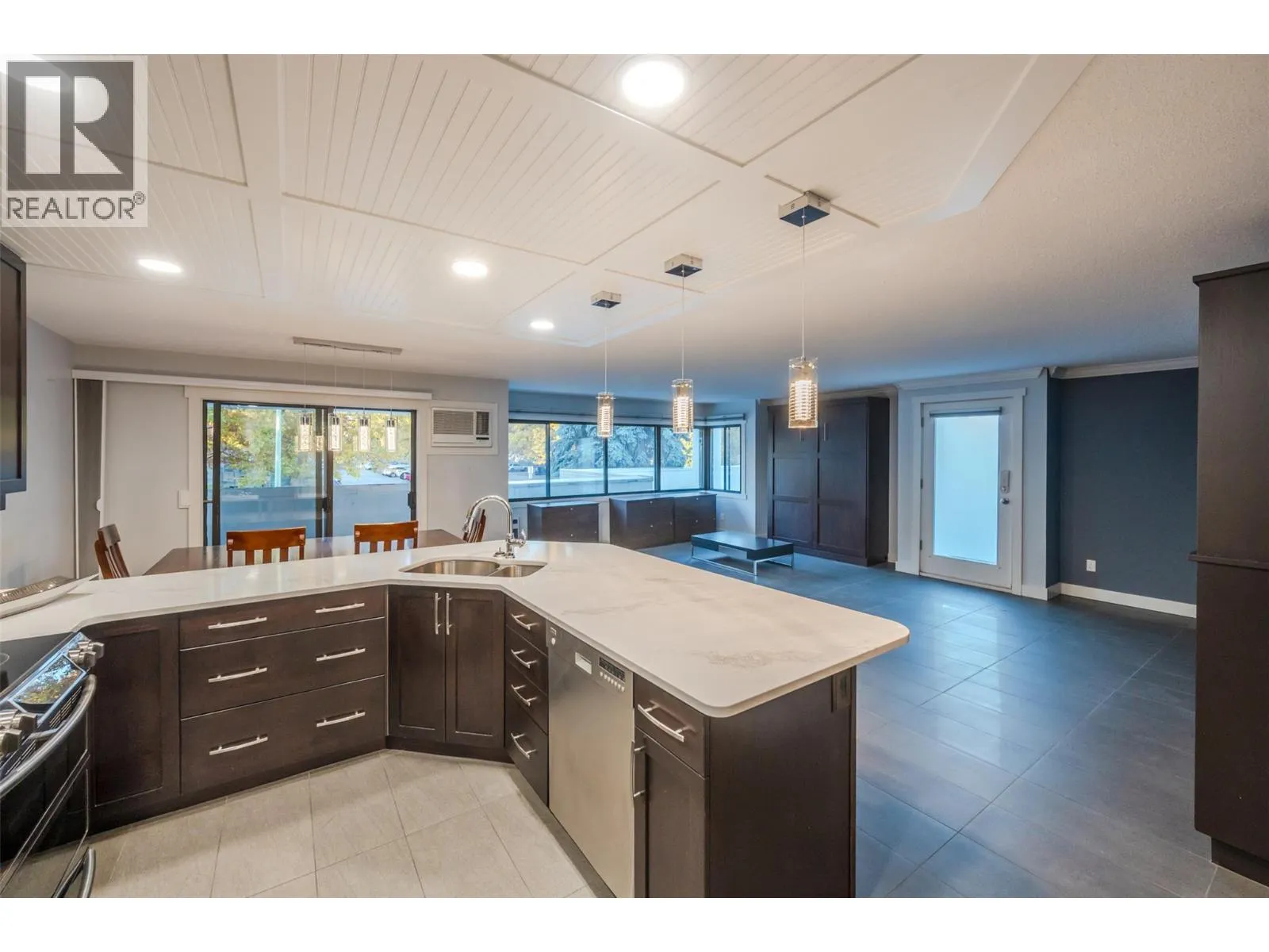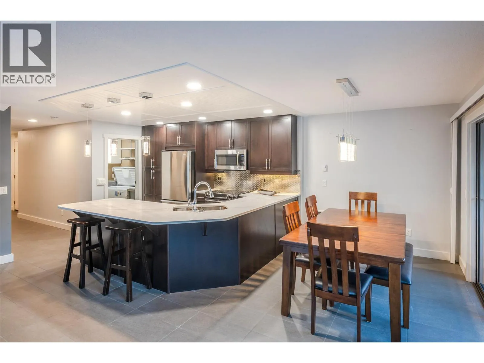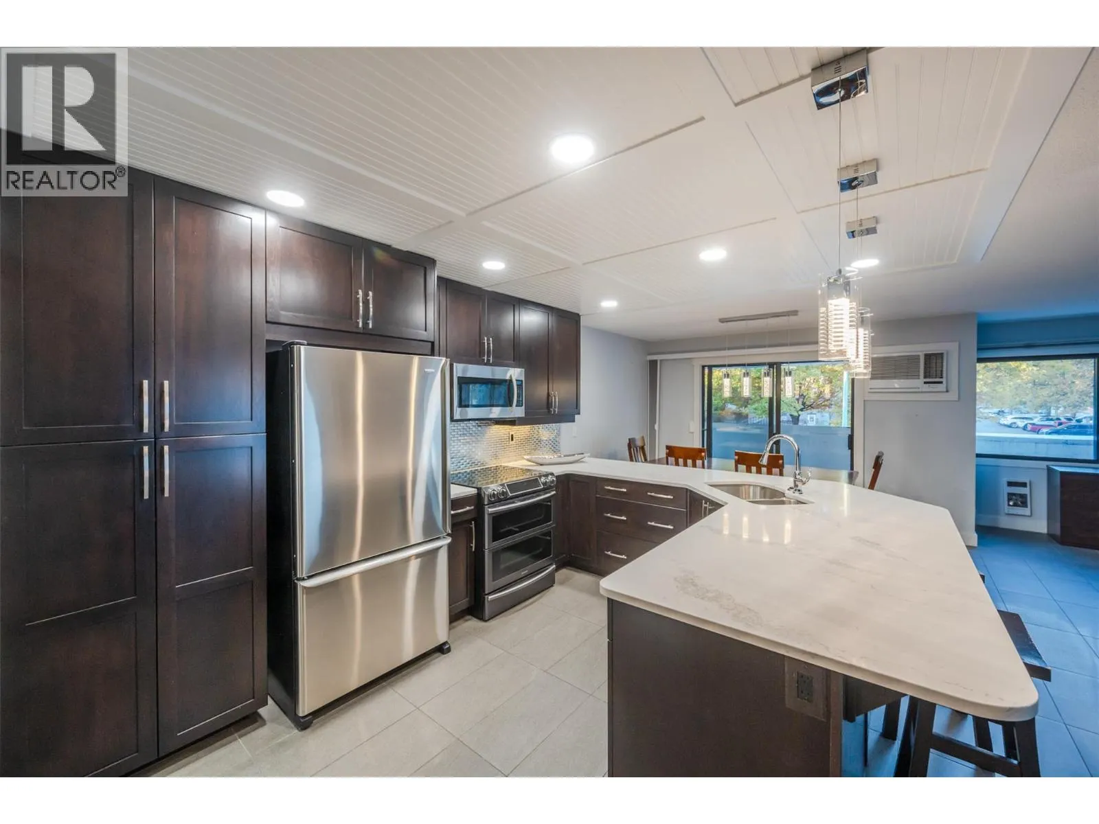 Experience downtown Kelowna living at its finest in this fully renovated 2-bedroom, 2-bath condo featuring an impressive 800 sq ft of private patio space. The open-concept layout offers a bright and stylish living area with an electric fireplace, a covered deck off the dining room, and patio access from both the living room and primary suite. The primary bedroom boasts heated floors and a 3pc ensuite, while the spacious 4pc main bath and laundry room with extra storage add everyday convenience. Enjoy top-notch building amenities including an outdoor pool, party room, exercise room, bike storage, and storage lockersâplus two underground parking spaces. All this just steps from the shops, restaurants, and entertainment of vibrant downtown Kelowna. Contact the listing agent to view! (id:27476)
