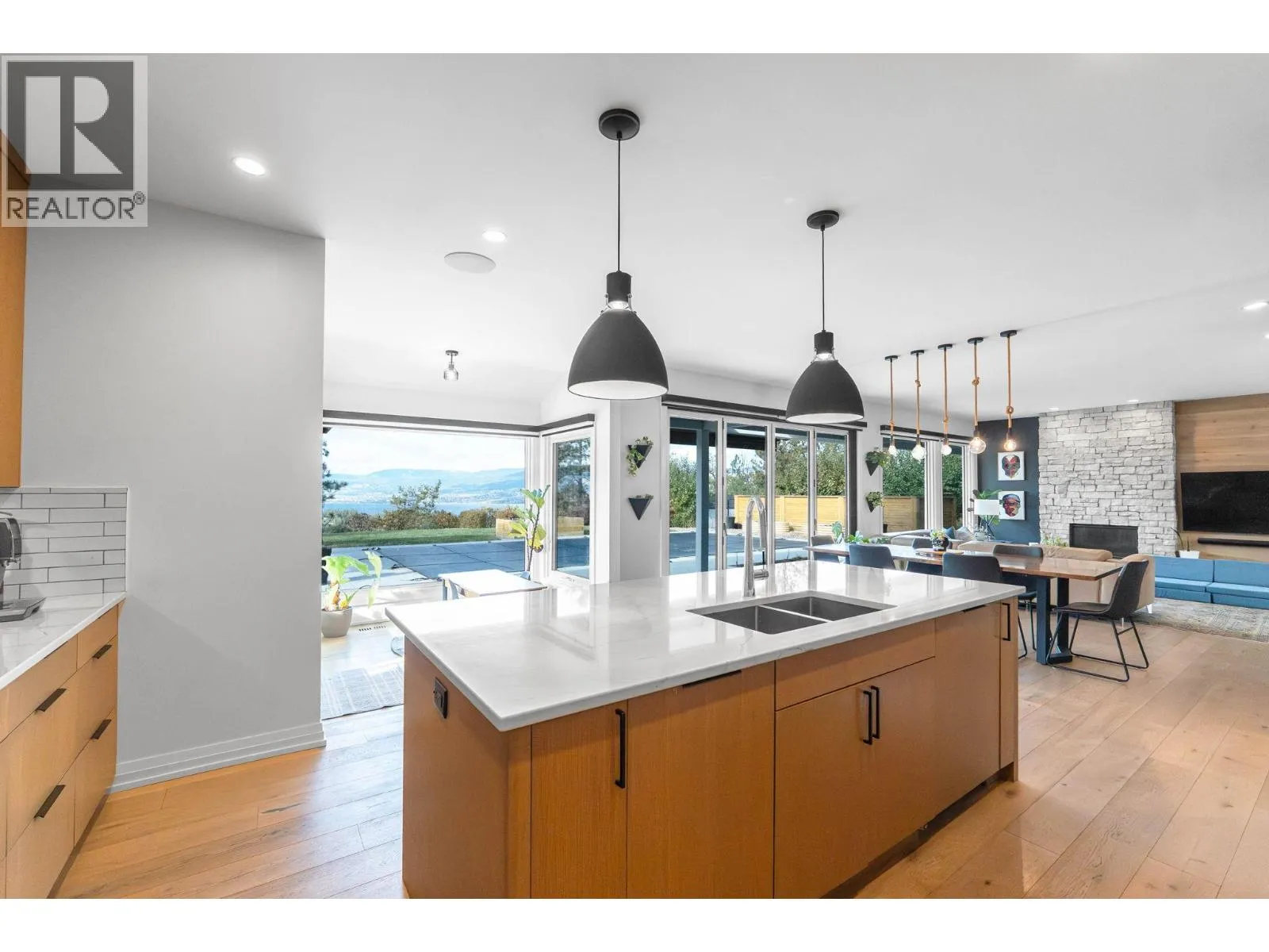 At 4,225 sq. ft., this residence showcases refined design and flow, reimagined to embody modern luxury and stunning, unobstructed views of Okanagan Lake. Designed for those who value sophistication and comfort, this home offers a perfect balance of style and livability. The main level features a designer kitchen with stone countertops and integrated high end appliances concealed behind custom cabinetry, flowing effortlessly into the dining and living spaces. Nano folding glass doors extend to a secluded backyard retreat featuring a stunning saltwater pool.âperfect for elegant entertaining or relaxed everyday living. The primary suite on the main floor is a true retreat, offering private outdoor access, a generous walk-in closet, and a spa-inspired ensuite with a freestanding soaker tub, glass shower, heated floors, and double vanity. A dedicated office and custom mudroom with exterior access and built-ins enhance both function and design. A dramatic entryway with floor-to-ceiling glass doors and soaring ceilings sets the tone for the homeâs bright, airy aesthetic. Upstairs, two spacious bedrooms capture sweeping lake views and share a full bath, while the lower level offers a theatre-style rec room, gym or flex space, two additional bedrooms, a full bath, and a separate entrance. A stunning combination of design, comfort, and refined craftsmanship define this exceptional Crawford Estates home. (id:27476)