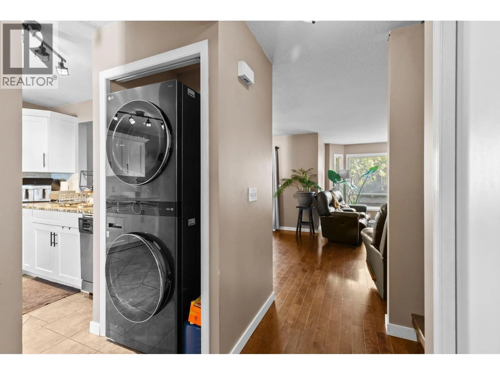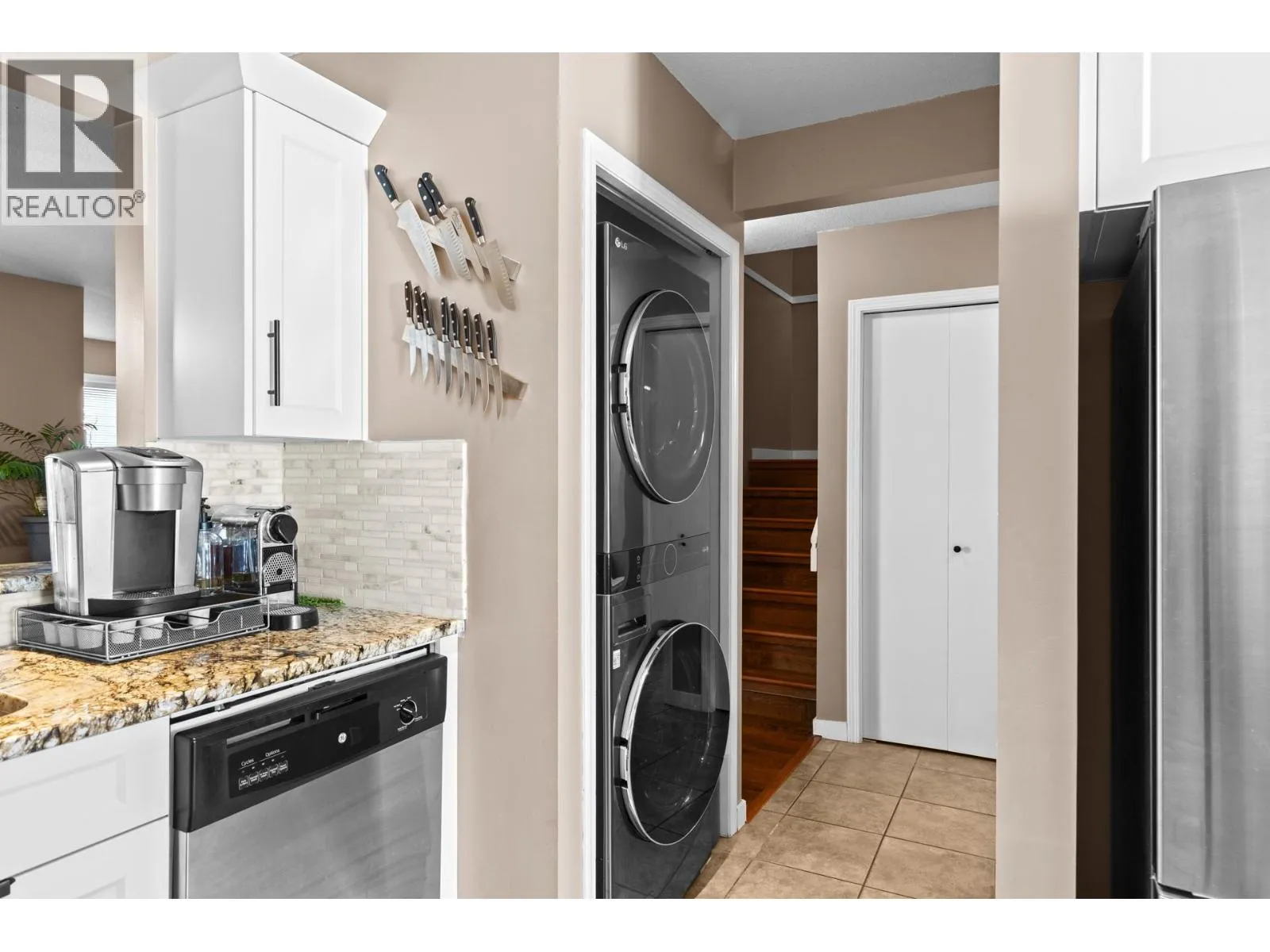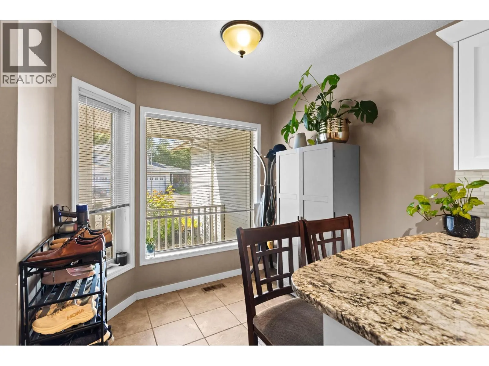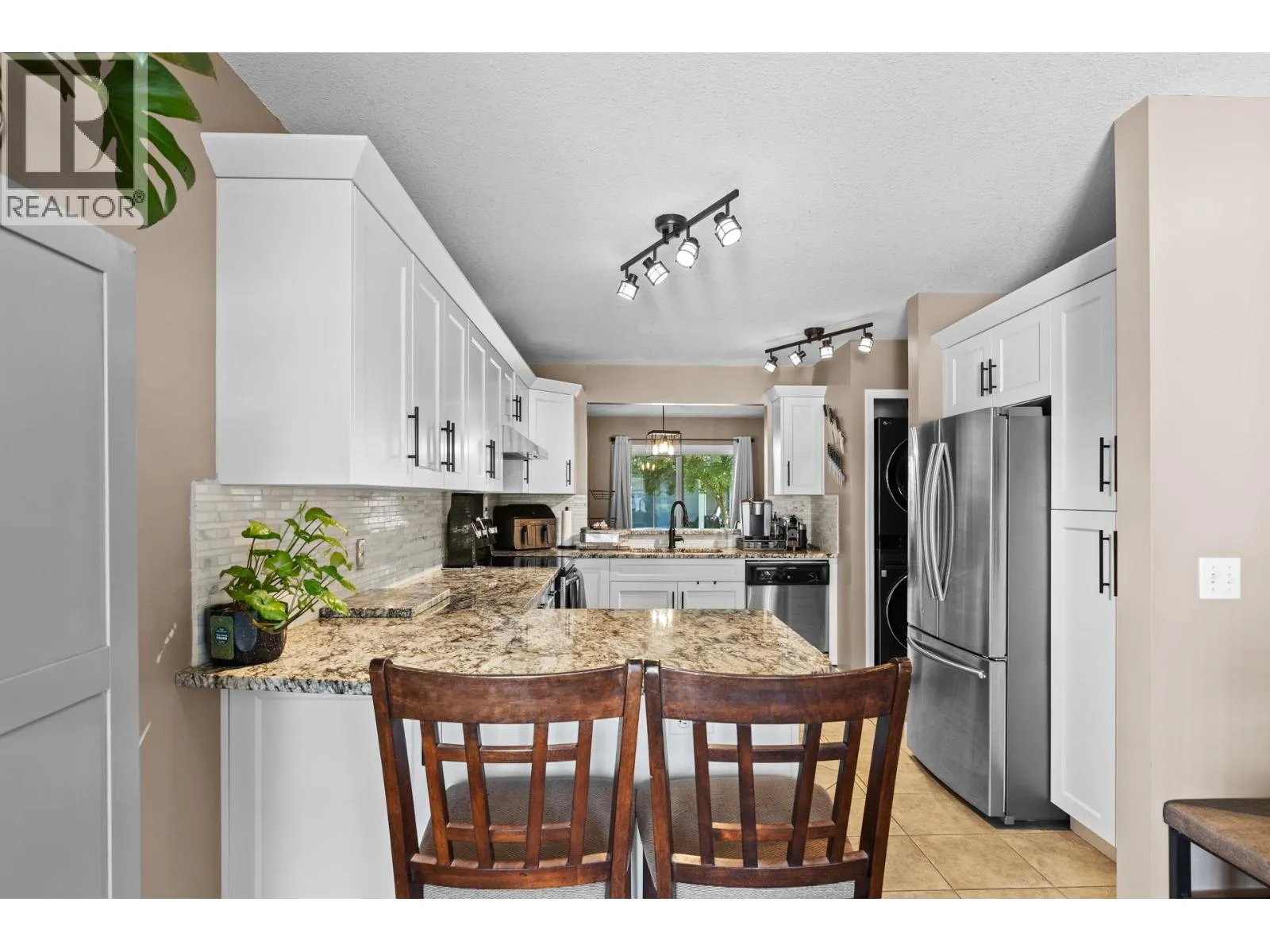 Located in Kelownaâs most sought-after central neighbourhood, this beautifully updated 3-bed, 3-bath townhouse in Aberdeen Estates offers the perfect blend of comfort, style, and convenience. Steps from beaches, shopping, restaurants, the hospital, and more, this property provides an unmatched location for those seeking the best of urban living. Upon entry, youâre welcomed by a bright and thoughtfully updated interior featuring modern finishes, fresh paint, granite countertops and a seamless layout designed for both comfort and functionality. The bright living room complete with a gas fireplace, provides ample space for both relaxation and entertaining. Engineered hardwood flooring extends through the dining & living areas, adding a modern touch. The kitchen includes a charming eating nook, ideal for family meals or casual dining, w/ versatile options to suit various lifestyles. Enjoy year-round comfort with a NEW Furnace & AC (2024), ensuring your home remains cozy in every season. Upstairs, the spacious primary bedroom offers a beautifully updated 3-pc ensuite for added comfort and privacy, while 2 additional generously sized bedrooms share a modern, updated full bathroom. The attached garage comes equipped with a Tesla charging station w/ additional parking stall out front for added convenience. Nestled in a peaceful cul-de-sac, this home benefits from minimal traffic, no road noise, and a tranquil greenspace just outside the back patio-perfect for enjoying the outdoors. (id:27476)
