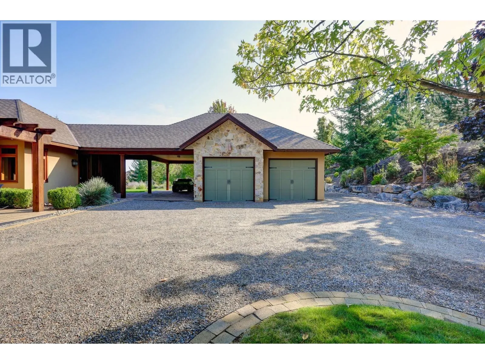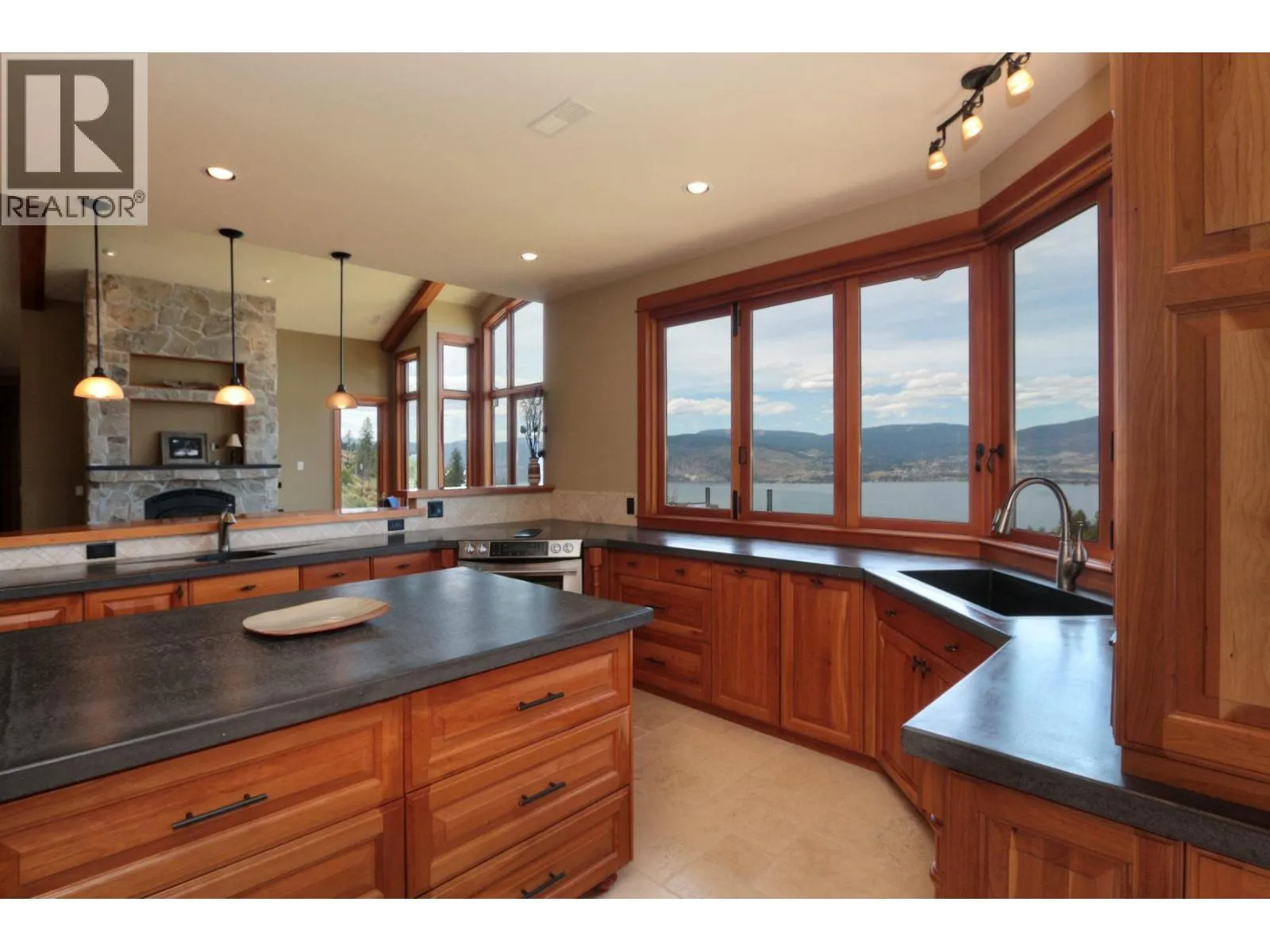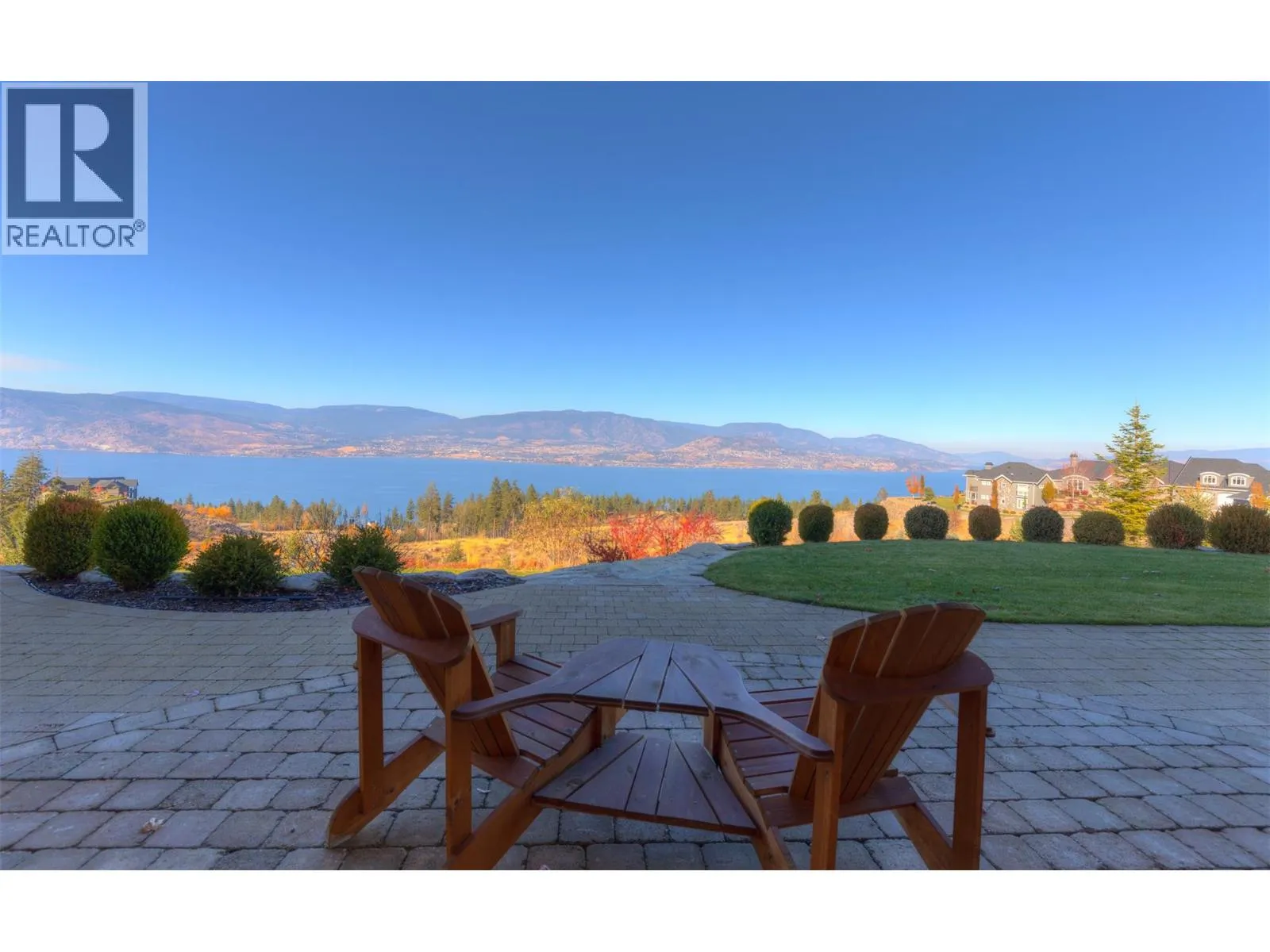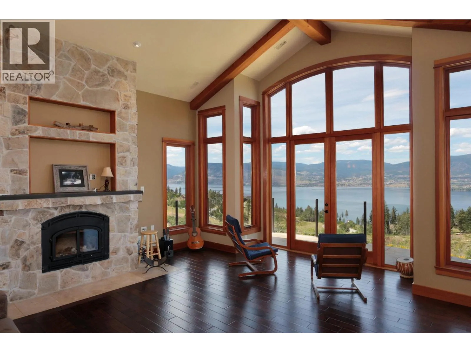 A private oasis with panoramic lake views from nearly every room, this exceptional residence is set on nearly 10 acres in the prestigious Rim Rock subdivision. The fully usable acreage is beautifully integrated with the natural Okanagan landscape, featuring scenic trails, stone staircases, and cascading water features that flow into tranquil ponds. Inside, the custom-built home exudes warmth and sophistication. With 4 bedrooms + den and 6 bathrooms, every space is thoughtfully designed and impeccably finished. The vaulted great room, gourmet designer kitchen, and spacious dining area flow seamlessly together, framed by walls of glass that showcase breathtaking vista views. Perfect for the music enthusiast, the home includes a fully insulated piano room that transitions into a soundproof recording studio. The lower level offers approximately 1,500 sq. ft. of versatile space to suit your lifestyle needs. Outdoors, multiple patios invite you to relax and take in the serene surroundings. A level, meandering drive lined with lush plantings leads to an oversized double garage and carport for additional covered parking. With top-of-the-line mechanical systems, including geothermal heating and cooling, this estate offers ultimate tranquility and timeless luxury in a spectacular lake-view setting. (id:27476)