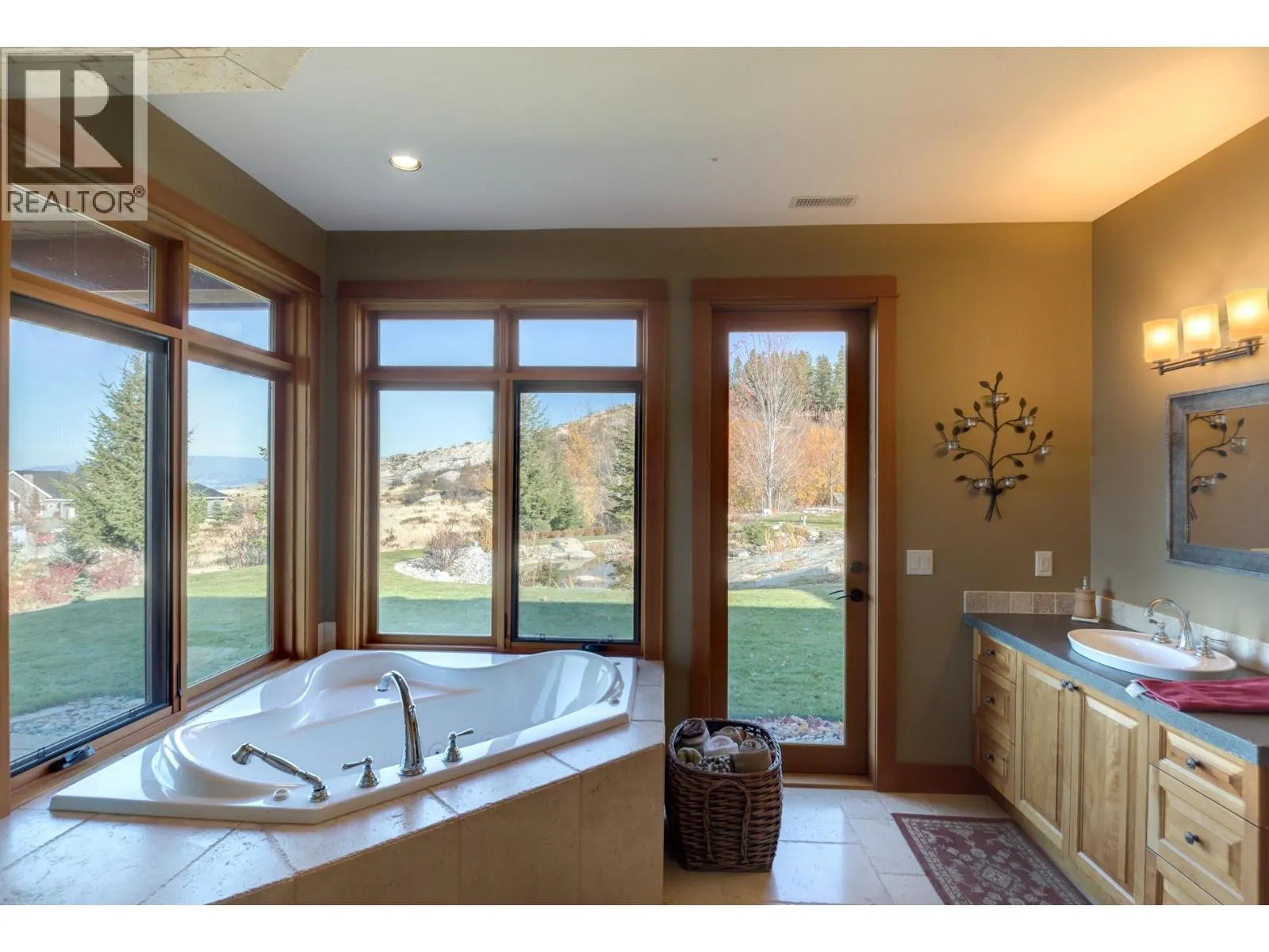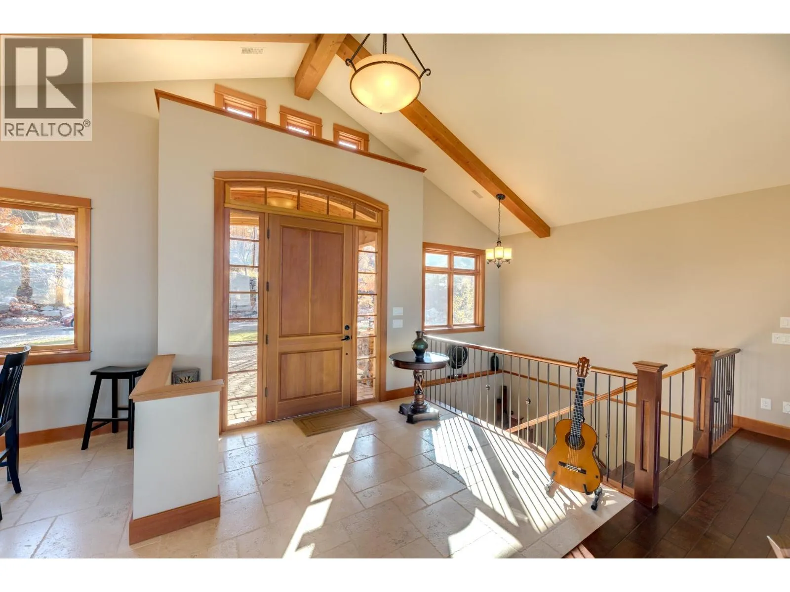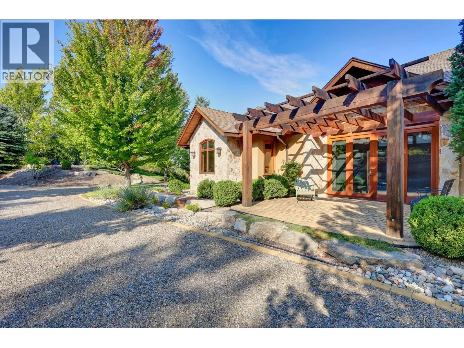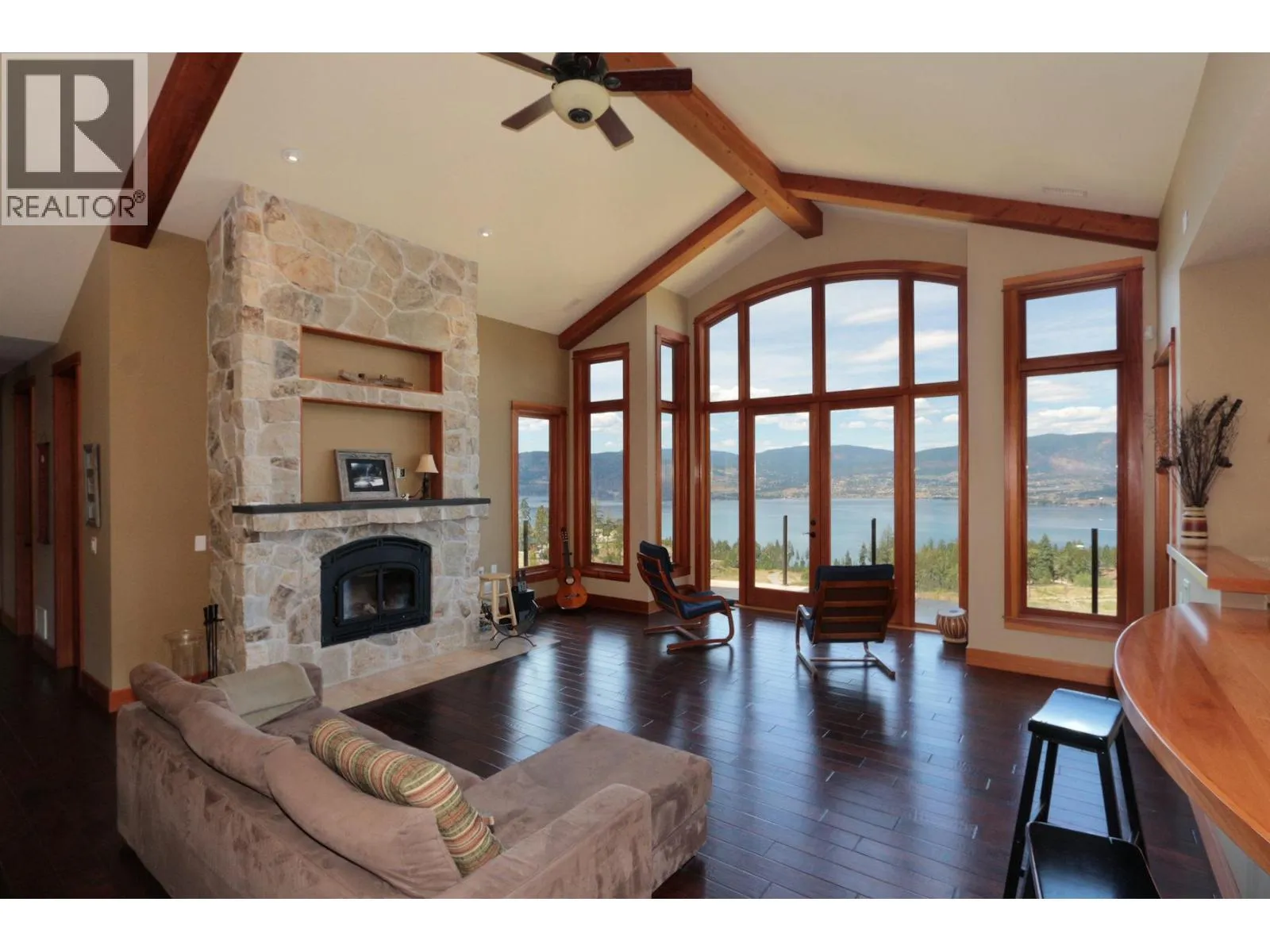 A private oasis with panoramic lake views from nearly every room, this exceptional residence is set on nearly 10 acres in the prestigious Rim Rock subdivision. The fully usable acreage is beautifully integrated with the natural Okanagan landscape, featuring scenic trails, stone staircases, and cascading water features that flow into tranquil ponds. Inside, the custom-built home exudes warmth and sophistication. With 4 bedrooms + den and 6 bathrooms, every space is thoughtfully designed and impeccably finished. The vaulted great room, gourmet designer kitchen, and spacious dining area flow seamlessly together, framed by walls of glass that showcase breathtaking vista views. Perfect for the music enthusiast, the home includes a fully insulated piano room that transitions into a soundproof recording studio. The lower level offers approximately 1,500 sq. ft. of versatile space to suit your lifestyle needs. Outdoors, multiple patios invite you to relax and take in the serene surroundings. A level, meandering drive lined with lush plantings leads to an oversized double garage and carport for additional covered parking. With top-of-the-line mechanical systems, including geothermal heating and cooling, this estate offers ultimate tranquility and timeless luxury in a spectacular lake-view setting. (id:27476)