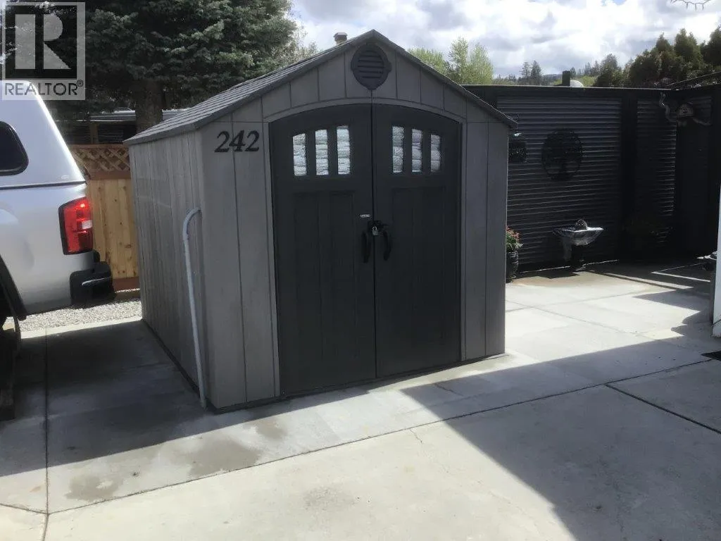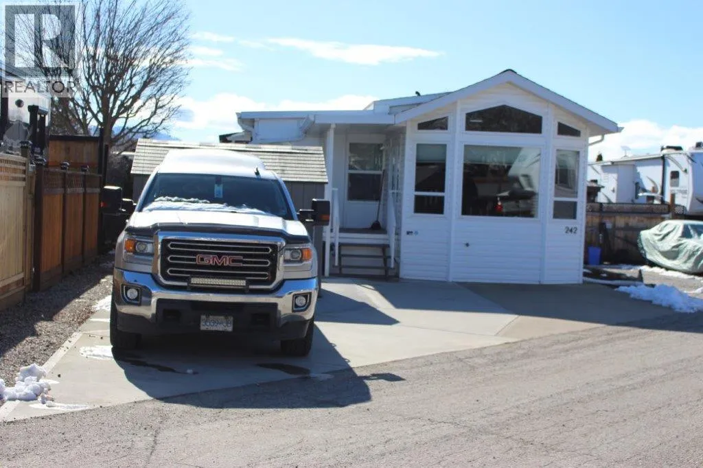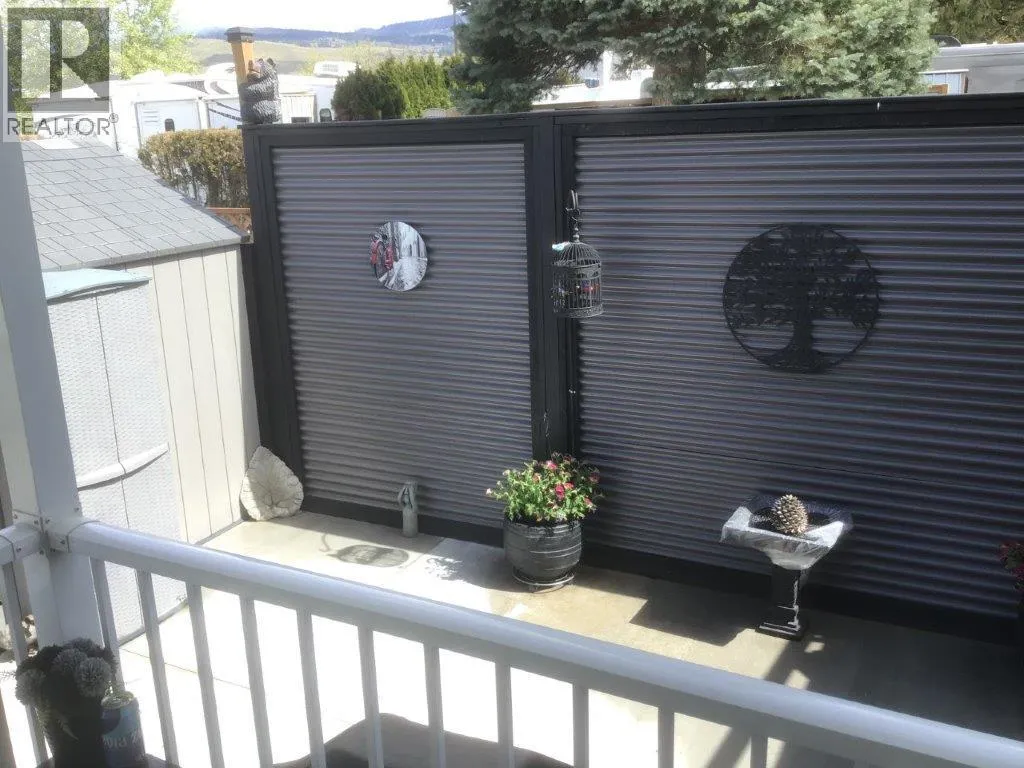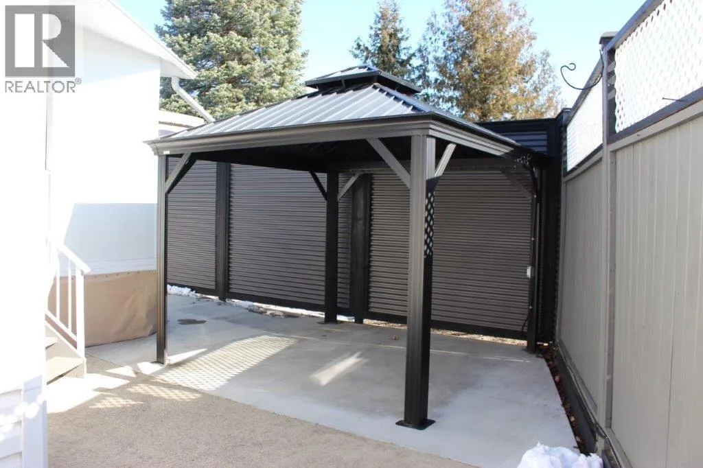 Beautiful Moduline Park Model with a 4 season Okanagan Room for added space located on a private low maintenance lot. Completely fenced in for additional privacy and safety for your pets. The open concept design allows for lots of natural light to flow throughout. The solar tube in the kitchen enhances the space. Updates in 2022 include: light fixtures, custom blinds, all appliances, 8 foot metal fence, 8 x 10 shed, 10 x 10 gazebo, and new concrete. The hot water tank was replaced in 2020. The water filtration system is included. The front and back decks are covered. Ample parking for 2 vehicles with extra parking for your guests. Centrally located to the Family Activity Centre, (Thyme at Ellison Lake restaurant, pool, hot tub & coin laundry), and the Rec Centre (indoor pool, hot tub, gym, social activities, hair salon). Lease goes to 2046. The lease is registered with the Federal Government and the Park Model ownership is transferred by Bill of Sale. The 2026 Annual Maintenance Fee is $5763 which includes security, water, sewer, use of the amenities, maintenance of the common areas and roads, snow removal and garbage disposal area. Property Taxes are payable to the City of Kelowna. Close proximity to Kelowna International Airport, UBCO, wineries, golf courses, Rail Trail, shopping and entertainment. (id:27476)