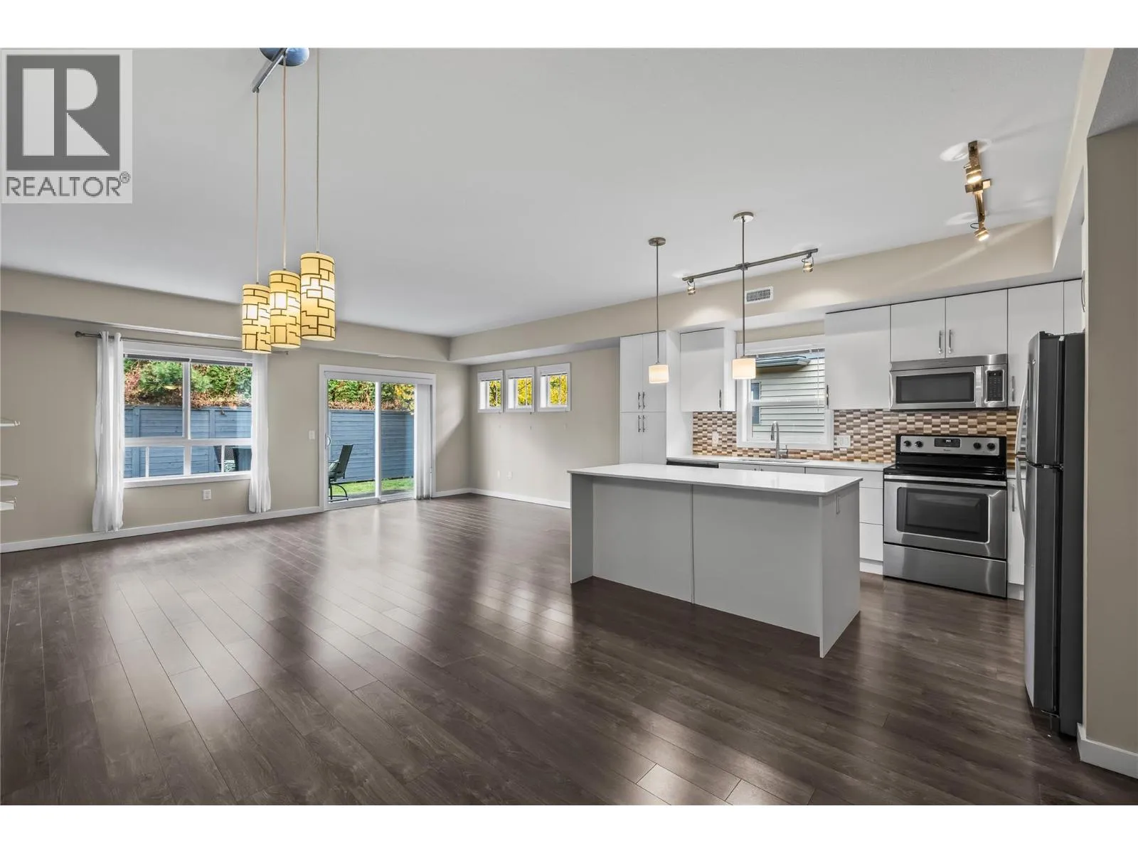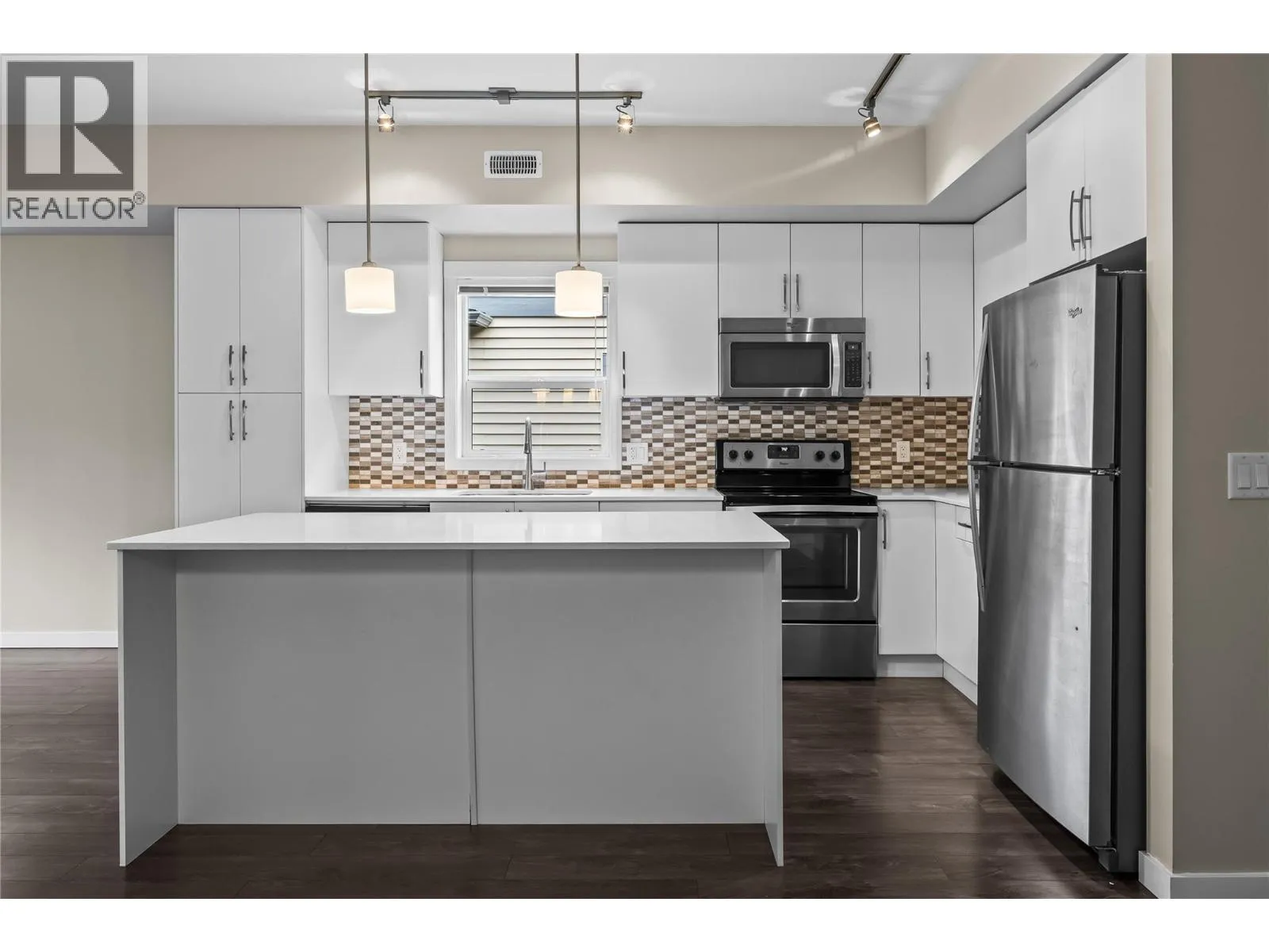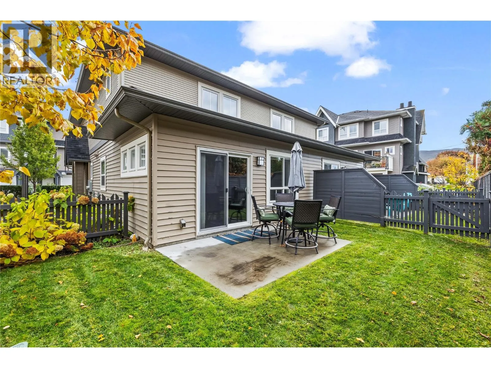 Fantastic opportunity at Brighton in Kelownaâs Lower Mission. This approx. 1,645sqft two-storey home offers 3 bedrooms and 3 bathrooms with an easy, open flow. Laminate flooring and white kitchen cabinetry give the main level a sleek, modern look. The kitchen is stylish with quartz countertops, under-cabinet lighting, mosaic tile backsplash, stainless steel appliances, and a large island, and connects naturally to the dining and living areas, ideal for families or entertaining. Upstairs, youâll find a spacious primary with shower, dual sinks, and generous counter space in the ensuite. Two additional bedrooms, and a laundry area are located upstairs for added convenience. Outside, relax on the private fenced patio with a gas BBQ outlet and room for a small garden, all surrounded by a low-maintenance yard. The double car garage adds functionality and curb appeal. Great Lower Mission neighbourhood, across from H20 and Capital News Centre, the library, and close to schools, dining and trails. In a desirable neighbourhood, this home suits downsizers, families, or first-time buyers seeking easy living in a great Lower Mission location. (id:27476)