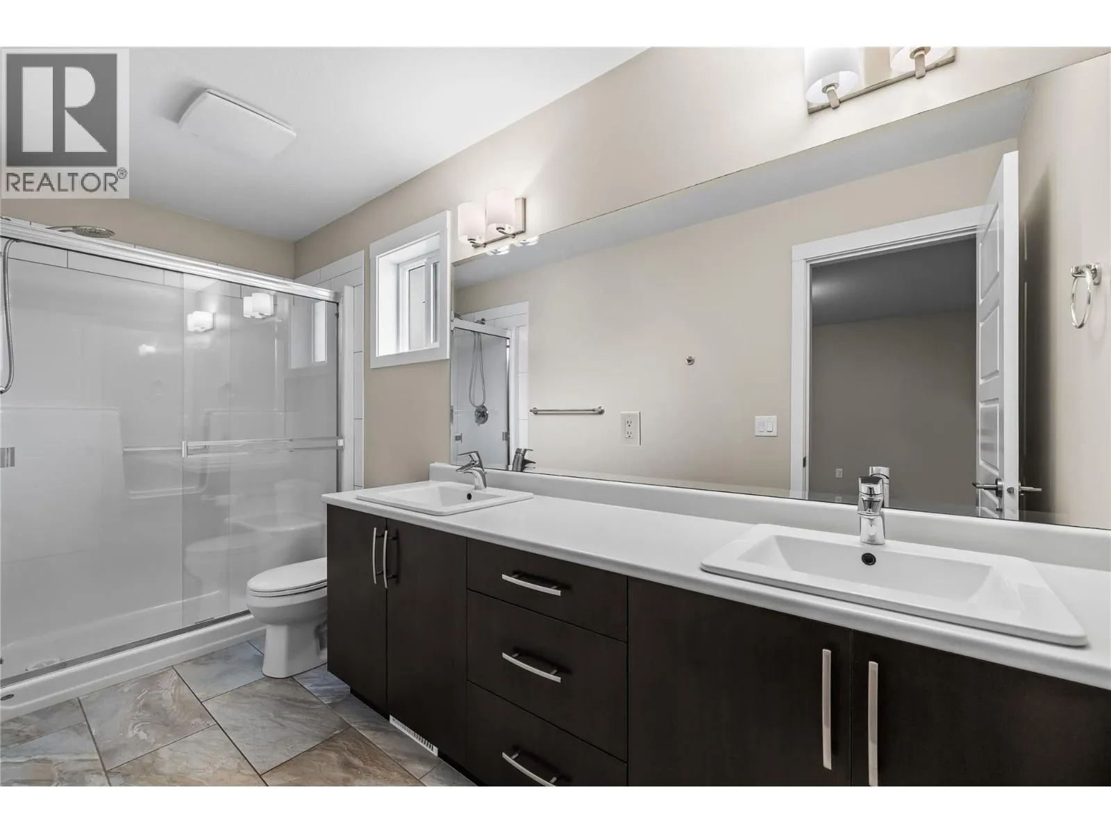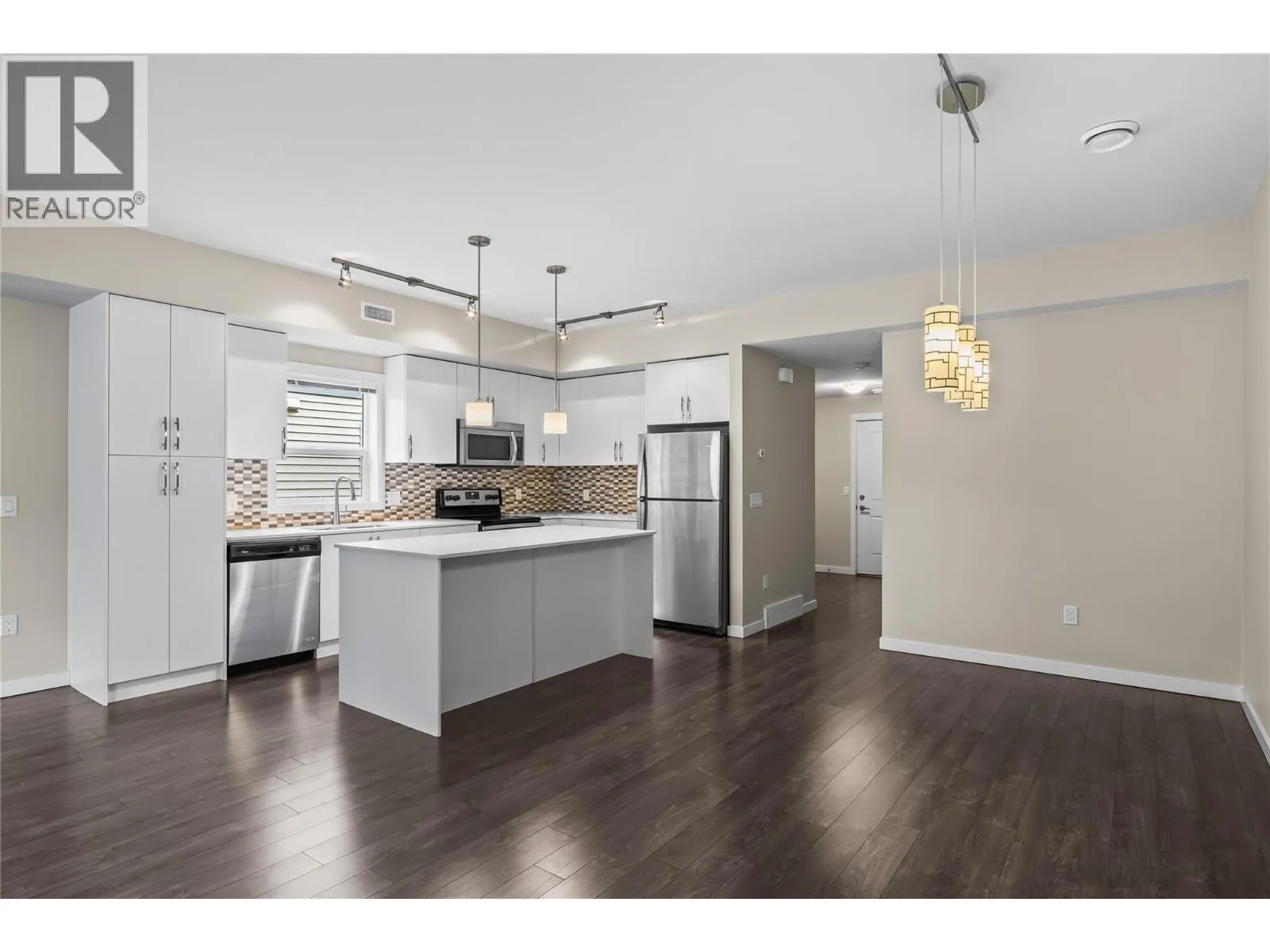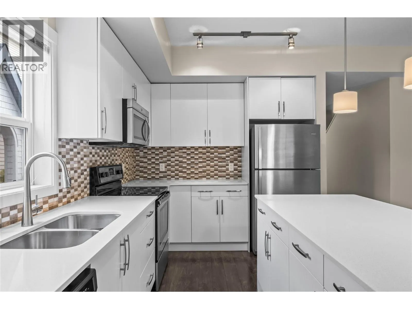 Fantastic opportunity at Brighton in Kelownaâs Lower Mission. This approx. 1,645sqft two-storey home offers 3 bedrooms and 3 bathrooms with an easy, open flow. Laminate flooring and white kitchen cabinetry give the main level a sleek, modern look. The kitchen is stylish with quartz countertops, under-cabinet lighting, mosaic tile backsplash, stainless steel appliances, and a large island, and connects naturally to the dining and living areas, ideal for families or entertaining. Upstairs, youâll find a spacious primary with shower, dual sinks, and generous counter space in the ensuite. Two additional bedrooms, and a laundry area are located upstairs for added convenience. Outside, relax on the private fenced patio with a gas BBQ outlet and room for a small garden, all surrounded by a low-maintenance yard. The double car garage adds functionality and curb appeal. Great Lower Mission neighbourhood, across from H20 and Capital News Centre, the library, and close to schools, dining and trails. In a desirable neighbourhood, this home suits downsizers, families, or first-time buyers seeking easy living in a great Lower Mission location. (id:27476)