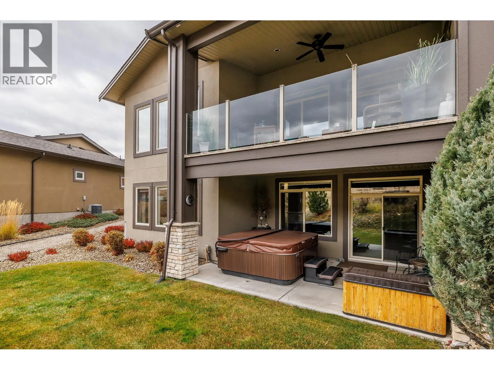 Visit REALTOR website for additional information. Located overlooking the 18th green at Tower Ranch and panoramic eastern views of the surrounding semi-desert hills. Main floor has 10' ceilings, Tuscany hand scraped maple engineered hardwood floors in Chestnut and Shaw carpeting in bedrooms and basement. Kitchen has Azul Aran granite countertops, s/s appliances, large island and Pantry. Note the pantry has laundry hookups, in case you want the laundry on this level. Dining/Living with electric fireplace and a fully covered Deck. Primary bedroom, WIC and Ensuite with heated tile, His/Her sinks and walk in shower. Second bedroom shares the main floor full Bathroom with clever Jack and Jill doorways. Downstairs has 9' ceilings, a HUGE Recreation room, Wet Bar and a covered Patio with a Hot Tub! Two more large Bedrooms, full Bathroom, Utility and Storage rooms complete the downs (id:27476)