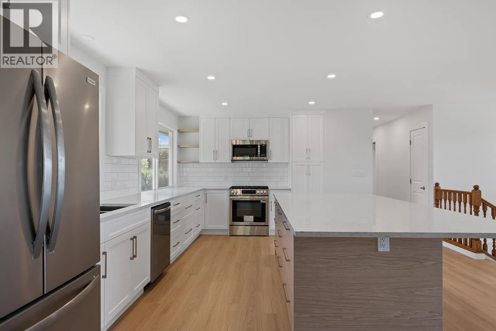The perfect blend of rural charm & urban convenience! Set on a manicured 1/4 acre lot on the Rutland Bench w/ only 4 homes on the street, this beautifully updated property fronts onto a cherry orchard & boasts expansive valley & lake views-offering rural serenity yet just minutes to shopping, schools, YLW, UBCO + only 20 min to Waterfront Park downtown & 40 min to Big White! At the heart of the home is a chef-inspired kitchen featuring custom cabinetry, quartz counters, SS appliances, gas range & massive 10x5 island w/ storage that's perfectly setup for entertaining. The bright, open main level seamlessly connects kitchen, dining & living areas, where youâll enjoy Okanagan sunsets every single evening while cozying up & relaxing by the WETT-certified wood-burning fireplace. French doors lead to the enclosed bonus sunroom & deck access for year-round enjoyment. Main level also features 3 bedrooms including the primary w/ beautiful new 3-pc ensuite + new full 4-pc bath. The walk-out lower level adds incredible versatility w/ a 1-bedroom in-law suite complete w/ kitchen & spacious rec roomâperfect for extended family & guests. Move-in ready w/ peace of mind including new roof, furnace, A/C, HWT, updated elec/plumbing & newer windows throughout. Outside: 6-zone irrigation, tiered garden, peach tree & 2 cherry trees + Plenty of parking & attached garage w/ 30A EV plug. If you're looking for the perfect family home in a choice location, this may be the one you've been waiting for! (id:27476)