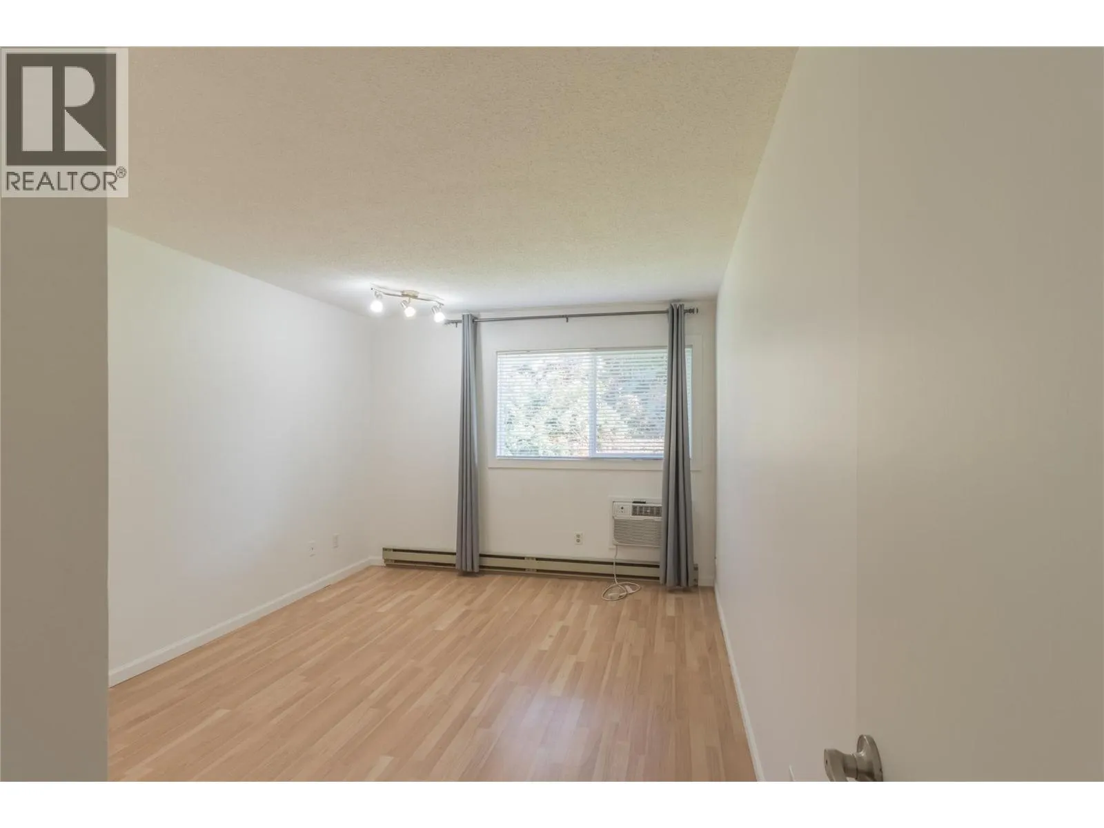 Welcome to Kelowna House, 445 All Star Court, Unit #106, a well-kept community with an outdoor pool and a relaxed vibe. This freshly painted, move-in ready 673 sq.ft. ground-floor unit offers open-concept living, a cheater 4-piece bath, and an east-facing enclosed glass deck, a private, year-round retreat surrounded by natural greenery. Features include three appliances, wall A/C, and one secure underground parking stall. Strata fees are quite reasonable, covering access to the pool and common areas. Quietly tucked within the complex, this suite offers comfort and convenience in equal measure. (id:27476)