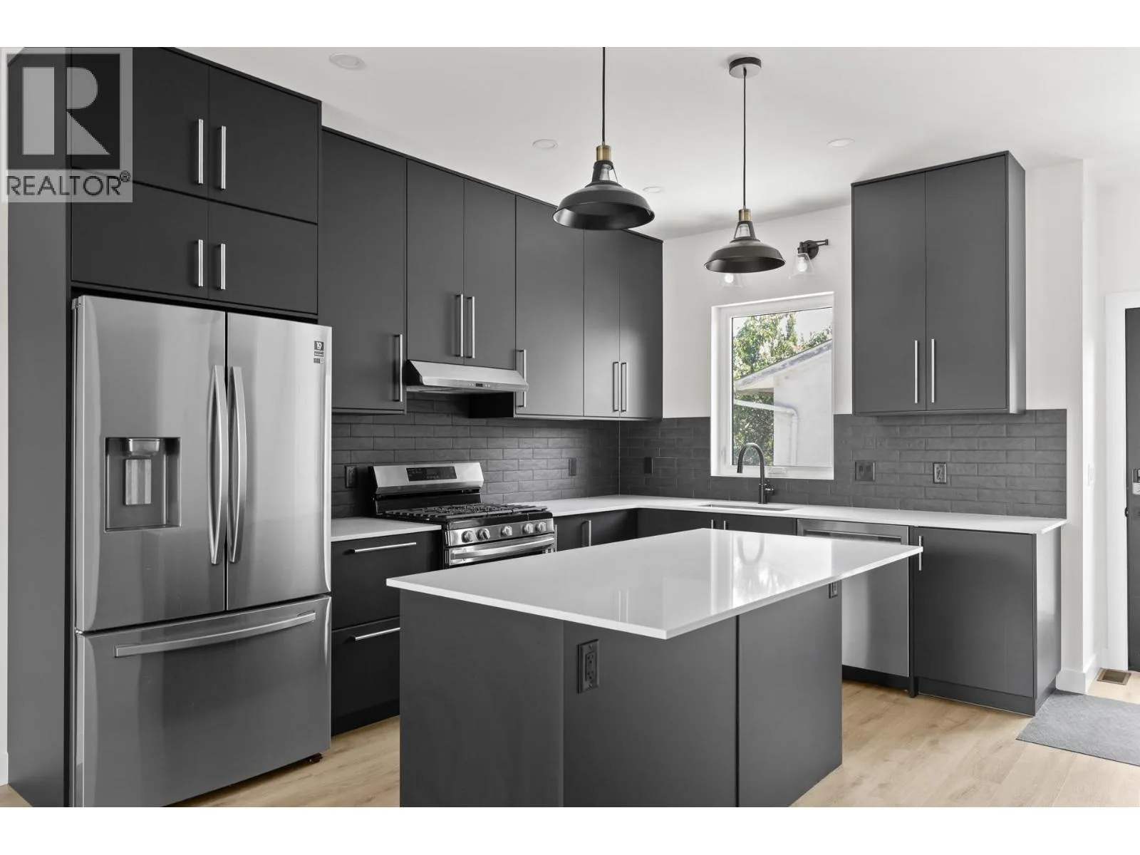 Discover modern living at its finest in this stunning 2022-built townhome, part of a fourplex located at 3 2825 Richter St, Kelowna. Situated in the prime Kelowna South area, you'll be steps away from parks, the beach, and top-rated schools. This 3-level home plus rooftop patio offers the perfect blend of style, comfort, and convenience. The main level features a sleek quartz island kitchen, a convenient 2-piece bathroom, and a bright, open-concept living and dining area that flows effortlessly to the back patio, ideal for BBQs and entertaining. Large windows throughout ensure plenty of natural light. The upper floor boasts two primary bedrooms, each with its own ensuite and walk-in closet, as well as laundry facilities. The rooftop patio is a true highlight, offering a great space to enjoy those warm summer days in the Okanagan. The basement level provides additional space with a third bedroom, a full bathroom, a spacious family room, and a mechanical room. This home truly has it all! Don't miss out on the opportunity to make this incredible home your own. 1 car parking in shared garage and 1 spot in front of garage. (id:27476)