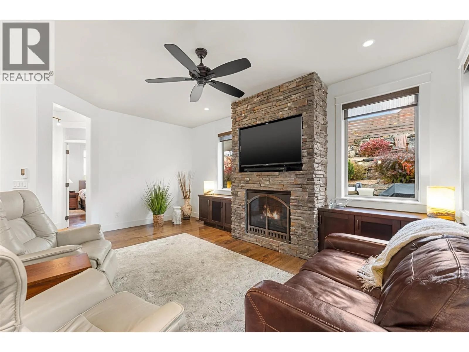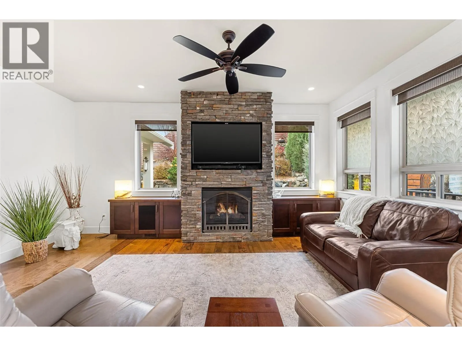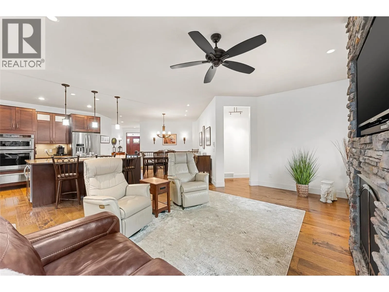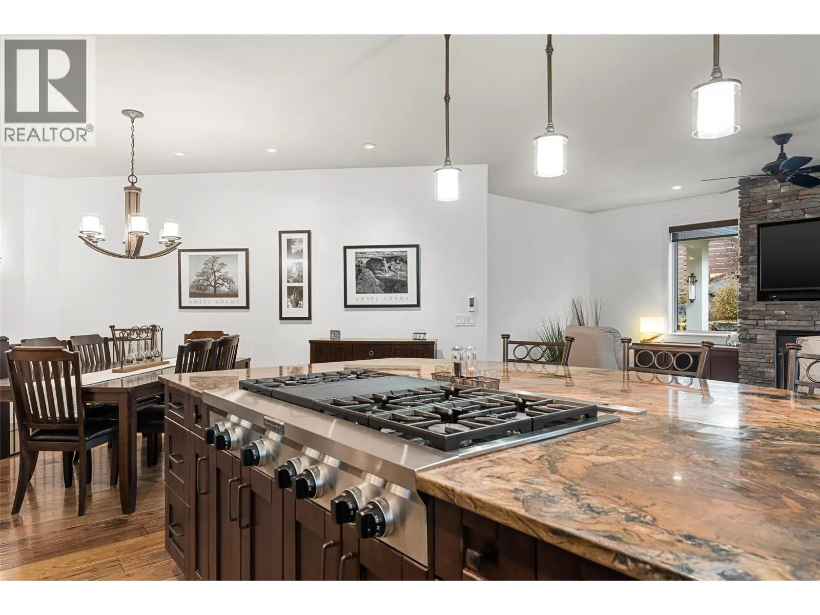 Nestled in the heart of Upper Missionâs coveted Ponds community, this custom-built 4-bed + den residence offers the perfect blend of elegance and comfort. Steps from Canyon Falls Middle School and Mission Village, this home is surrounded by scenic hiking/biking trails and just minutes from world-class wineries, beaches, top-tier schools, and vibrant local amenities. Designed for luxury living and seamless entertaining, the open-concept main floor is adorned with hardwood floors, 9-ft ceilings, and a stone-surround gas fireplace that anchors the inviting living space. The gourmet kitchen is a chefâs dream with stainless steel appliances, a KitchenAid 6-burner gas cooktop with griddle, built-in ovens, a warming drawer, beverage fridge, and a custom island with a built-in wine rack. A walk-in pantry with roll-out shelves adds effortless organization. The main-floor primary retreat boasts a spa-inspired ensuite with heated floors, a soaker tub, and a jetted rainfall shower. An additional main-floor bedroom offers flexibility as a home office or guest suite. Downstairs, the bright and spacious lower level is perfect for family living, featuring a large rec room, 3 beds, a full bath, and direct access to the 2 car garage with high ceilings. Outdoors, enjoy a private patio, rock retaining walls, and stunning lake views. The perfect backdrop for morning coffee or evening gatherings. This home offers both luxury and practicality in one of Kelownaâs most desirable neighborhoods. (id:27476)