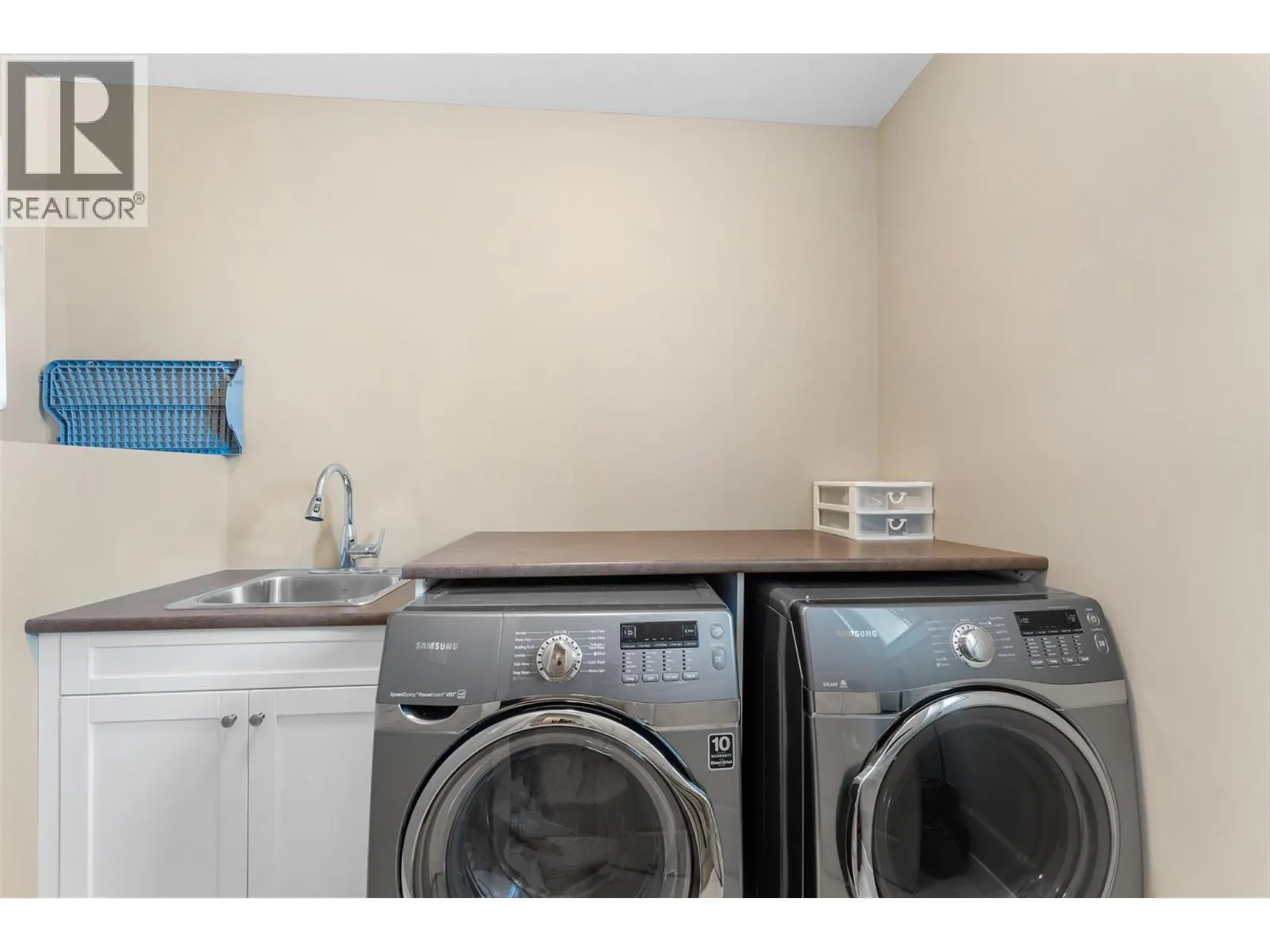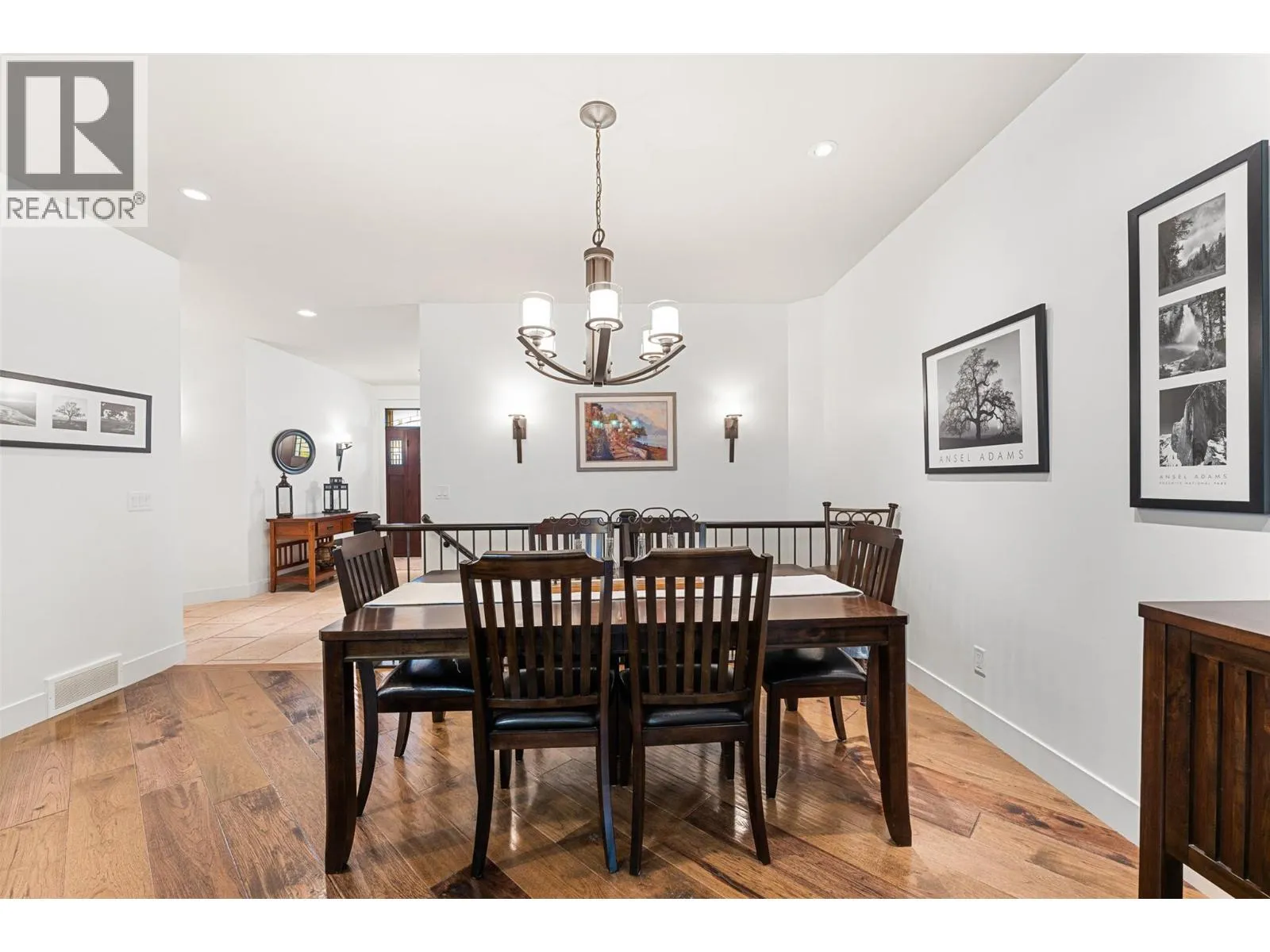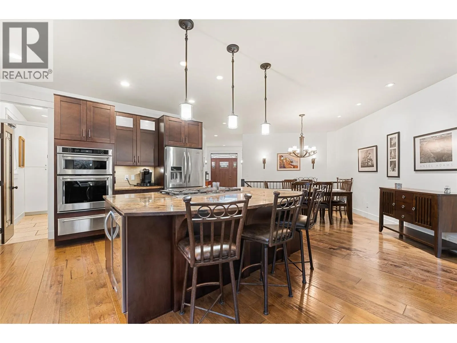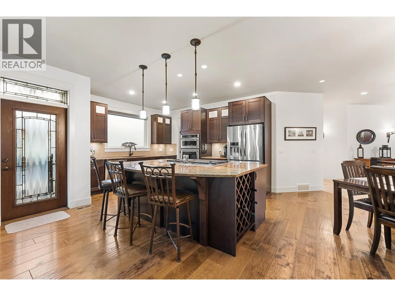 Nestled in the heart of Upper Missionâs coveted Ponds community, this custom-built 4-bed + den residence offers the perfect blend of elegance and comfort. Steps from Canyon Falls Middle School and Mission Village, this home is surrounded by scenic hiking/biking trails and just minutes from world-class wineries, beaches, top-tier schools, and vibrant local amenities. Designed for luxury living and seamless entertaining, the open-concept main floor is adorned with hardwood floors, 9-ft ceilings, and a stone-surround gas fireplace that anchors the inviting living space. The gourmet kitchen is a chefâs dream with stainless steel appliances, a KitchenAid 6-burner gas cooktop with griddle, built-in ovens, a warming drawer, beverage fridge, and a custom island with a built-in wine rack. A walk-in pantry with roll-out shelves adds effortless organization. The main-floor primary retreat boasts a spa-inspired ensuite with heated floors, a soaker tub, and a jetted rainfall shower. An additional main-floor bedroom offers flexibility as a home office or guest suite. Downstairs, the bright and spacious lower level is perfect for family living, featuring a large rec room, 3 beds, a full bath, and direct access to the 2 car garage with high ceilings. Outdoors, enjoy a private patio, rock retaining walls, and stunning lake views. The perfect backdrop for morning coffee or evening gatherings. This home offers both luxury and practicality in one of Kelownaâs most desirable neighborhoods. (id:27476)