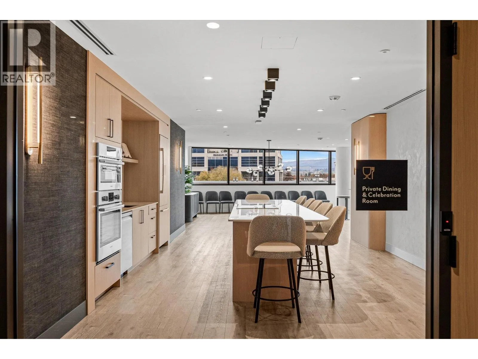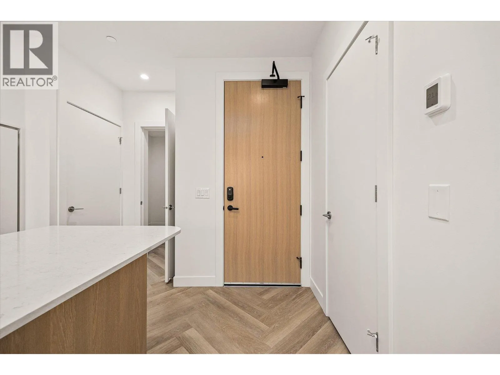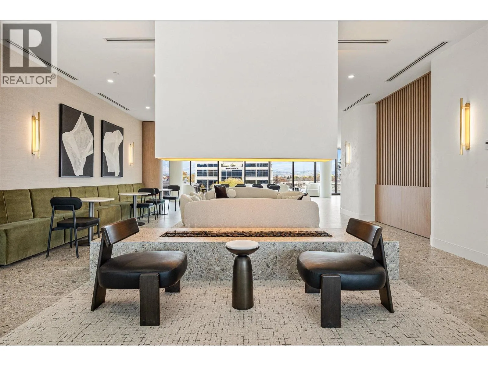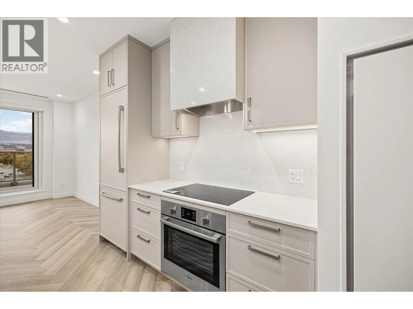 Modern Lakeside Amenity-Rich Living at Movala; Kelownaâs most anticipated new address, positioned between sandy beaches, vibrant eateries & boutique shopping! This gorgeous lakeview 1-bdrm+den condo combines modern design with functionality, creating an effortless urban retreat just steps to Pandosy Village. Beautifully crafted, featuring modern cabinetry, luxury vinyl plank flooring, quartz surfaces & 9ft ceilings. The chef-inspired kitchen offers premium SS appl. complemented by a fully integrated refrigerator. The spacious island offers plenty of prep space & casual seating for 4 - perfect for entertaining! The bright living area flows seamlessly to the covered south-facing patio w/natural gas hookup, where you can take in views of Okanagan Lake, Gyro Beach Park & soak up the Kelowna sunshine! The primary bdrm features a walk-in closet w/custom built-ins & large south-facing window, while the sleek 4pc bath boasts an oversized walk-in shower, dual sinks & modern tile finishes. A versatile den completes this cozy home & offers flexibility for guests or home office. Movala offers resort-inspired amenities - A lakeview pool & hot tub and cabanas surrounded by lush landscaped grounds with fire tables, bocce lawns & alfresco BBQ areas. Inside, enjoy a gym & yoga studio, co-working spaces, entertainment lounge, great room with casual seating, a library, private dining room + a guest suite & pet wash! Truly an unmatched lifestyle in an unmatched location! & GST has been paid! (id:27476)