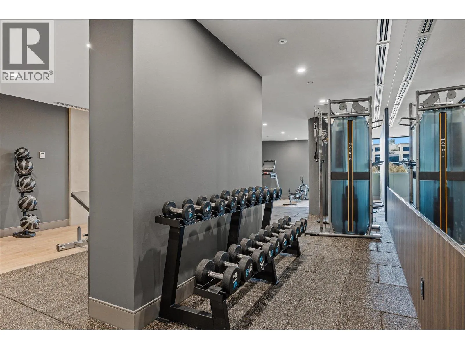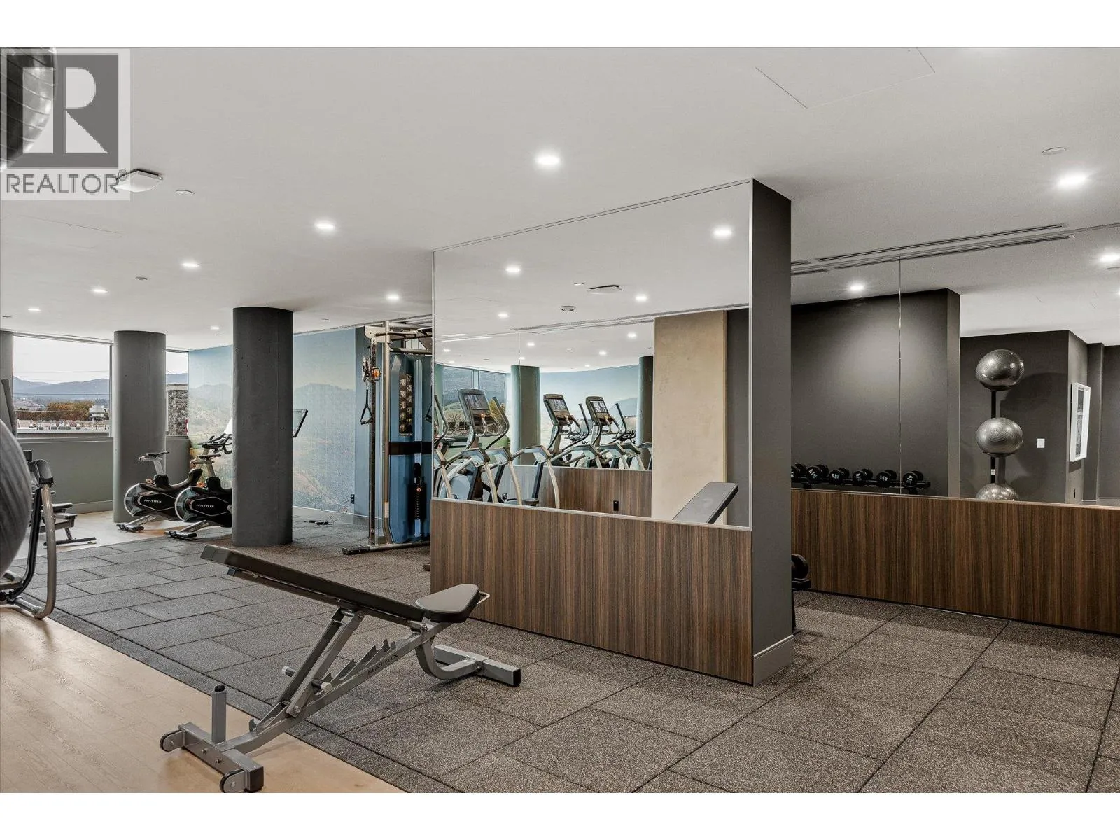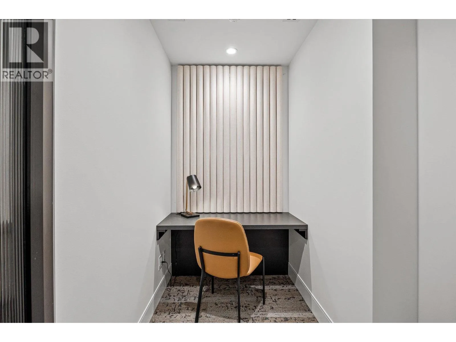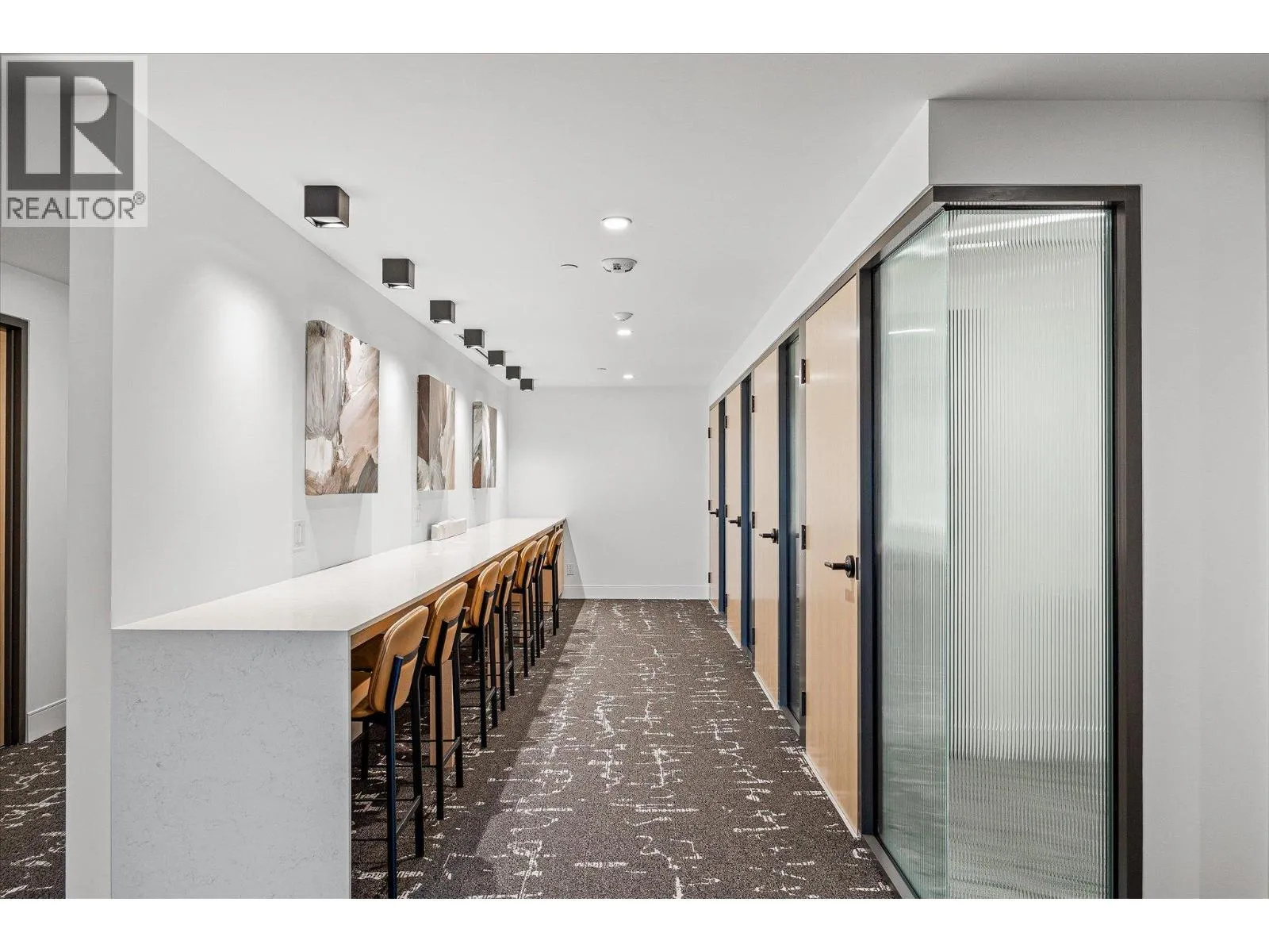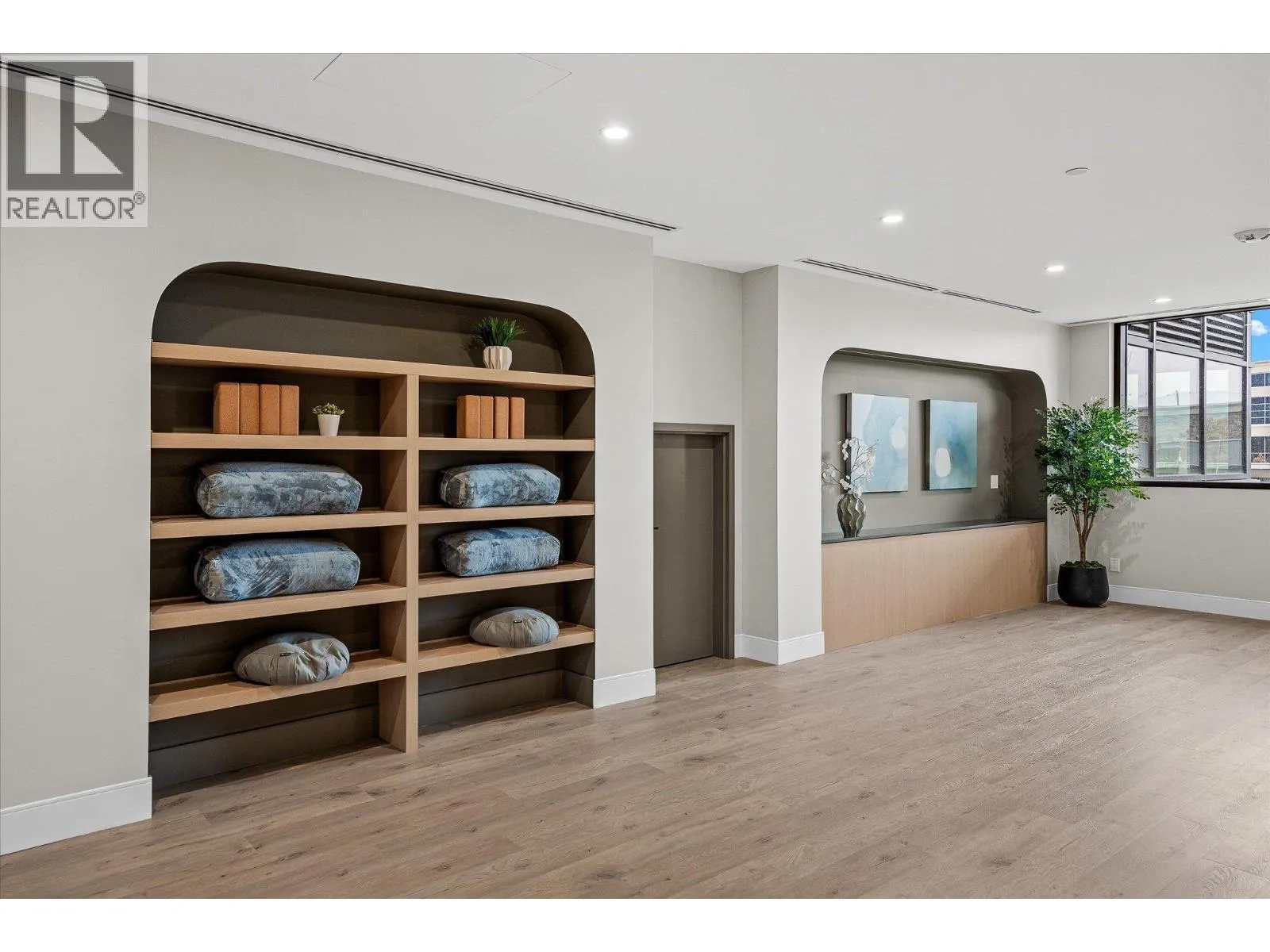 Modern Lakeside Amenity-Rich Living at Movala; Kelownaâs most anticipated new address, positioned between sandy beaches, vibrant eateries & boutique shopping! This gorgeous lakeview 1-bdrm+den condo combines modern design with functionality, creating an effortless urban retreat just steps to Pandosy Village. Beautifully crafted, featuring modern cabinetry, luxury vinyl plank flooring, quartz surfaces & 9ft ceilings. The chef-inspired kitchen offers premium SS appl. complemented by a fully integrated refrigerator. The spacious island offers plenty of prep space & casual seating for 4 - perfect for entertaining! The bright living area flows seamlessly to the covered south-facing patio w/natural gas hookup, where you can take in views of Okanagan Lake, Gyro Beach Park & soak up the Kelowna sunshine! The primary bdrm features a walk-in closet w/custom built-ins & large south-facing window, while the sleek 4pc bath boasts an oversized walk-in shower, dual sinks & modern tile finishes. A versatile den completes this cozy home & offers flexibility for guests or home office. Movala offers resort-inspired amenities - A lakeview pool & hot tub and cabanas surrounded by lush landscaped grounds with fire tables, bocce lawns & alfresco BBQ areas. Inside, enjoy a gym & yoga studio, co-working spaces, entertainment lounge, great room with casual seating, a library, private dining room + a guest suite & pet wash! Truly an unmatched lifestyle in an unmatched location! & GST has been paid! (id:27476)