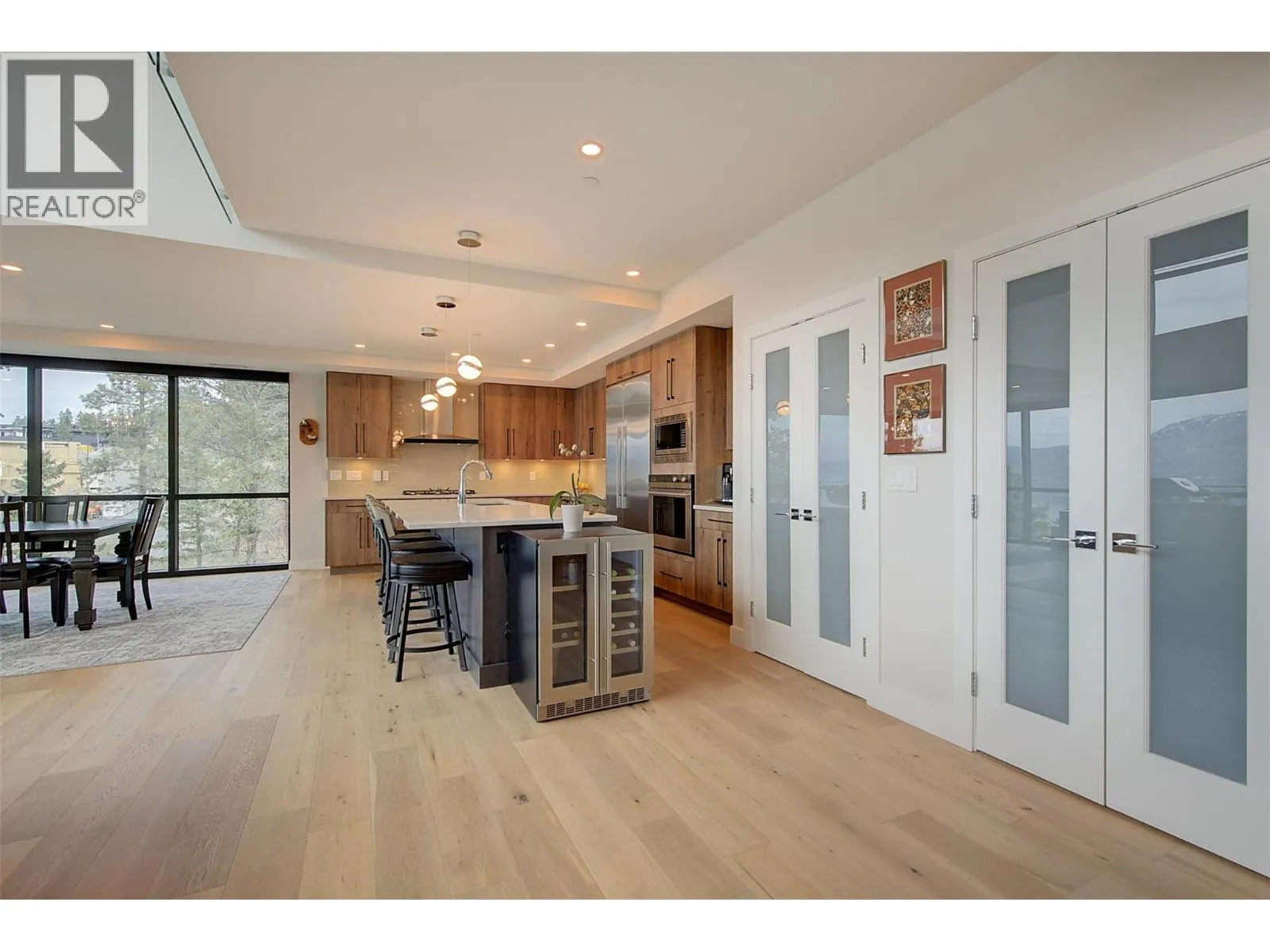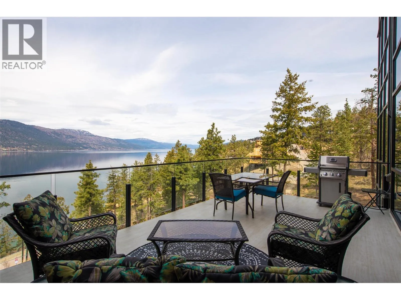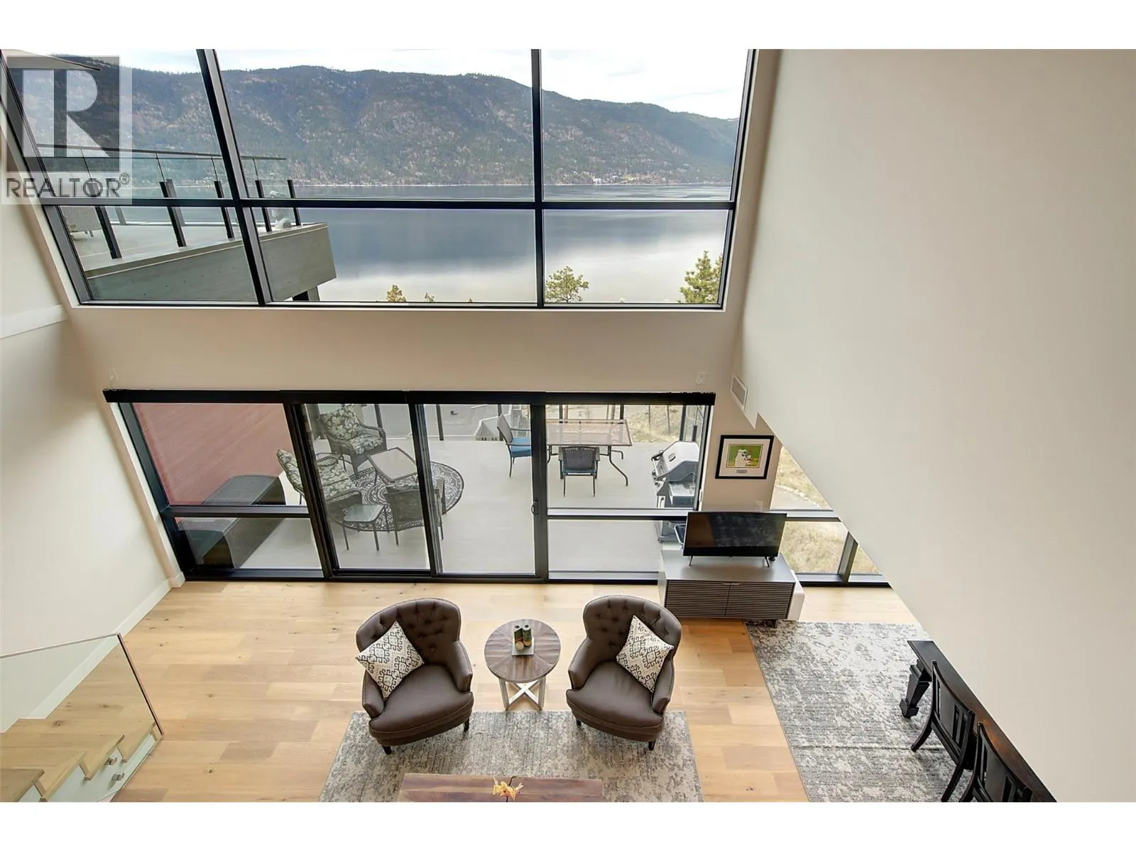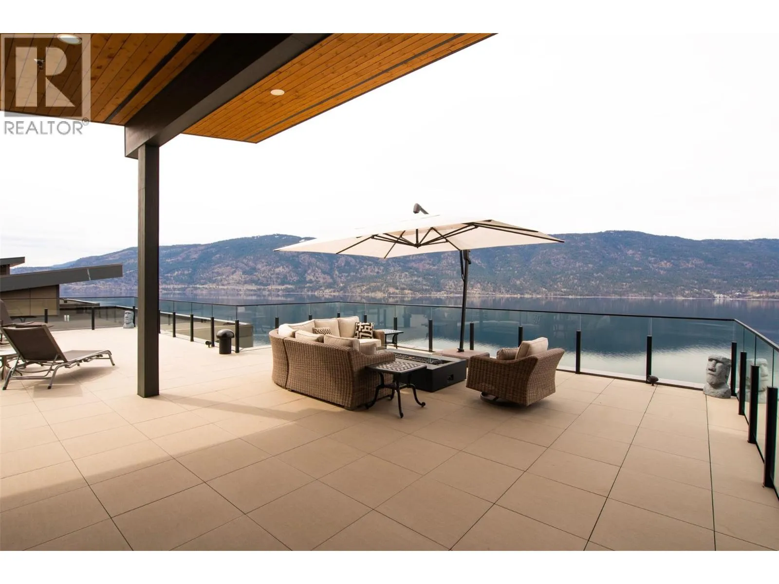 The One of a kind Granite Penthouse with 3 bedroom , 3 bathroom of over 2400 sq ft and over 1700 sq ft of deck space in McKinley Beach where this custom luxury home has absolute stunning Lake Okanagan views! Walk into this home with its engineered Opus-Whitestone Oak hardwood floors and take in the view of the 20' height double high windows over looking the lake from the dining and living area. The gourmet kitchen is a chefâs dream, complete with Fisher & Paykel appliances, ample cabinetry, and generous workspace. Upstairs you will find a sitting area to enjoy the lakeviews or watch TV.. Step outside to enjoy the expansive rooftop patio, designed for year-round entertaining with a TV, premium gas heaters, and a cozy fire pit. premium features include a Control 4 smart home system for TV, blinds, music, and locks, plus 200amp service with a 100-amp outdoor sub-panel. Th primary suite has wrap around floor to ceiling glass. McKinley Beach community boosts of a marina, beach area, New amenities building including an indoor pool, miles of hiking trails, tennis courts, pickleball courts and the winery currently being built. Only 15 minutes to the international airport or 15 minutes to Kelowna or 10 minutes to UBCO. With a kilometer of pristine lakefront, the Granite Yacht Club, , youâll experience the very best of waterfront living. This home comes with two secured underground parking stalls near the elevator. This is a must see home!!! Book your showing.. (id:27476)