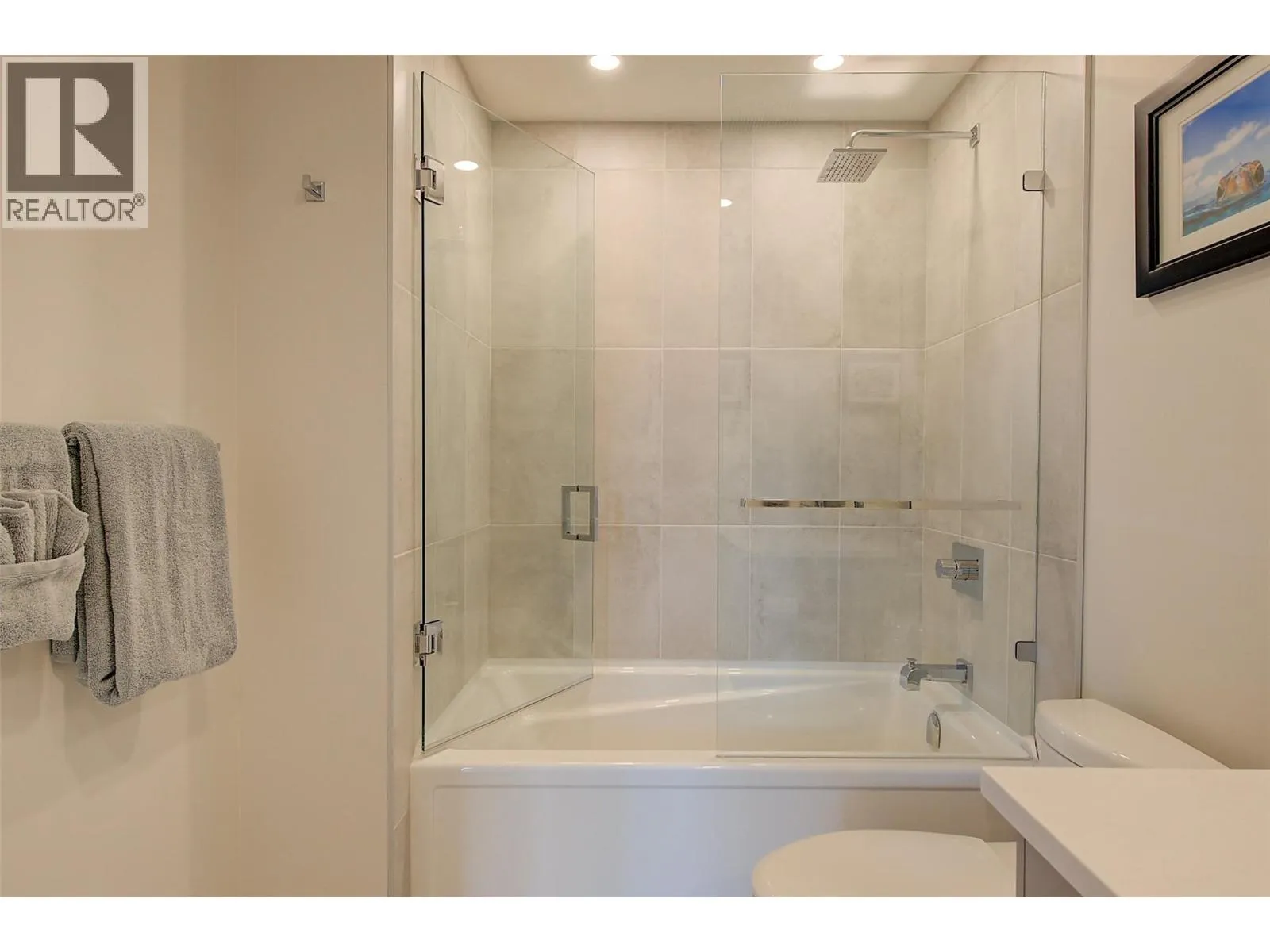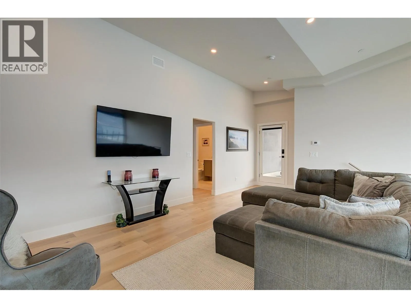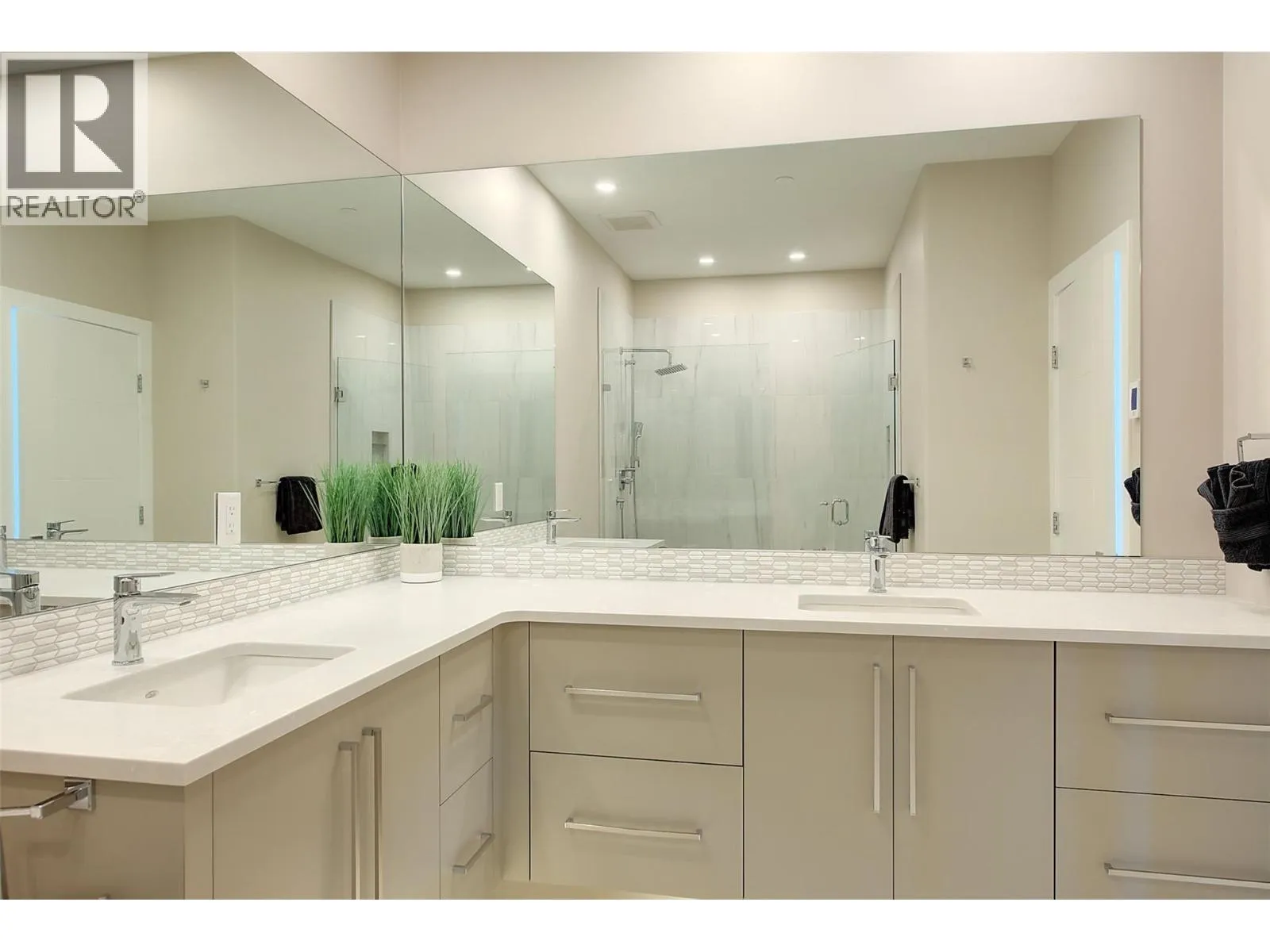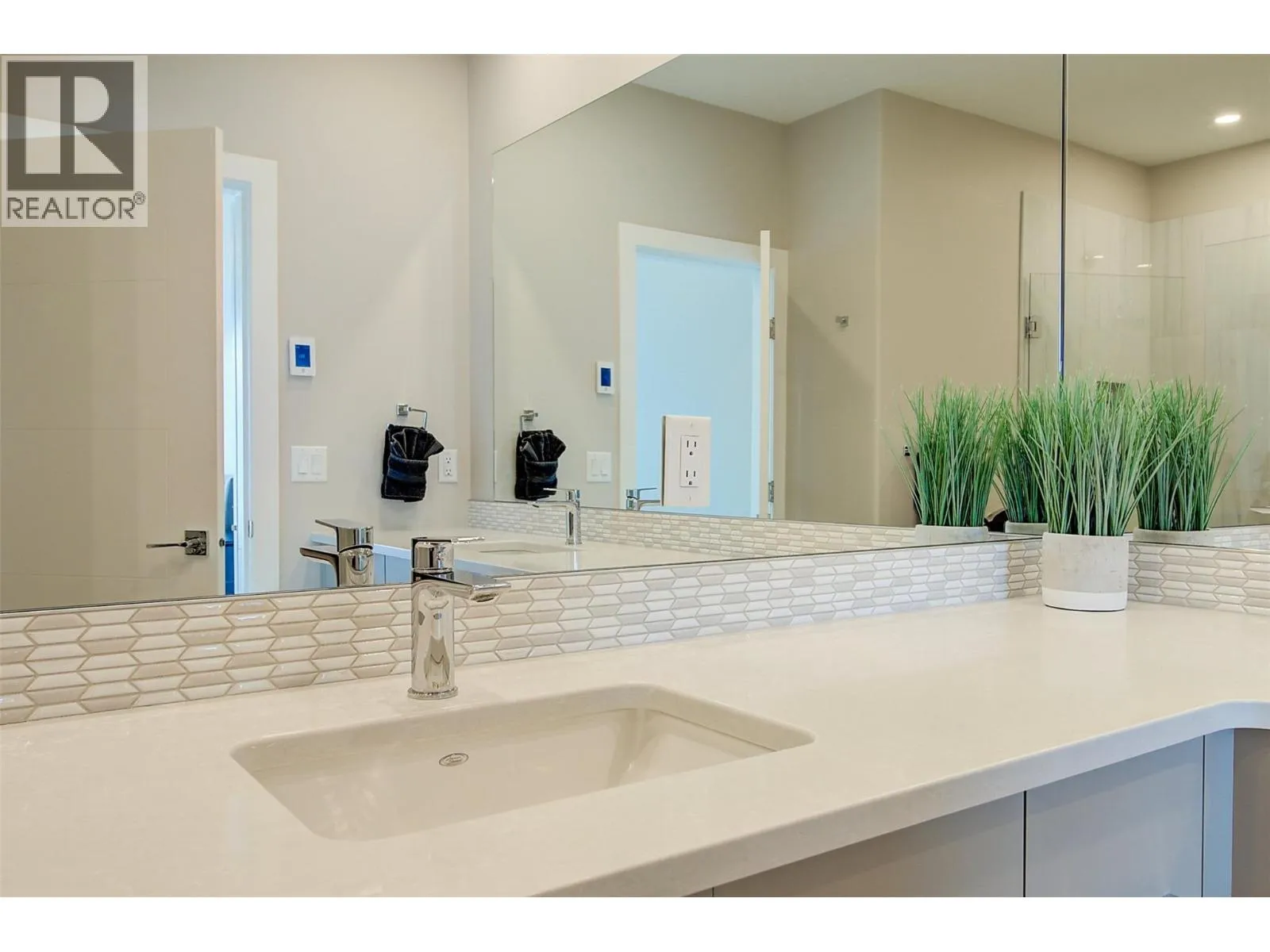 The One of a kind Granite Penthouse with 3 bedroom , 3 bathroom of over 2400 sq ft and over 1700 sq ft of deck space in McKinley Beach where this custom luxury home has absolute stunning Lake Okanagan views! Walk into this home with its engineered Opus-Whitestone Oak hardwood floors and take in the view of the 20' height double high windows over looking the lake from the dining and living area. The gourmet kitchen is a chefâs dream, complete with Fisher & Paykel appliances, ample cabinetry, and generous workspace. Upstairs you will find a sitting area to enjoy the lakeviews or watch TV.. Step outside to enjoy the expansive rooftop patio, designed for year-round entertaining with a TV, premium gas heaters, and a cozy fire pit. premium features include a Control 4 smart home system for TV, blinds, music, and locks, plus 200amp service with a 100-amp outdoor sub-panel. Th primary suite has wrap around floor to ceiling glass. McKinley Beach community boosts of a marina, beach area, New amenities building including an indoor pool, miles of hiking trails, tennis courts, pickleball courts and the winery currently being built. Only 15 minutes to the international airport or 15 minutes to Kelowna or 10 minutes to UBCO. With a kilometer of pristine lakefront, the Granite Yacht Club, , youâll experience the very best of waterfront living. This home comes with two secured underground parking stalls near the elevator. This is a must see home!!! Book your showing.. (id:27476)