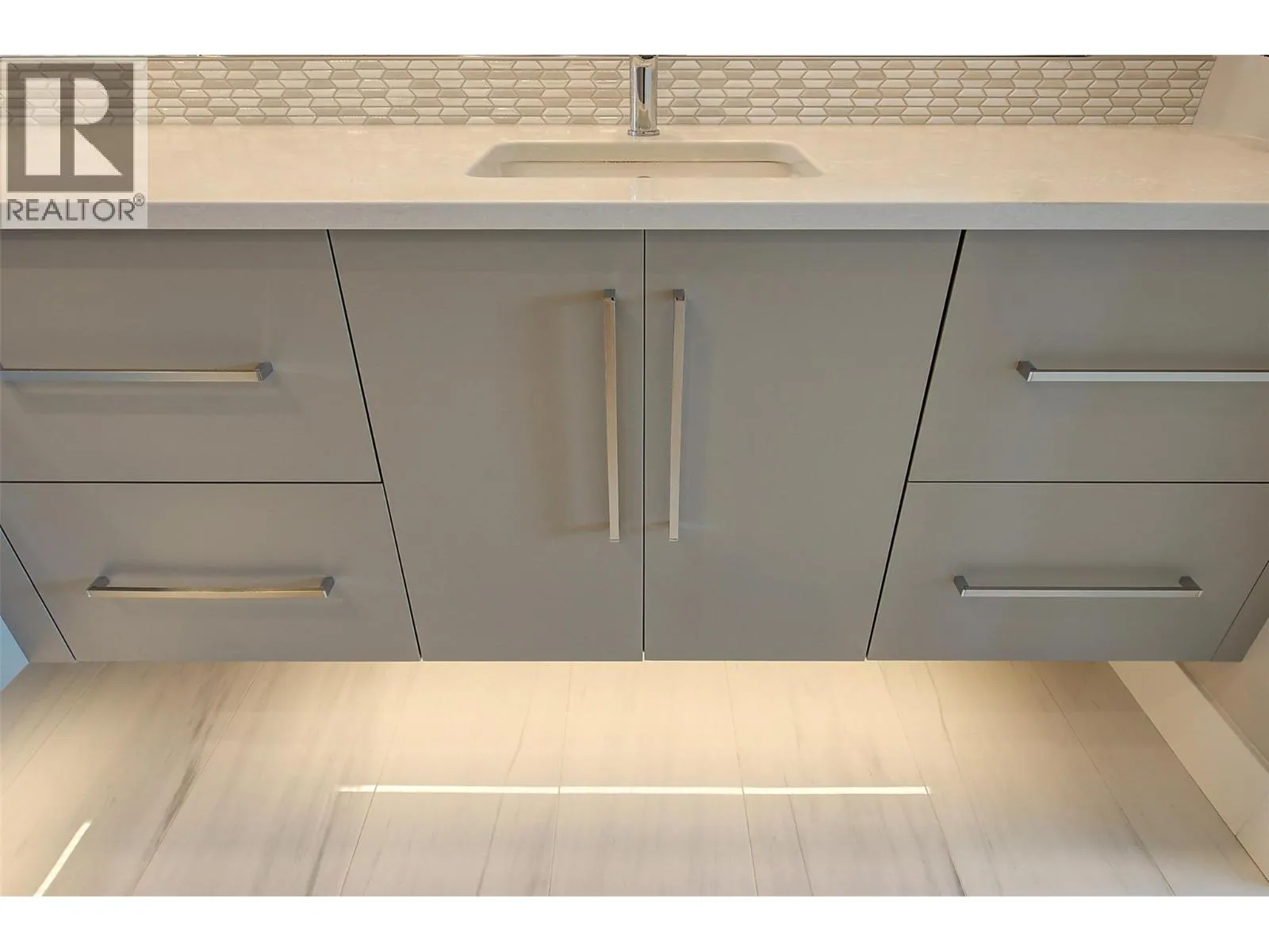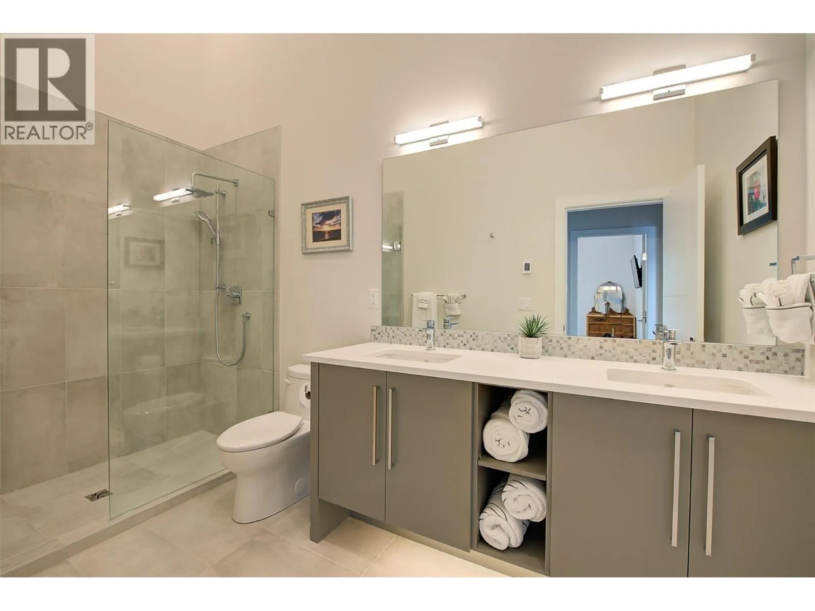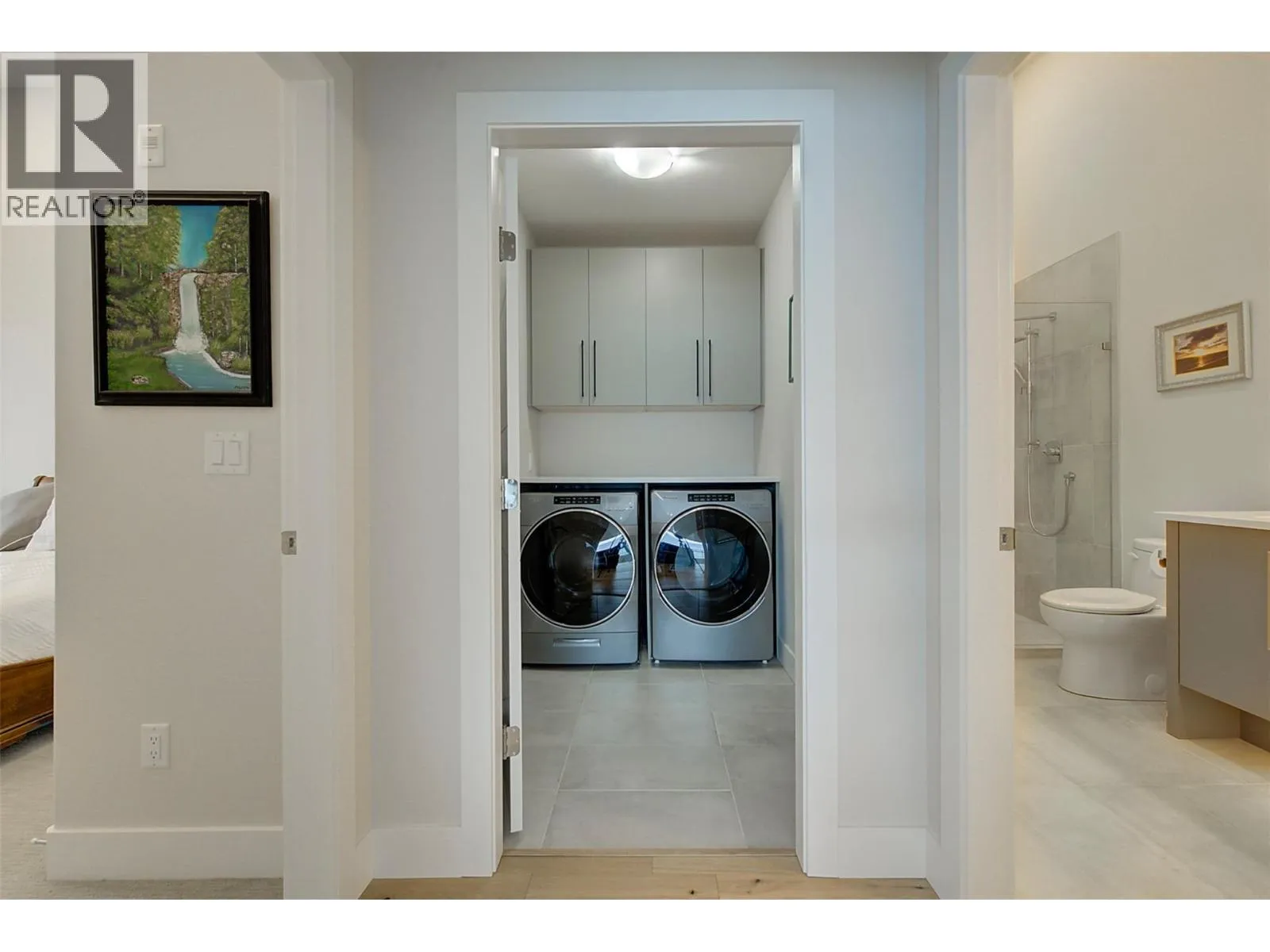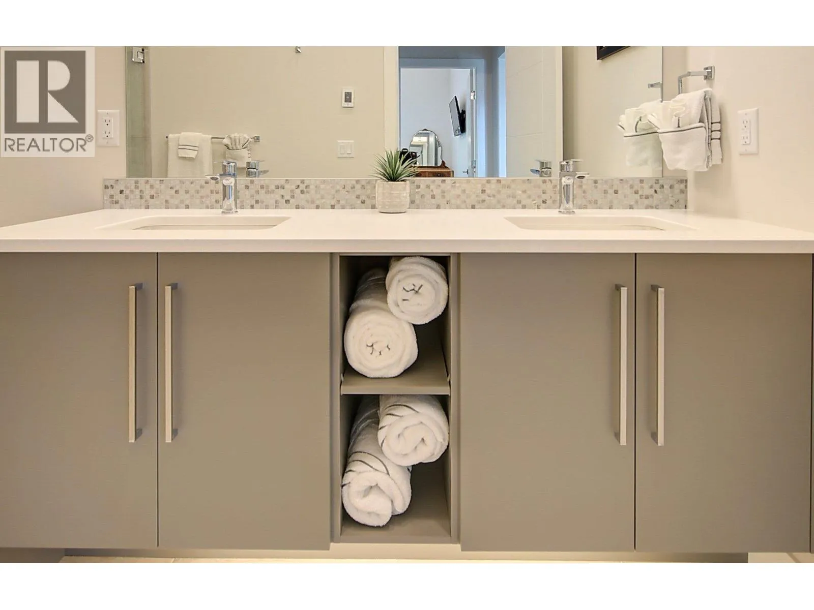 The One of a kind Granite Penthouse with 3 bedroom , 3 bathroom of over 2400 sq ft and over 1700 sq ft of deck space in McKinley Beach where this custom luxury home has absolute stunning Lake Okanagan views! Walk into this home with its engineered Opus-Whitestone Oak hardwood floors and take in the view of the 20' height double high windows over looking the lake from the dining and living area. The gourmet kitchen is a chefâs dream, complete with Fisher & Paykel appliances, ample cabinetry, and generous workspace. Upstairs you will find a sitting area to enjoy the lakeviews or watch TV.. Step outside to enjoy the expansive rooftop patio, designed for year-round entertaining with a TV, premium gas heaters, and a cozy fire pit. premium features include a Control 4 smart home system for TV, blinds, music, and locks, plus 200amp service with a 100-amp outdoor sub-panel. Th primary suite has wrap around floor to ceiling glass. McKinley Beach community boosts of a marina, beach area, New amenities building including an indoor pool, miles of hiking trails, tennis courts, pickleball courts and the winery currently being built. Only 15 minutes to the international airport or 15 minutes to Kelowna or 10 minutes to UBCO. With a kilometer of pristine lakefront, the Granite Yacht Club, , youâll experience the very best of waterfront living. This home comes with two secured underground parking stalls near the elevator. This is a must see home!!! Book your showing.. (id:27476)