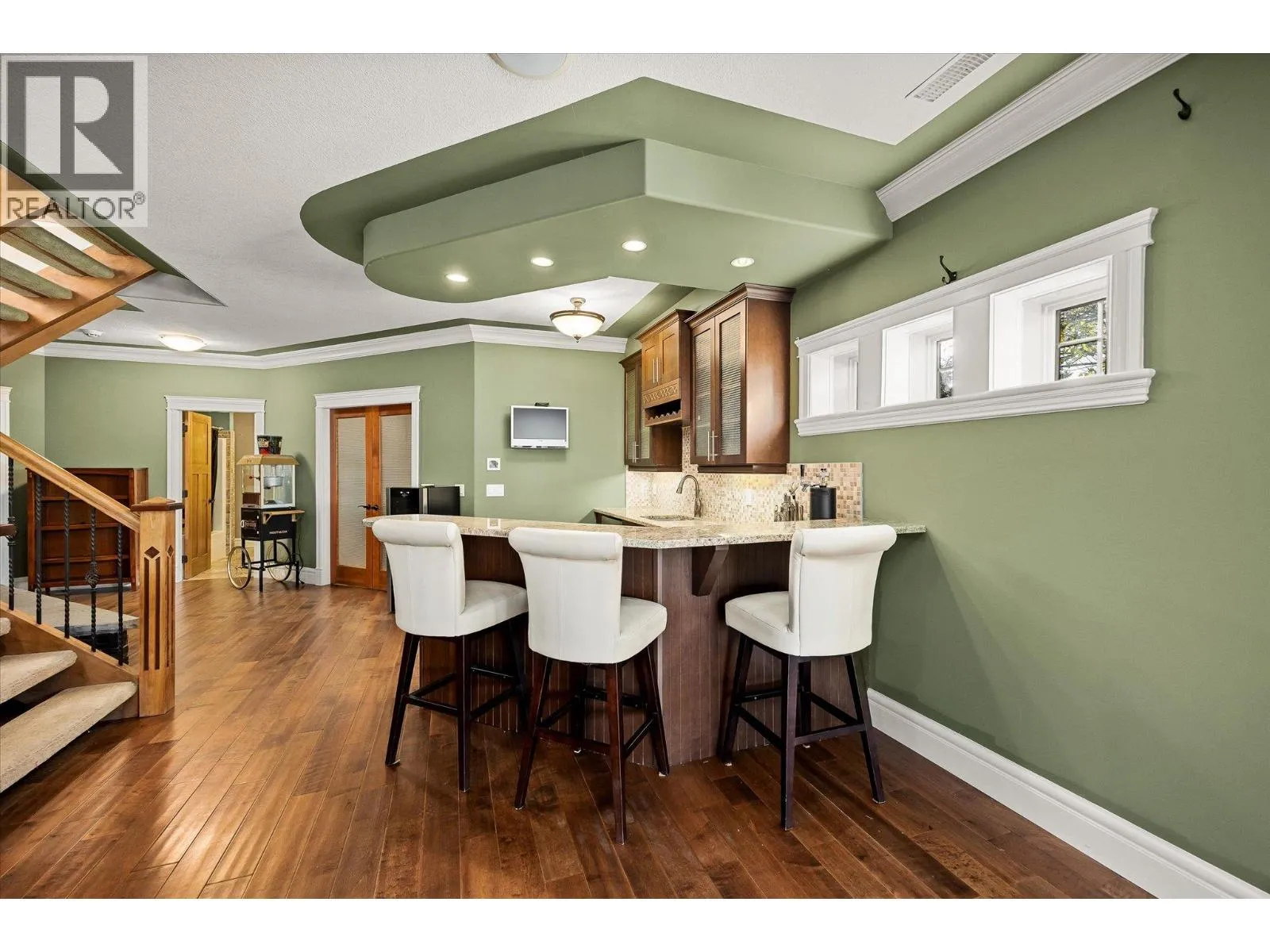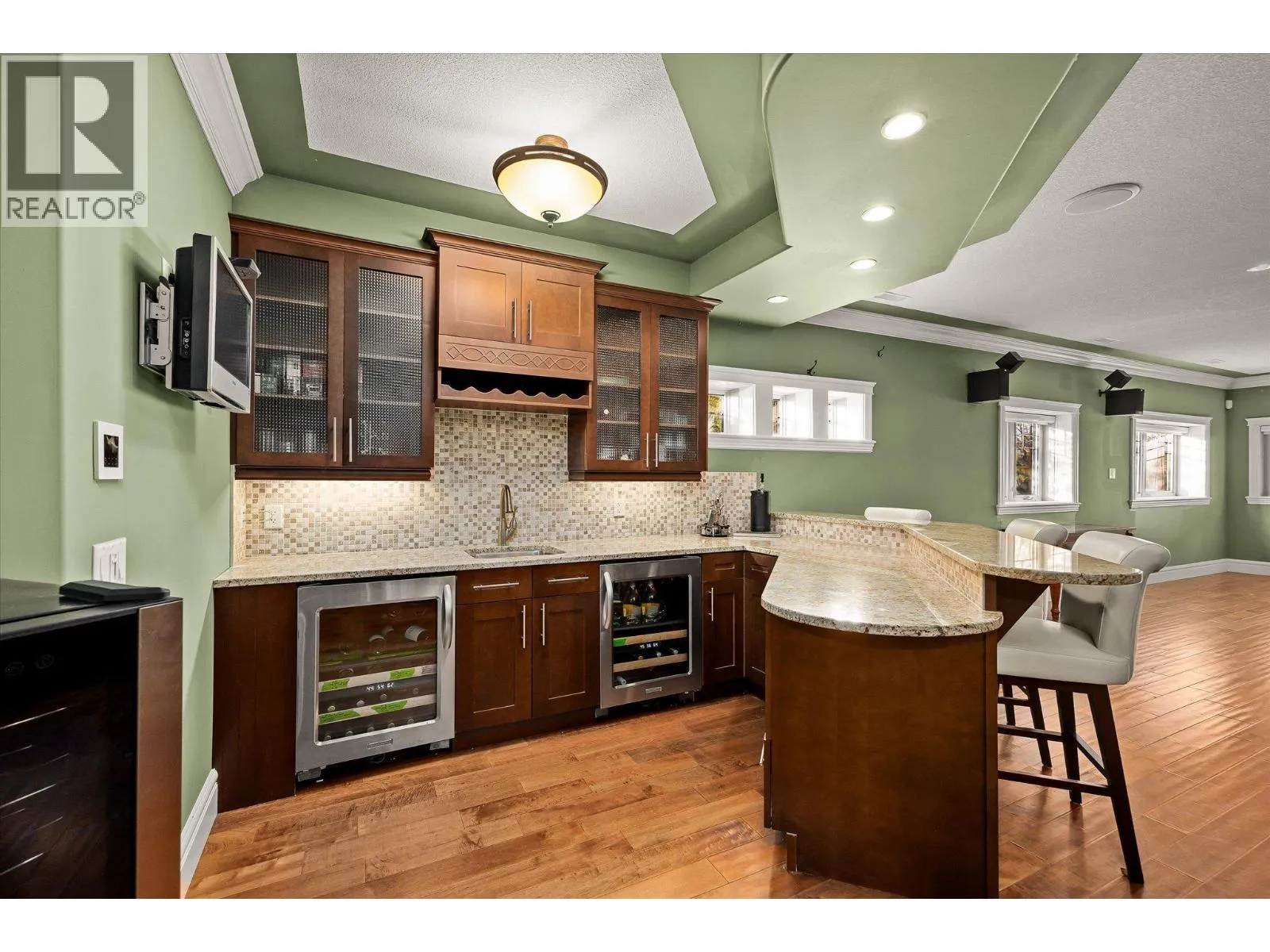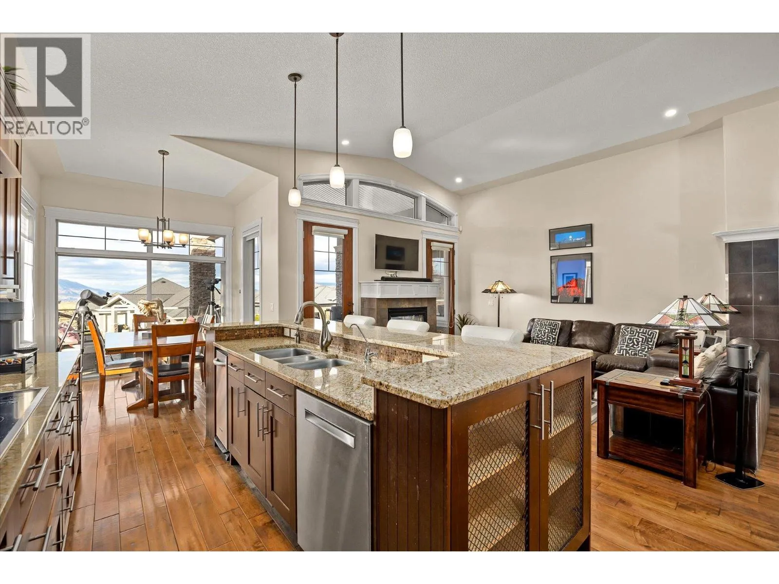 Welcome to The Quarry â where timeless craftsmanship meets comfort & livability. This beautifully designed home offers soaring ceilings, expansive windows & an open-concept main level, filling the home with natural light. A thoughtfully defined formal dining area adds an elegant touch â set apart just enough to feel special, yet still visually connected through architectural openings. The spacious kitchen & great room open onto a large deck â ideal for morning coffee or evening gatherings while enjoying the peaceful surroundings. The main level is anchored by a generous primary suite featuring a spa-inspired ensuite with heated tile floors, jacuzzi tub, walk-in shower & impressive walk-in closet. Every detail reflects thoughtful design and craftsmanship. Downstairs, the lower level offers flexibility with three additional bedrooms, plus an office, fitness or storage area, & a large family room complete with a wet bar â perfect for entertaining guests or movie nights. The sound system has over 20 speakers both inside & outside! Step outside to a fully fenced backyard with a luxury hot tub, and the garage is heated, great for a shop! Set in a desirable location near Canyon Falls Middle School & the amenities of The Ponds, this home suits downsizers who love to host or families with kids seeking their own retreat. Classic architectural details, rich finishes & a true sense of pride in construction make this property a rare find in one of Kelownaâs most sought-after communities. (id:27476)
