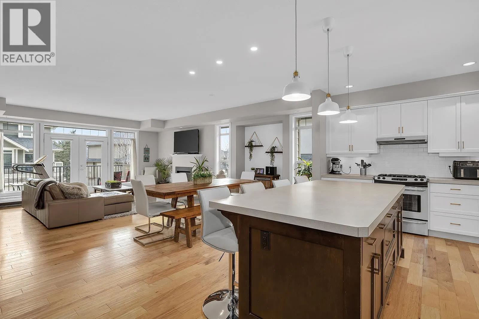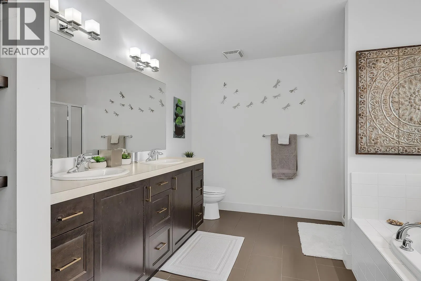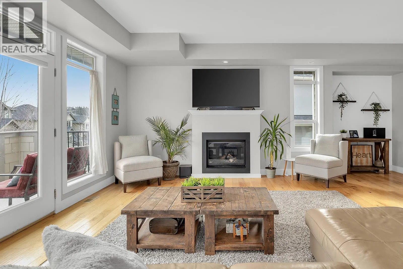 Welcome to Hidden Lake Lane in the heart of Wilden! This spacious 4-bedroom, 4-bathroom townhouse is ideal for families and those who love to entertain. The main level features a bright open-concept kitchen with newer appliances, ample cabinetry, large island, and abundant counter space. Natural light flows from the front deck through to the back patio, creating a warm and inviting atmosphere. A convenient mudroom/laundry area with sink, storage, and backyard access enhances everyday functionality. Upstairs offers two generous bedrooms, a full bathroom, and a primary suite with a 5-piece ensuite and walk-in closet. The lower level includes a media room, additional bedroom, and full bathâperfect for guests, teens, or a home office. Additional features include engineered hardwood flooring, upgraded shelving, geothermal heating and cooling, double garage, and a spacious backyard. Surrounded by nature yet minutes to UBCO, YLW, shopping, and downtown Kelowna, this home offers the perfect balance of comfort, convenience, and modern Okanagan living. Pet Restrictions: 2 dogs, or 1 dog and 1 cat, or 2 cats. (id:27476)