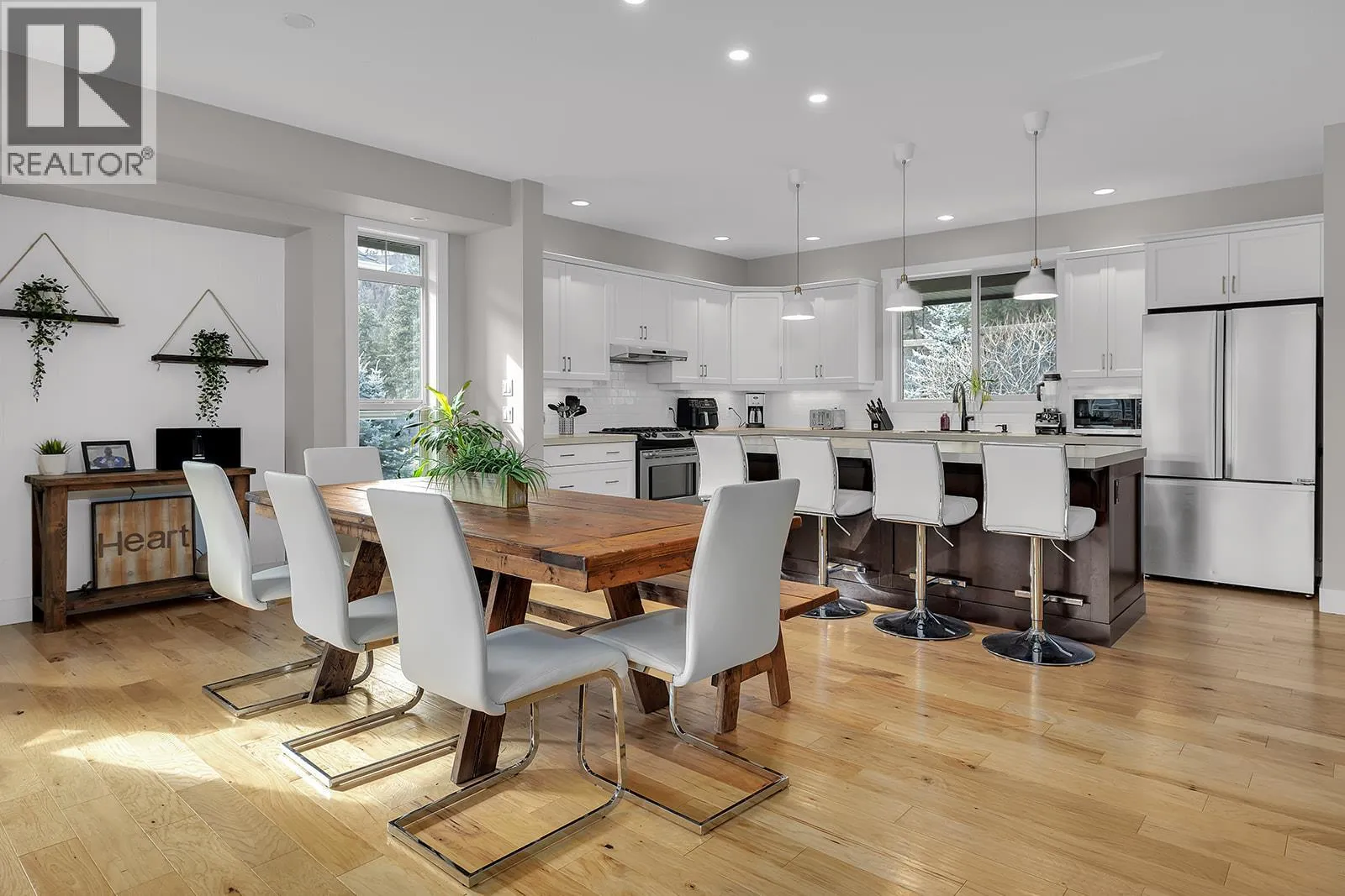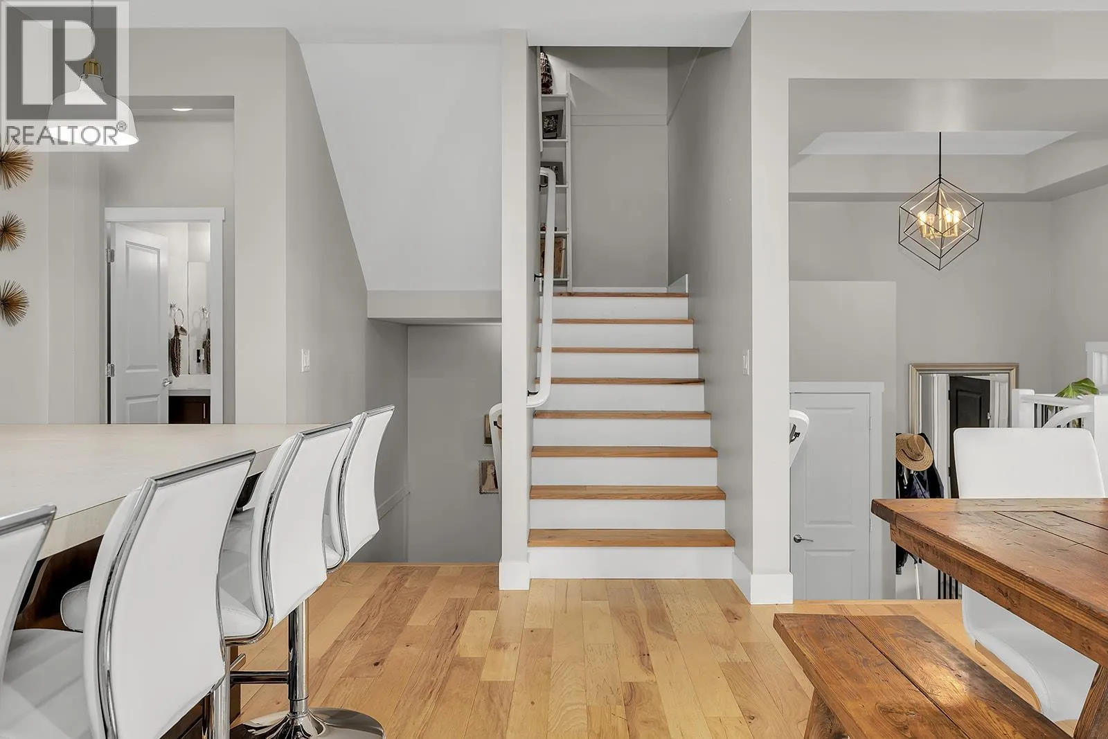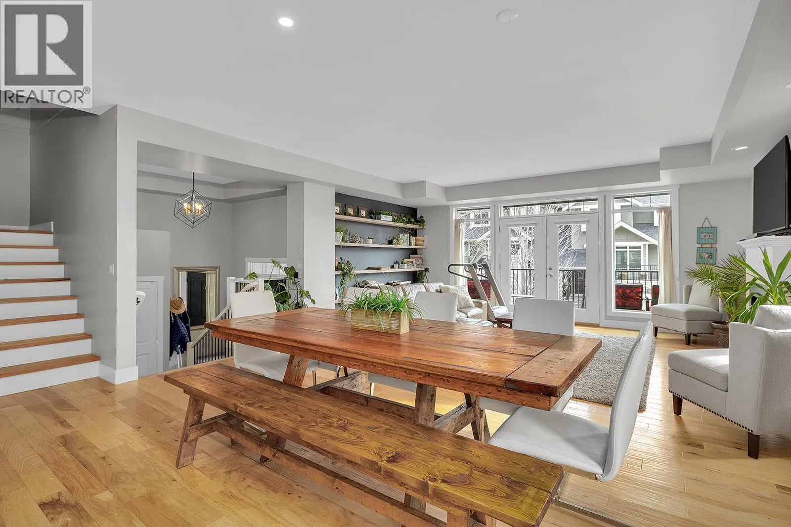 Welcome to Hidden Lake Lane in the heart of Wilden! This spacious 4-bedroom, 4-bathroom townhouse is ideal for families and those who love to entertain. The main level features a bright open-concept kitchen with newer appliances, ample cabinetry, large island, and abundant counter space. Natural light flows from the front deck through to the back patio, creating a warm and inviting atmosphere. A convenient mudroom/laundry area with sink, storage, and backyard access enhances everyday functionality. Upstairs offers two generous bedrooms, a full bathroom, and a primary suite with a 5-piece ensuite and walk-in closet. The lower level includes a media room, additional bedroom, and full bathâperfect for guests, teens, or a home office. Additional features include engineered hardwood flooring, upgraded shelving, geothermal heating and cooling, double garage, and a spacious backyard. Surrounded by nature yet minutes to UBCO, YLW, shopping, and downtown Kelowna, this home offers the perfect balance of comfort, convenience, and modern Okanagan living. Pet Restrictions: 2 dogs, or 1 dog and 1 cat, or 2 cats. (id:27476)