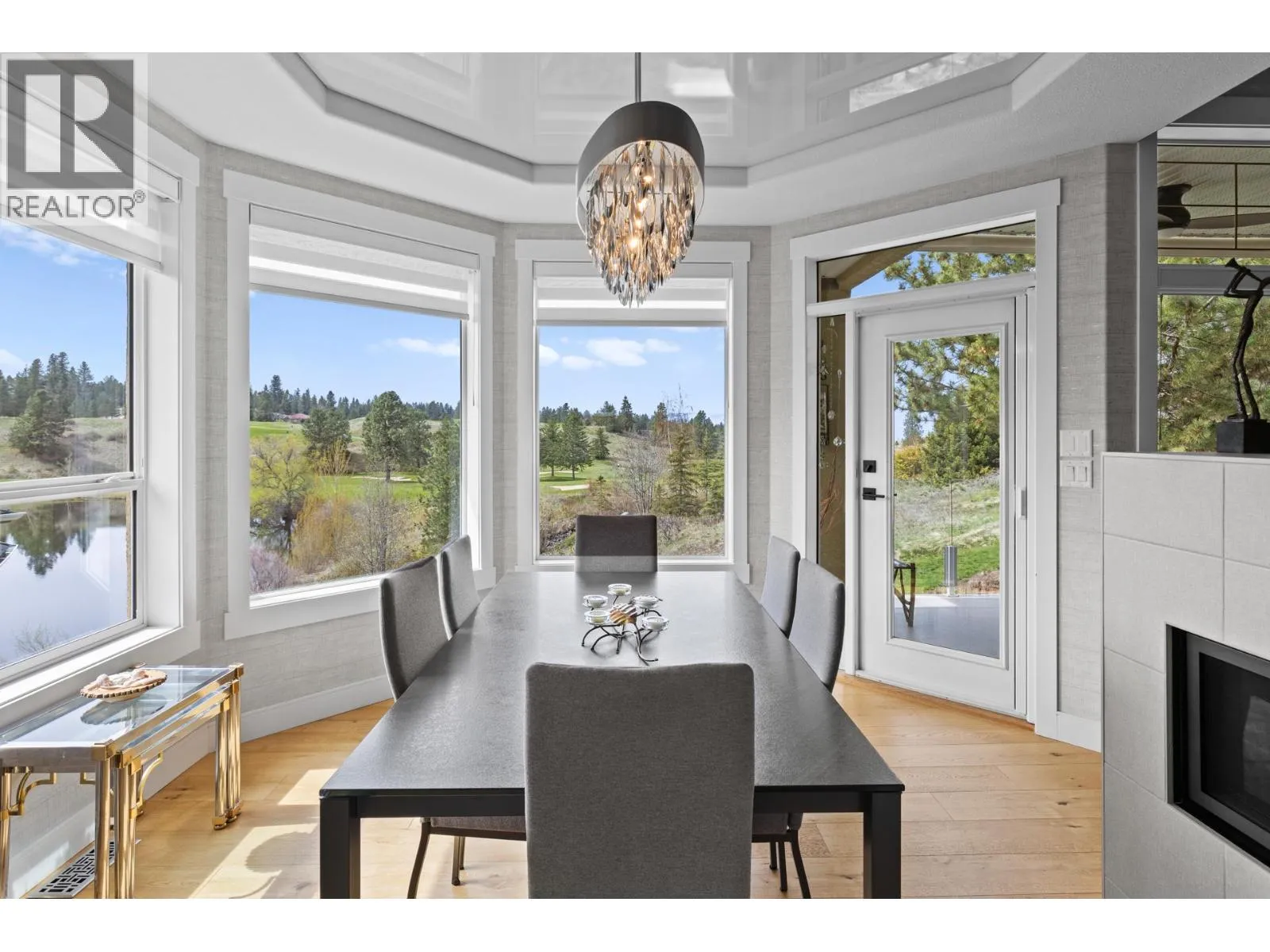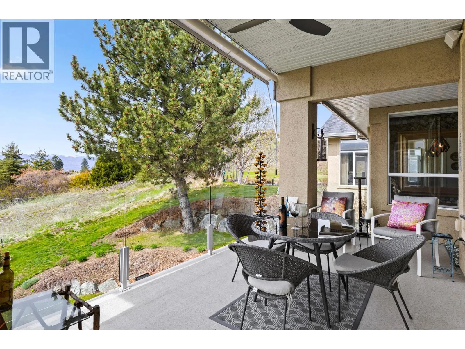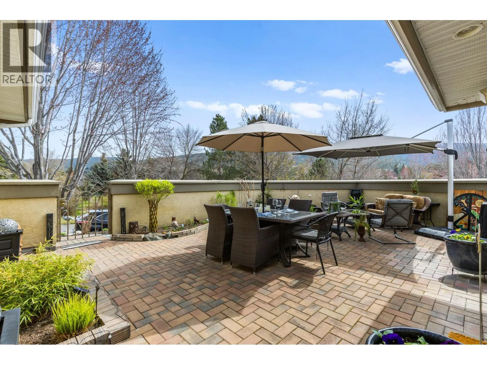 Welcome to over 2,600 sq ft of refined living in this fully renovated, bright, and spacious executive walk-out rancher townhome in the prestigious Gallaghers Canyon community. Set in an elevated, private location just steps from exceptional amenitiesâincluding an indoor pool, fitness centre, tennis courts, and moreâthis semi-attached home offers a rare blend of luxury and lifestyle. The extra-large, secure courtyard is sun-drenched and private, complete with a peaceful water featureâideal for entertaining or relaxing with your family pet. Inside, discover casual elegance and thoughtful upgrades throughout: tailored cabinetry, glass-sided kitchen drawers, quartz counters, an apron-front sil-granite sink, a gas stove with dual-function ovens, designer lighting, rich hardwood floors, and a striking glass cove ceiling in the dining room. The luxurious primary suite is a true retreat, featuring a spa-inspired ensuite with steam shower, heated floors, and his & hers closets. Step out onto the covered upper deck to take in beautiful views of the Pinnacle Golf Course and a tranquil stream. The lower level includes a spacious family room with a fireplace, two additional bedrooms, a full bath, abundant storage, and a walkout to a second view patio. Additional highlights include a double garage, new furnace, A/C, hot water heater, garage door, blinds, and more. Low-maintenance living in a vibrant, welcoming communityâthis home is a must-see! (id:27476)
