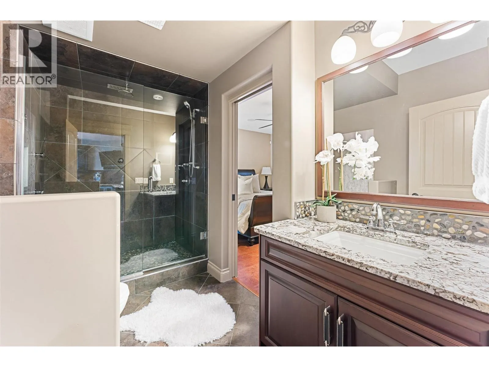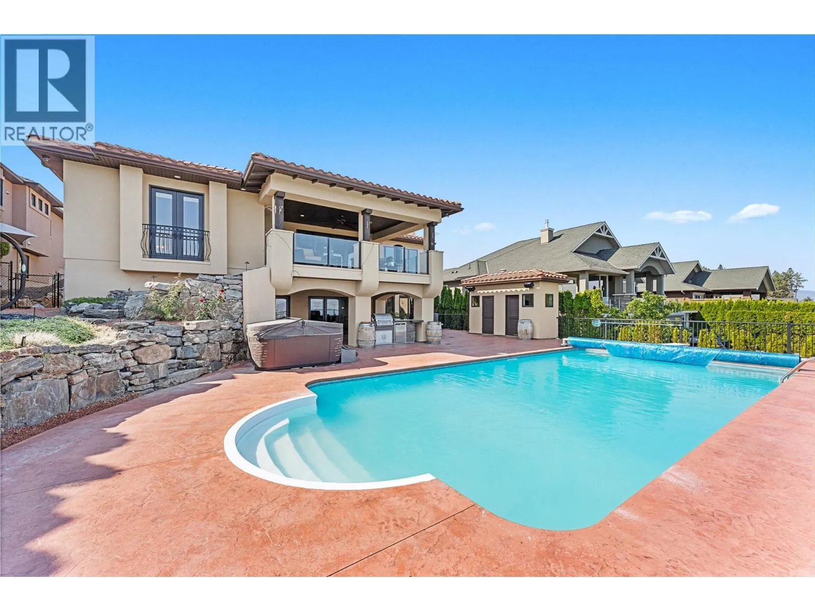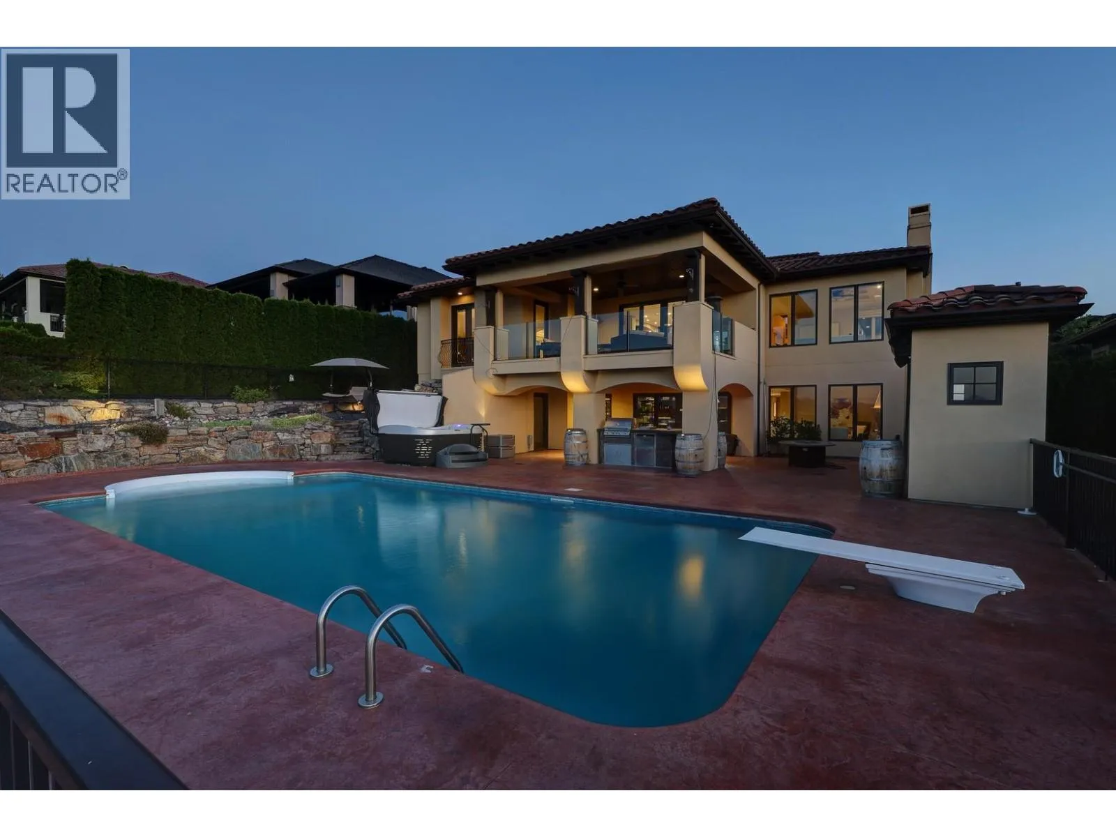 Timeless Upper Mission home with custom finishes throughout, a resort-style backyard and spectacular unobstructed Okanagan Lake views. This home boasts a seamless integration of architectural landscaping and interior design. Open concept main level. Large gourmet kitchen with adjoining dining area, double islands, professional appliances, butler's pantry and formal dining room. Off the formal dining area enjoy access to spacious patio perfect for enjoying. In the living room enjoy the cozy ambiance from the gas fireplace. Sliding doors lead to a huge lake view covered patio with a fan. Main floor primary with a Romeo and Juliet balcony, luxurious ensuite with a soaking tub and glass shower plus a walk-in closet. One additional bed with an ensuite is located on the main level. The lower level was designed for entertaining with a full bar, home theatre, 3 beds (2 with ensuites), a living area with a gas fireplace and sliding doors that lead to a remarkable backyard. The backyard retreat offers an outdoor kitchen, a pool, hot tub and a pool house with spectacular lake views. For those seeking a beautiful home in the Upper Mission near great schools, recreation trails, and shores of Okanagan Lake this is an incredible opportunity. (id:27476)