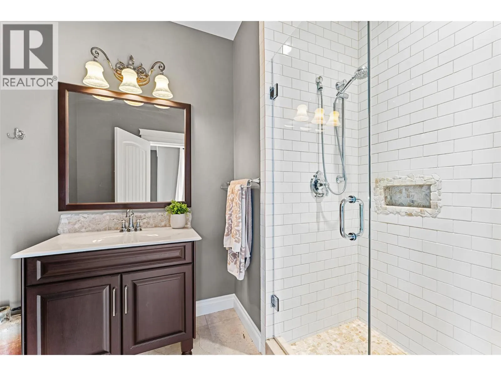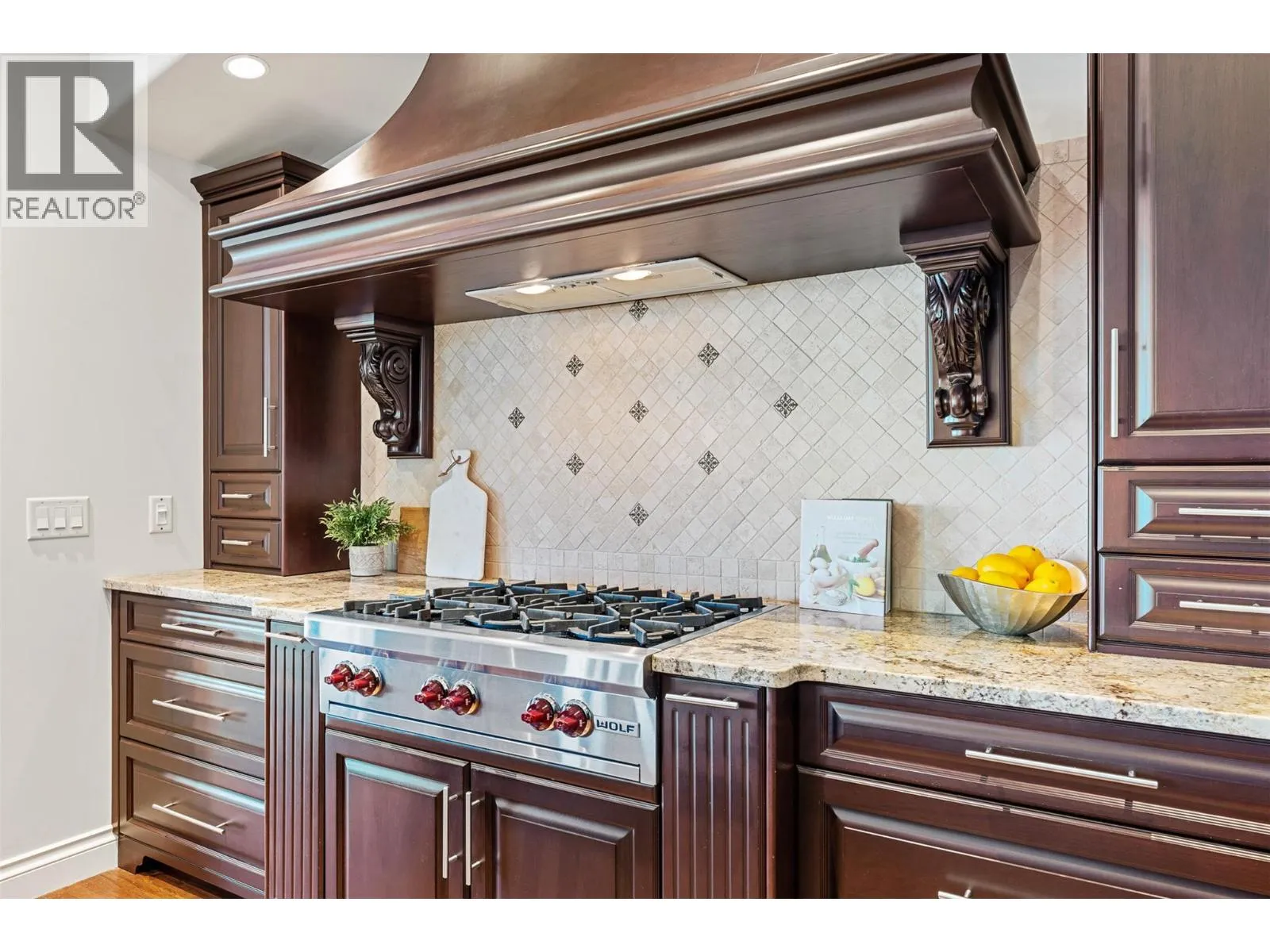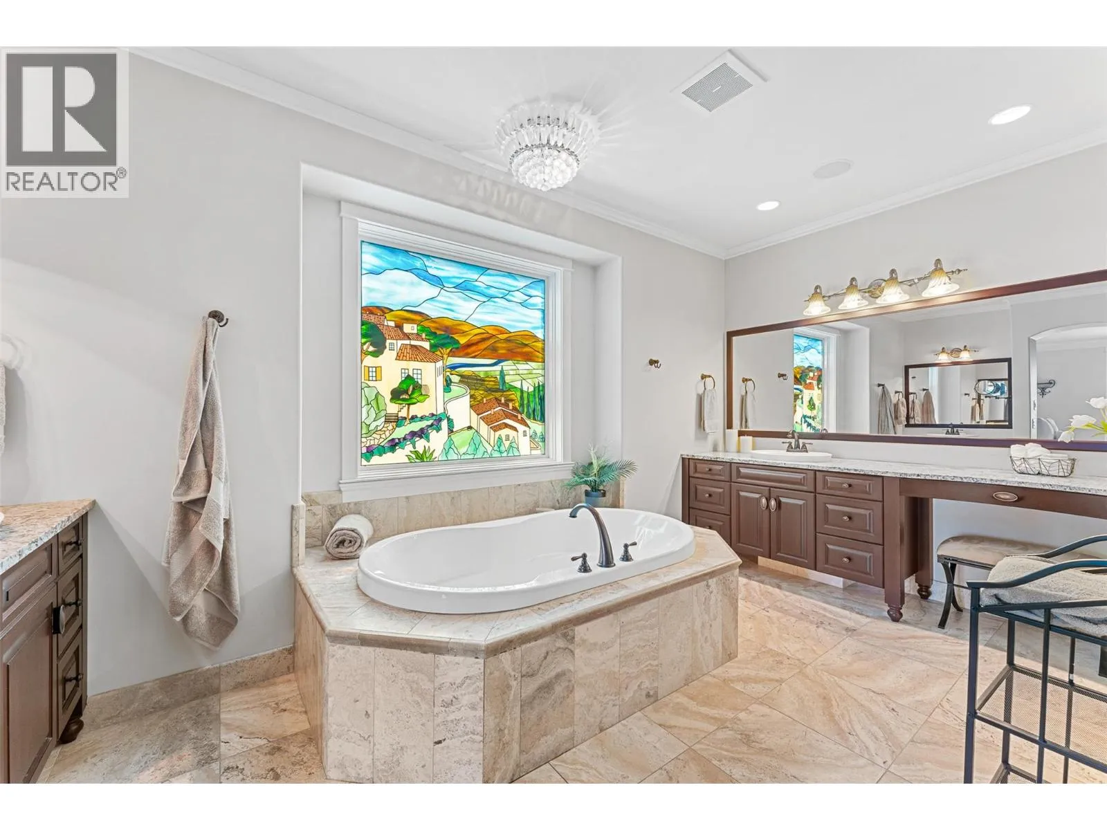 Timeless Upper Mission home with custom finishes throughout, a resort-style backyard and spectacular unobstructed Okanagan Lake views. This home boasts a seamless integration of architectural landscaping and interior design. Open concept main level. Large gourmet kitchen with adjoining dining area, double islands, professional appliances, butler's pantry and formal dining room. Off the formal dining area enjoy access to spacious patio perfect for enjoying. In the living room enjoy the cozy ambiance from the gas fireplace. Sliding doors lead to a huge lake view covered patio with a fan. Main floor primary with a Romeo and Juliet balcony, luxurious ensuite with a soaking tub and glass shower plus a walk-in closet. One additional bed with an ensuite is located on the main level. The lower level was designed for entertaining with a full bar, home theatre, 3 beds (2 with ensuites), a living area with a gas fireplace and sliding doors that lead to a remarkable backyard. The backyard retreat offers an outdoor kitchen, a pool, hot tub and a pool house with spectacular lake views. For those seeking a beautiful home in the Upper Mission near great schools, recreation trails, and shores of Okanagan Lake this is an incredible opportunity. (id:27476)