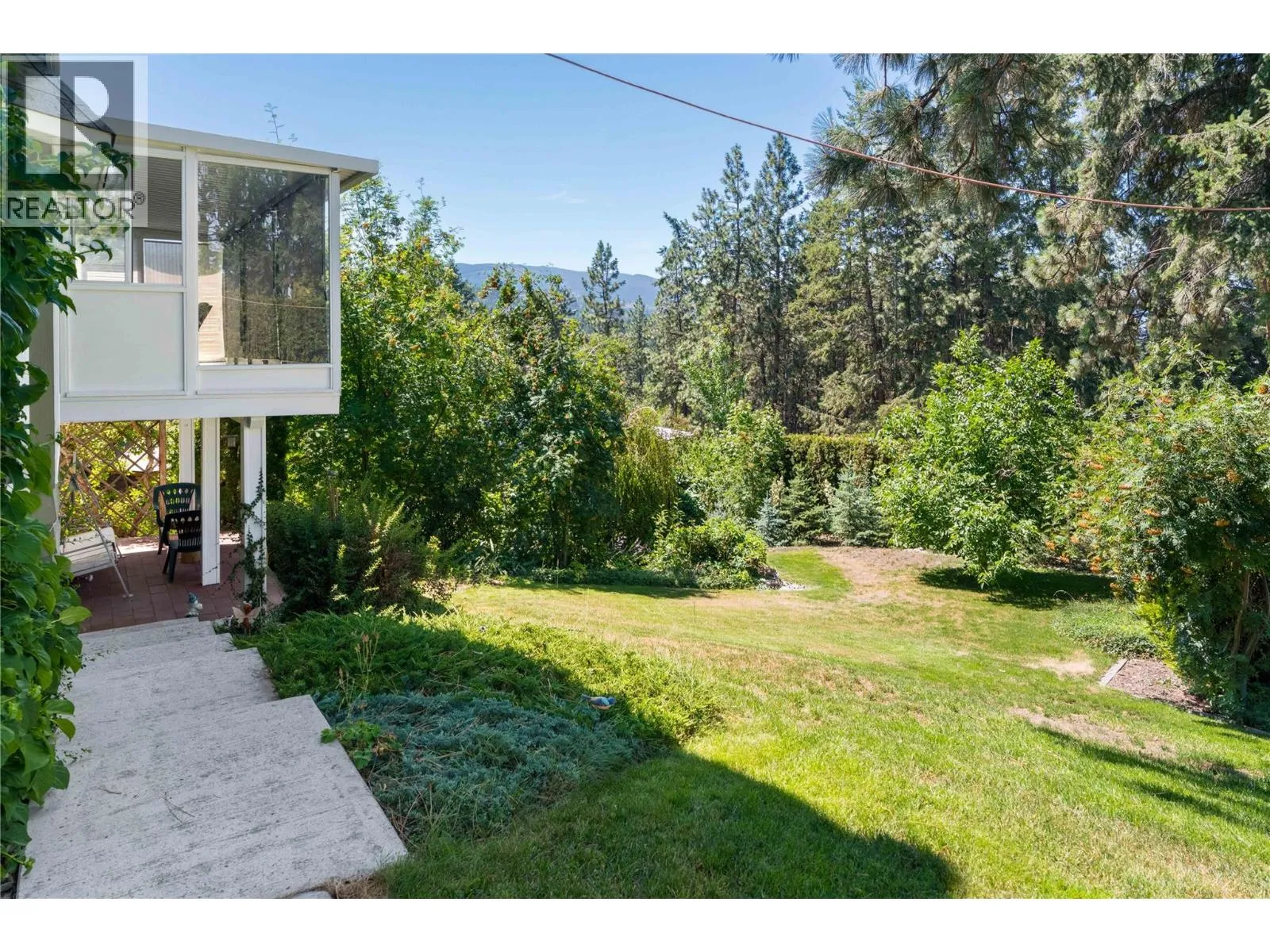 A warm, inviting residence set on an exceptionally private 0.28-acre corner lot in one of Kelownaâs most coveted family neighbourhoods. Mature greenery surrounds the property, complemented by walnut, plum, raspberries, gooseberries, and red currant bushesâcreating a true garden sanctuary with room to expand and enjoy. Inside, hardwood floors anchor the main level, offering a spacious living room, formal dining, a comfortable family room, and a bright kitchen that opens to a sunroom featuring peaceful mountain views. Upstairs, three generous bedrooms include a primary retreat with lakeviews, an ensuite, and a walk-in closet. The lower level features a walk-out bedroom, den, flex space, and ample storageâideal for hobbies, growing families, or future suite potential (buyer to verify). A standout feature: two driveways, including RV parking with access from Sunshine Road, providing flexibility for extra vehicles, a shop, or additional outbuildings. With only one direct neighbour and bordered by three quiet streets, this setting offers remarkable privacy. Strong bones, a large lot, and meticulous long-term care make it an excellent canvas for personalization, renovation, or expansion. Just minutes from schools, parks, shops, wineries, and the lakeâthis property delivers a rare combination of space, privacy & convenience in a highly sought-after location. (id:27476)