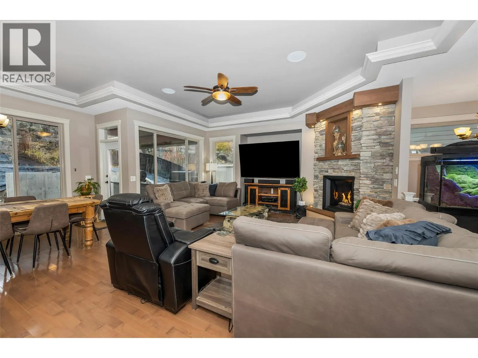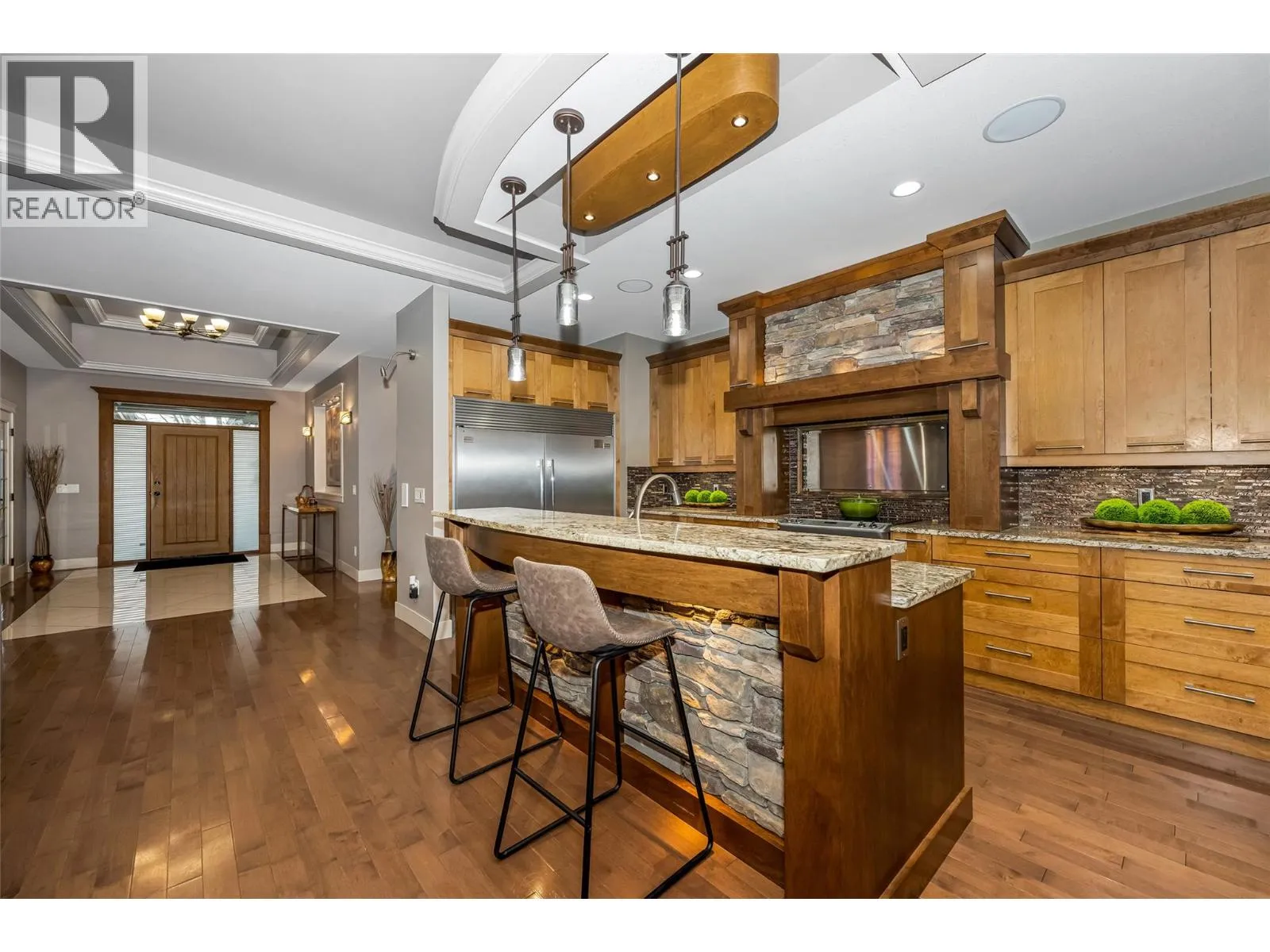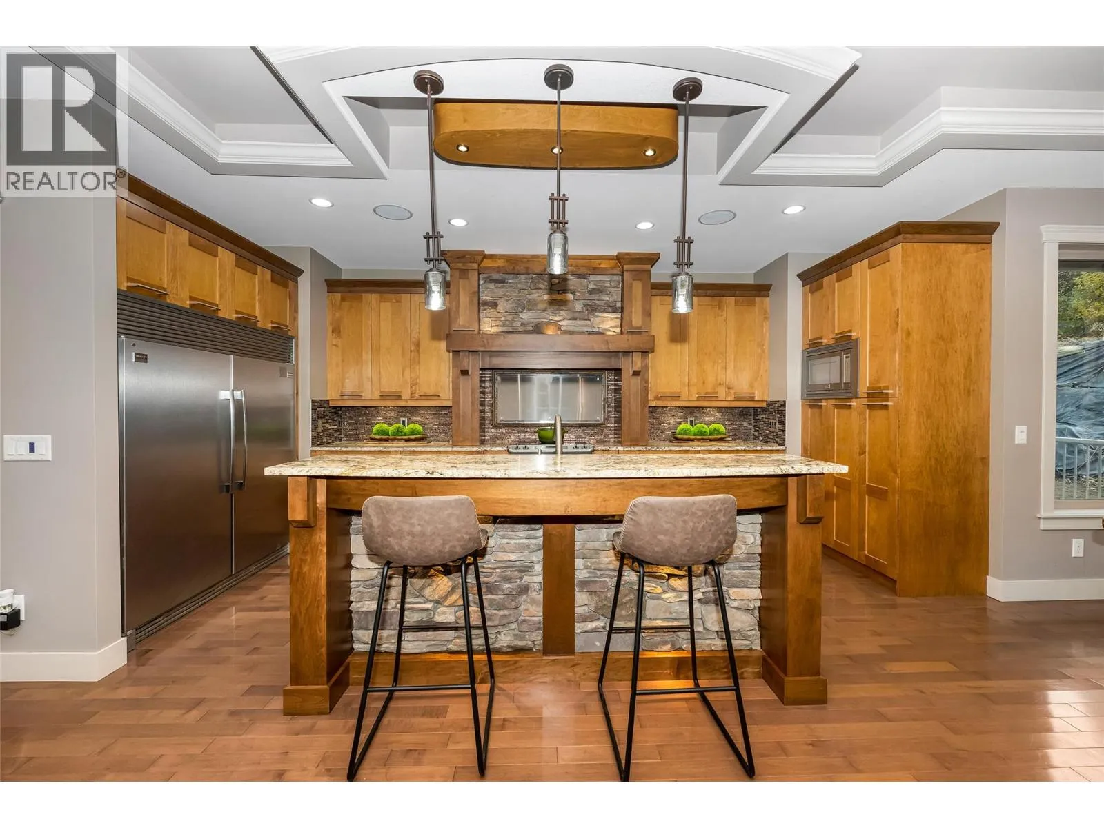 Beautiful Rancher on a quiet cul-de-sac in Kelowna's sought after Wilden Neighborhood. As you step through the front entry of this 4,357 sq ft home, youâre greeted by the elegance of large format open-concept layout. Natural light fills the main level, highlighting the ten-foot tray ceilings and warm hardwood floors. The heart of the home is the two-tone kitchen, an elegant blend of custom shaker-style cabinetry, granite countertops and spacious island. Gallery edition appliances with an oversized stainless steel fridge/freezer, glass cook top oven and dishwasher. From here, the flow leads seamlessly into the living area with a cozy gas fireplace. Enjoy an entertainers lifestyle with smart home tech with built in speakers and smart lighting. The dining fits a large table and walks onto the patio. Here youâll find vaulted timber post-and-beam construction. A concrete outdoor kitchen with a gas cooktop, and private yard ready to be personalized. The serene primary suite offers a spa-inspired ensuite with travertine tile, soaker tub, and a multi-zone luxury shower. The comfort continues with a NuWave in-floor heat, walk-in closet and a connected laundry room. Additionally on the main floor you'll find a second bedroom/office/den and a full guest bath. Downstairs, a blank-canvas offers limitless potential for additional bedrooms, a future suite, or rec room. This home perfectly blends elegance and lifestyle close to amenities and rec. Ample storage and RV/ additional parking. (id:27476)