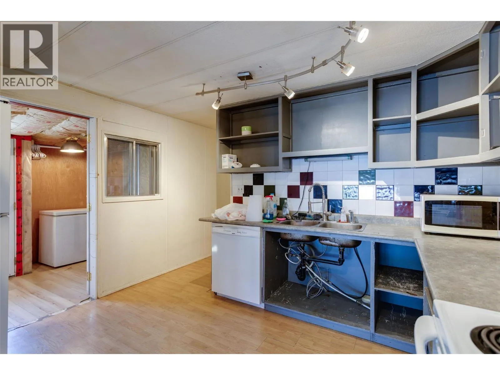 LOCATION, LOCATION, LOCATION !!!! WHY RENT WHEN YOU CAN BUY. ONE OF THE BEST BUYS IN KELOWNA. DIAMOND IN THE ROUGH WITH ADDED UNFINISHED SQUARE FOOTAGE. This 1973 home features 2 bedrooms, one, 4 peice bathroom, laundry room, foyer and 2 additional unfinished rooms waiting for your creativity. Ideally located in Peacock MHP off Baron road , with an easy flat walk to shopping restaurants, and many more amenaties. Enjoy your vegetable and herb garden in your own backyard. Updates include New Electrical Silver label, HWT 2019, and roof 2012. Quick possession available and has been priced for quick sale. All ages welcome. Pet restriction/No cats/ No dogs or exotic pets, Only caged indoor pets. Monthly pad rent is $591.20 monthly includes water,sewer and garbage. Gross Property tax $595.62. Don't miss this oppprtunity. (id:27476)