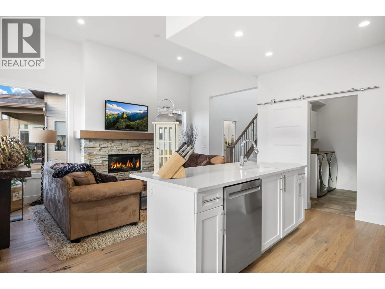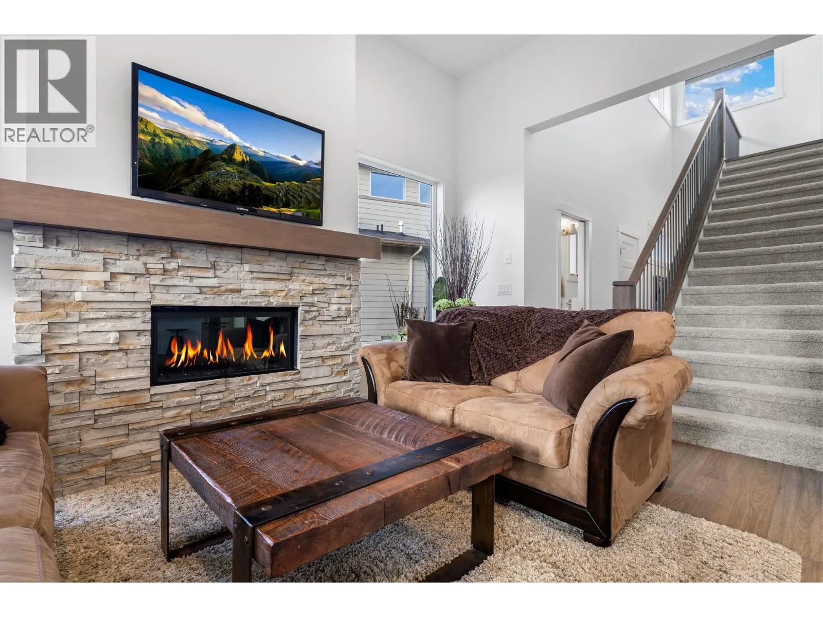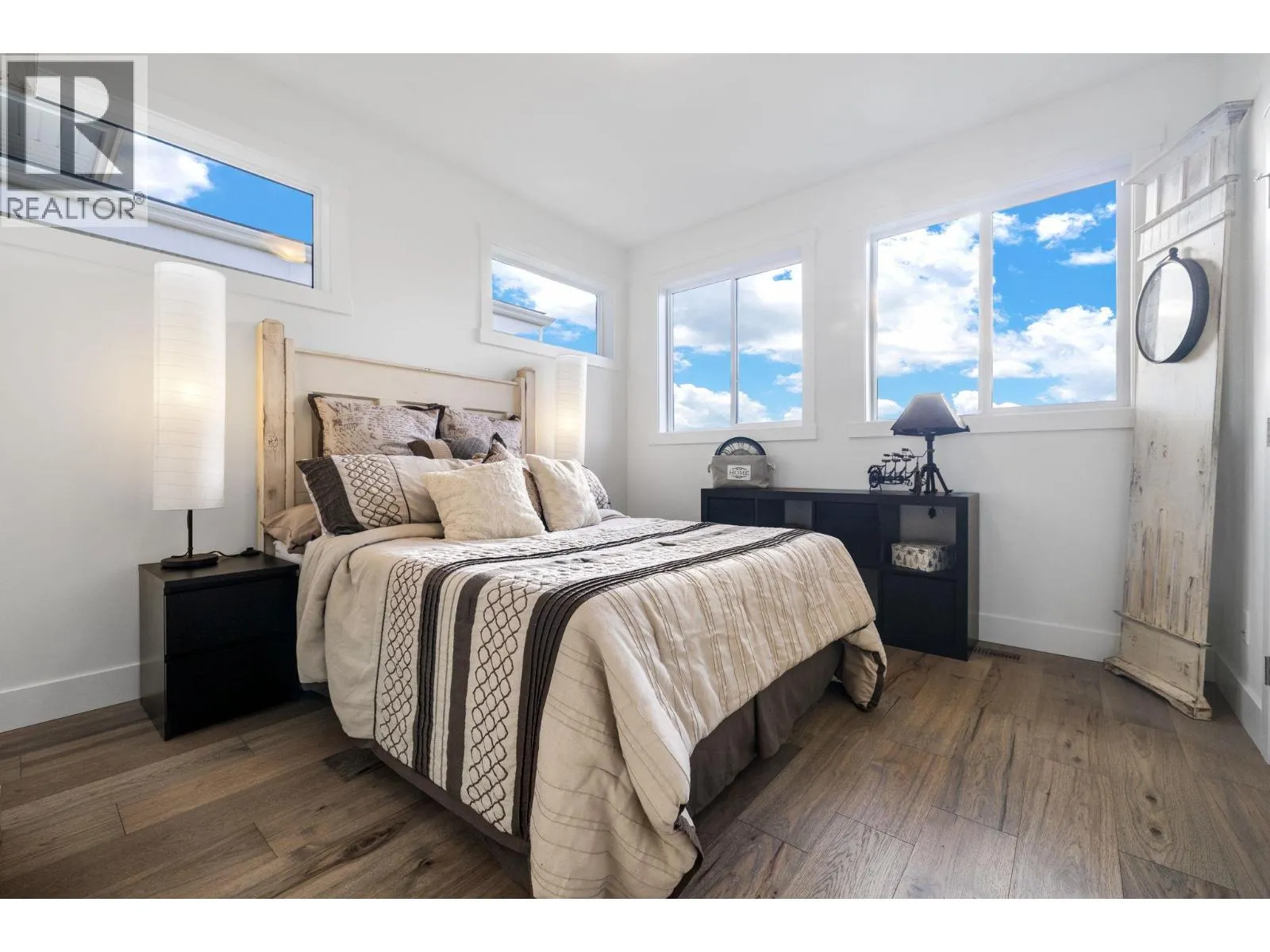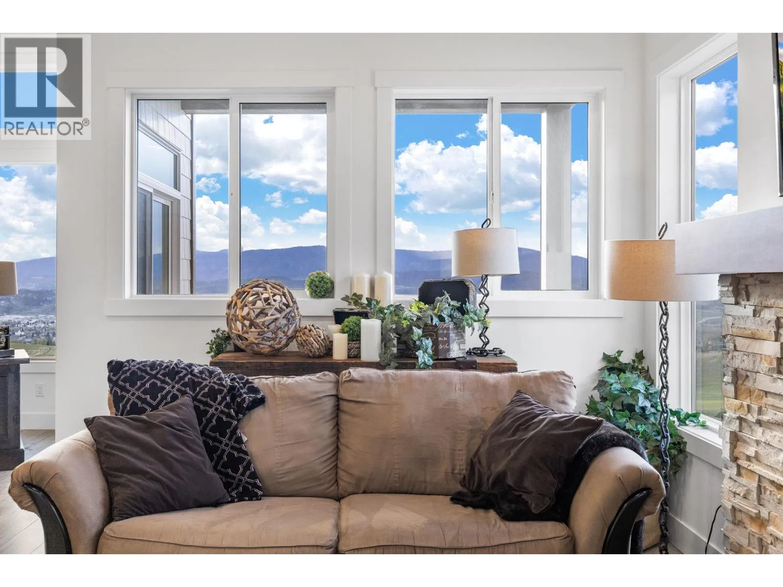 New Move-in Ready Golf Course Home fully equipped. Tower Ranch Golf Club is known of its sense of community, scenic and picturesque 18 Holes, Club House, Restaurant and Gym. Vineyard and Orchard views, from every room and minutes to the airport and shopping areas of Kelowna. The main floor entry, kitchen, living, dining are flooded with light and offer unobstructed views with protected space to ensure longevity. Lower level is finished with F/P, TV area, two flex space/bedrooms and a bar area ready for sink, dishwasher and wine fridge. The magic of this home is the top floor, private level primary suite with picture windows to greenspace on one side, and an ample rooftop balcony with vineyard golf and lake view on the other. Property is Leased from Parkridge Communities, Strata Fee, Membership Fee and TRCA club fee paid monthly. Access to gym & members lounge as well as Tower Ranch Club House and restaurant. Pets restricted to two per household, must be registered and approved by Strata. (id:27476)