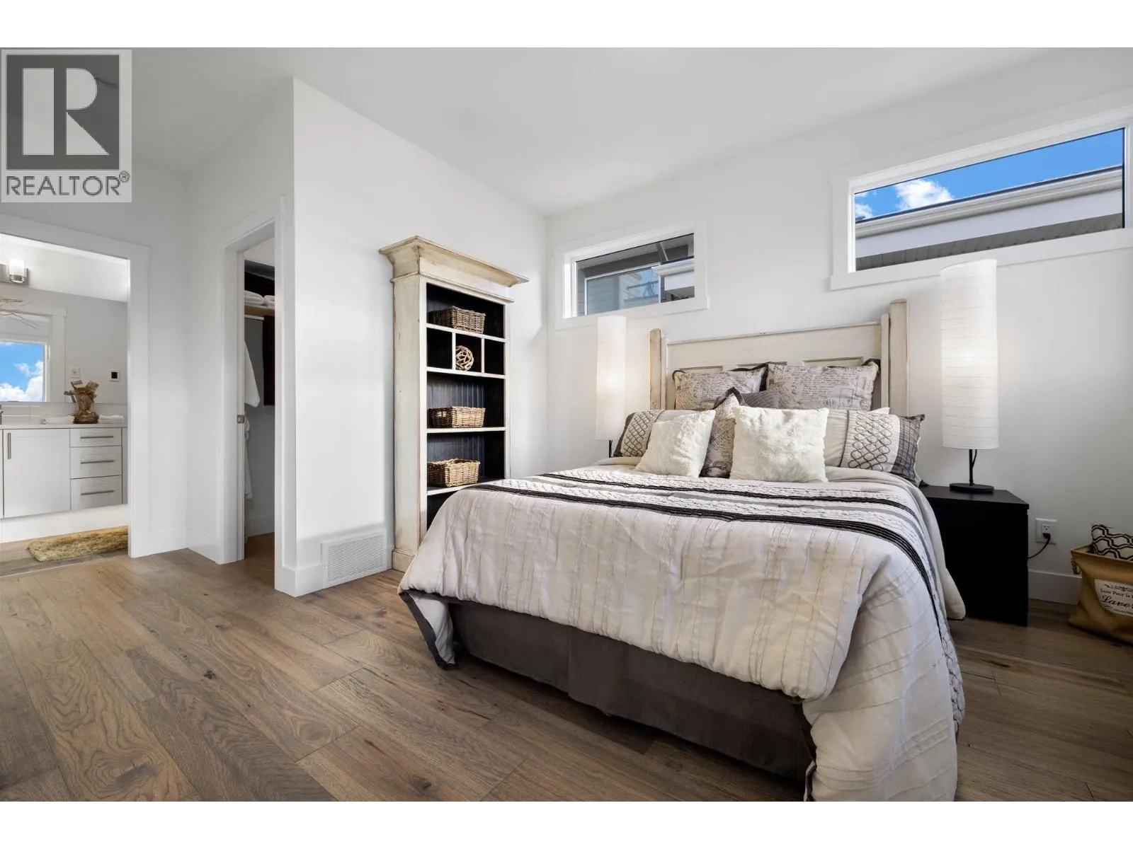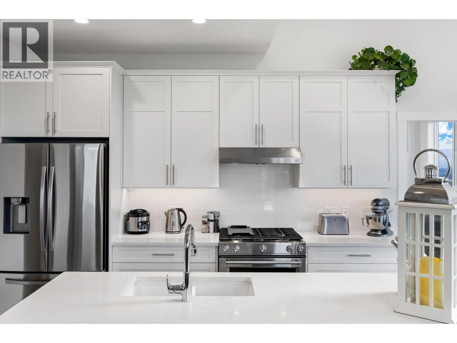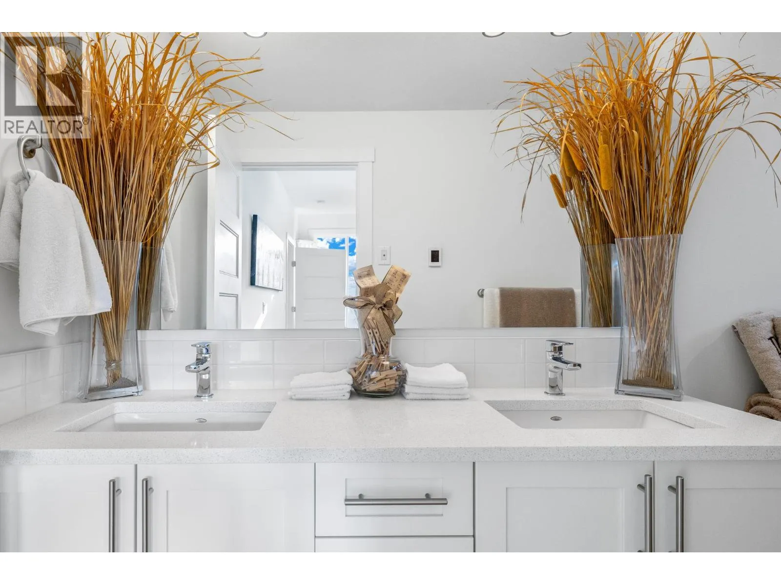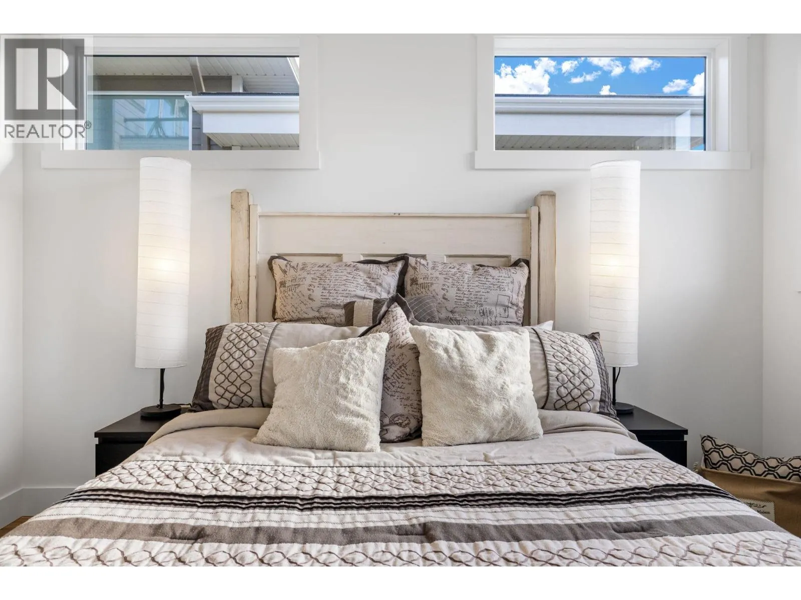 New Move-in Ready Golf Course Home fully equipped. Tower Ranch Golf Club is known of its sense of community, scenic and picturesque 18 Holes, Club House, Restaurant and Gym. Vineyard and Orchard views, from every room and minutes to the airport and shopping areas of Kelowna. The main floor entry, kitchen, living, dining are flooded with light and offer unobstructed views with protected space to ensure longevity. Lower level is finished with F/P, TV area, two flex space/bedrooms and a bar area ready for sink, dishwasher and wine fridge. The magic of this home is the top floor, private level primary suite with picture windows to greenspace on one side, and an ample rooftop balcony with vineyard golf and lake view on the other. Property is Leased from Parkridge Communities, Strata Fee, Membership Fee and TRCA club fee paid monthly. Access to gym & members lounge as well as Tower Ranch Club House and restaurant. Pets restricted to two per household, must be registered and approved by Strata. (id:27476)
