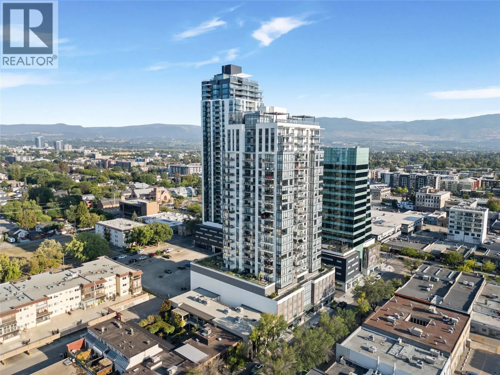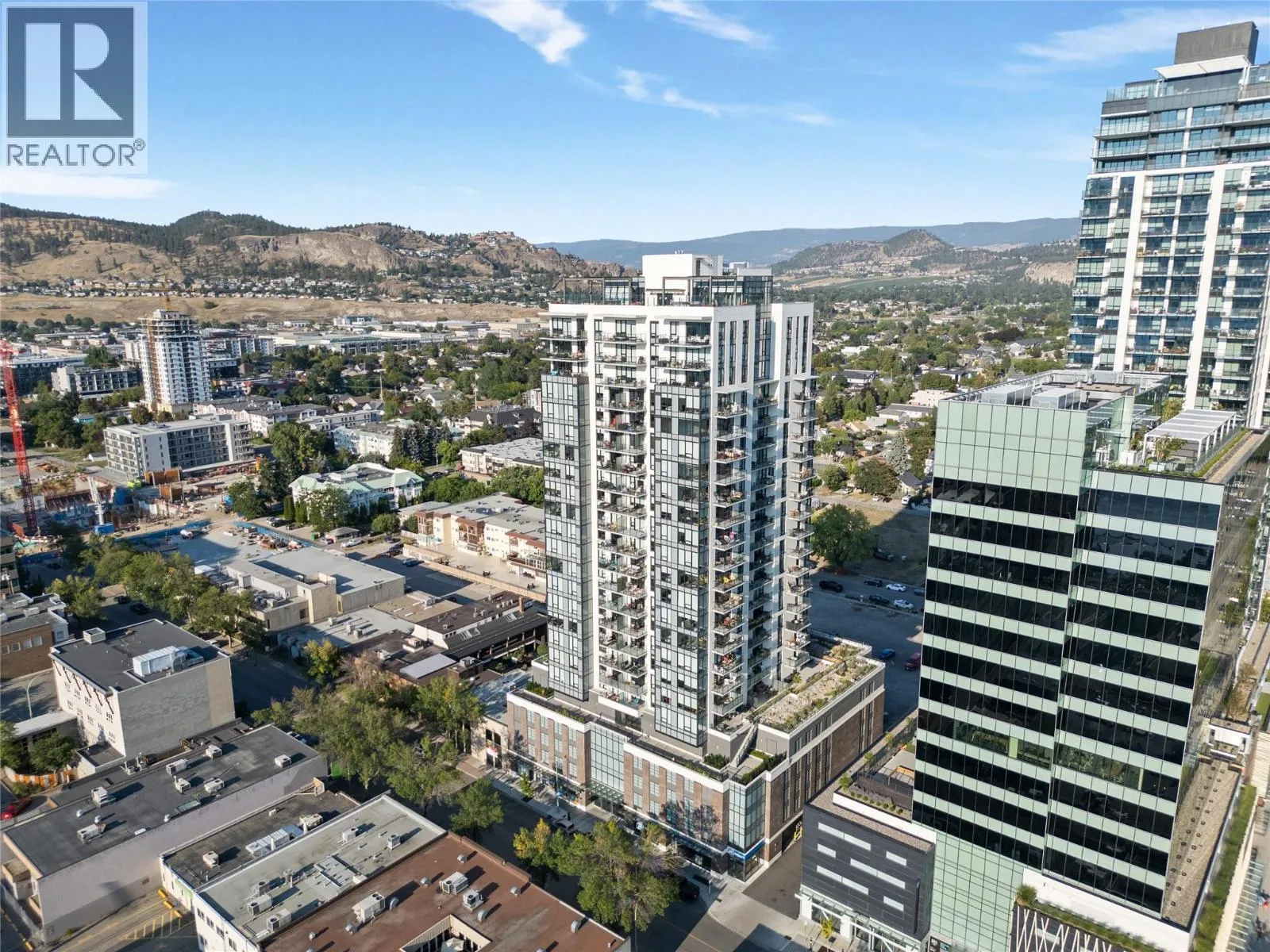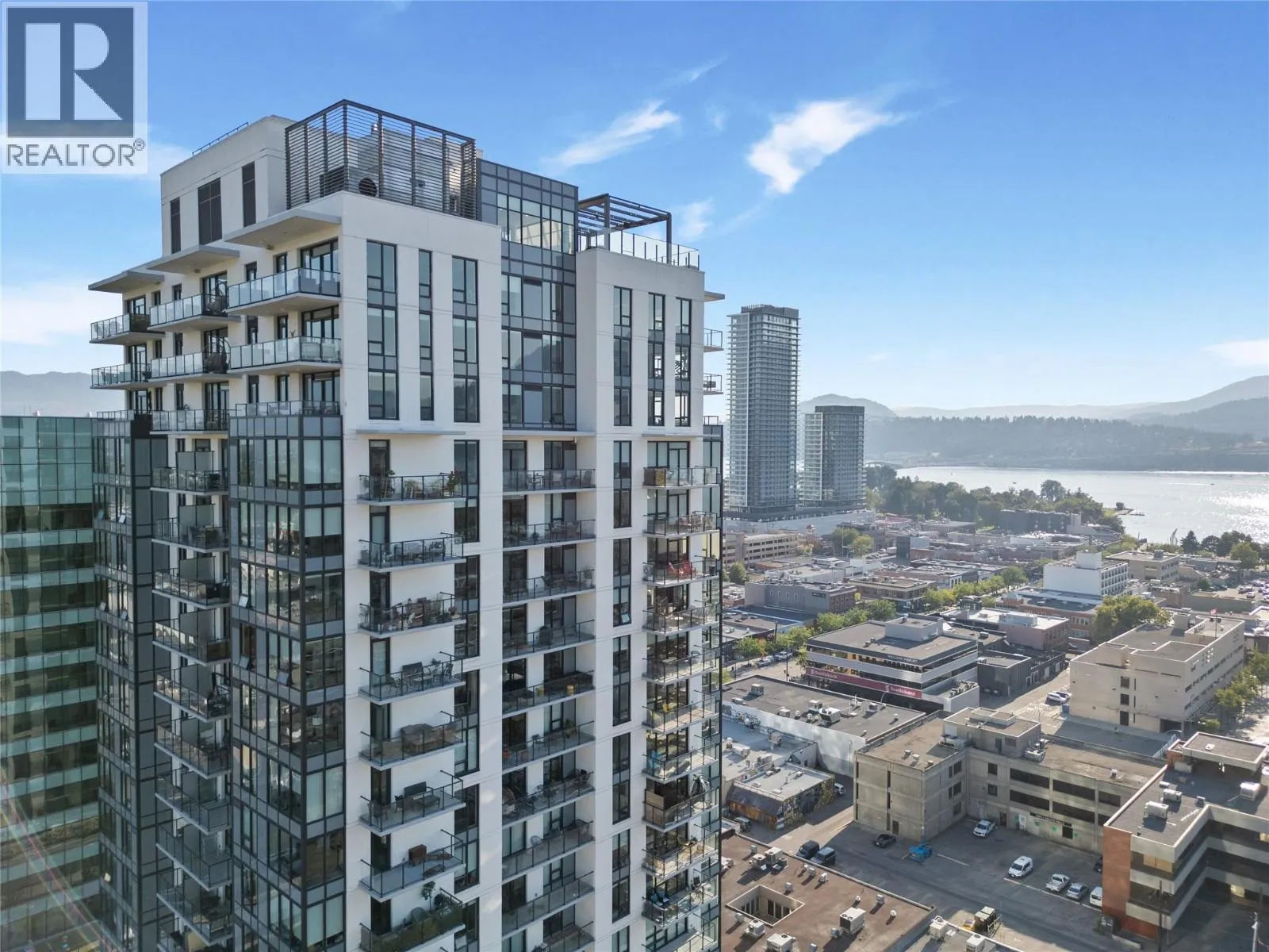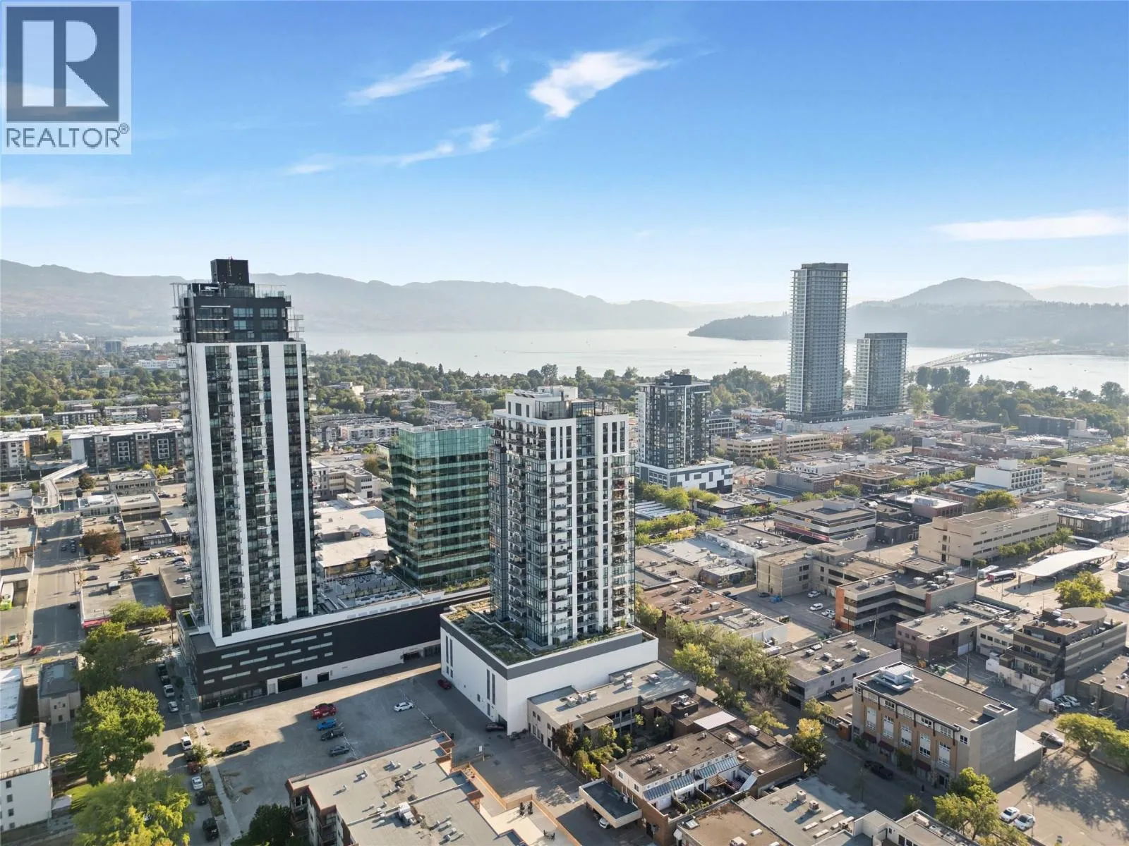 Experience ultimate downtown living at Brooklyn, one of Kelownaâs most iconic high-rises. Unit 2005 is a 2 bed, 2 bath condo with 871 sq/ft of thoughtfully designed space and a large private patio showcasing panoramic views of Okanagan Lake, the mountains, and the city below. Inside, a modern open-concept layout blends style and comfort with stainless steel appliances, quartz countertops, and a large island perfect for entertaining. Expansive windows fill the home with natural light, while the primary suite offers a private ensuite and the second bedroom provides flexibility for guests or a home office. In-suite laundry and high-end finishes add everyday comfort. This home includes a secure underground parking stall equipped with an EV charger, offering convenience and future-ready appeal. Step outside to the heart of Kelownaâs Bernard District, where boutique shops, cafes, and top-rated restaurants are just steps away. The waterfront, marina, and City Park are a short stroll, with the upcoming UBCO downtown campus adding to the areaâs growth and vibrancy. Residents of Brooklyn enjoy impressive amenities, including a 25th-floor rooftop terrace and lounge with stunning views, BBQ area, conference room, secure bike storage, bike wash, and dog wash. Pet friendly, no age restrictions, and professionally managed for peace of mind. (id:27476)