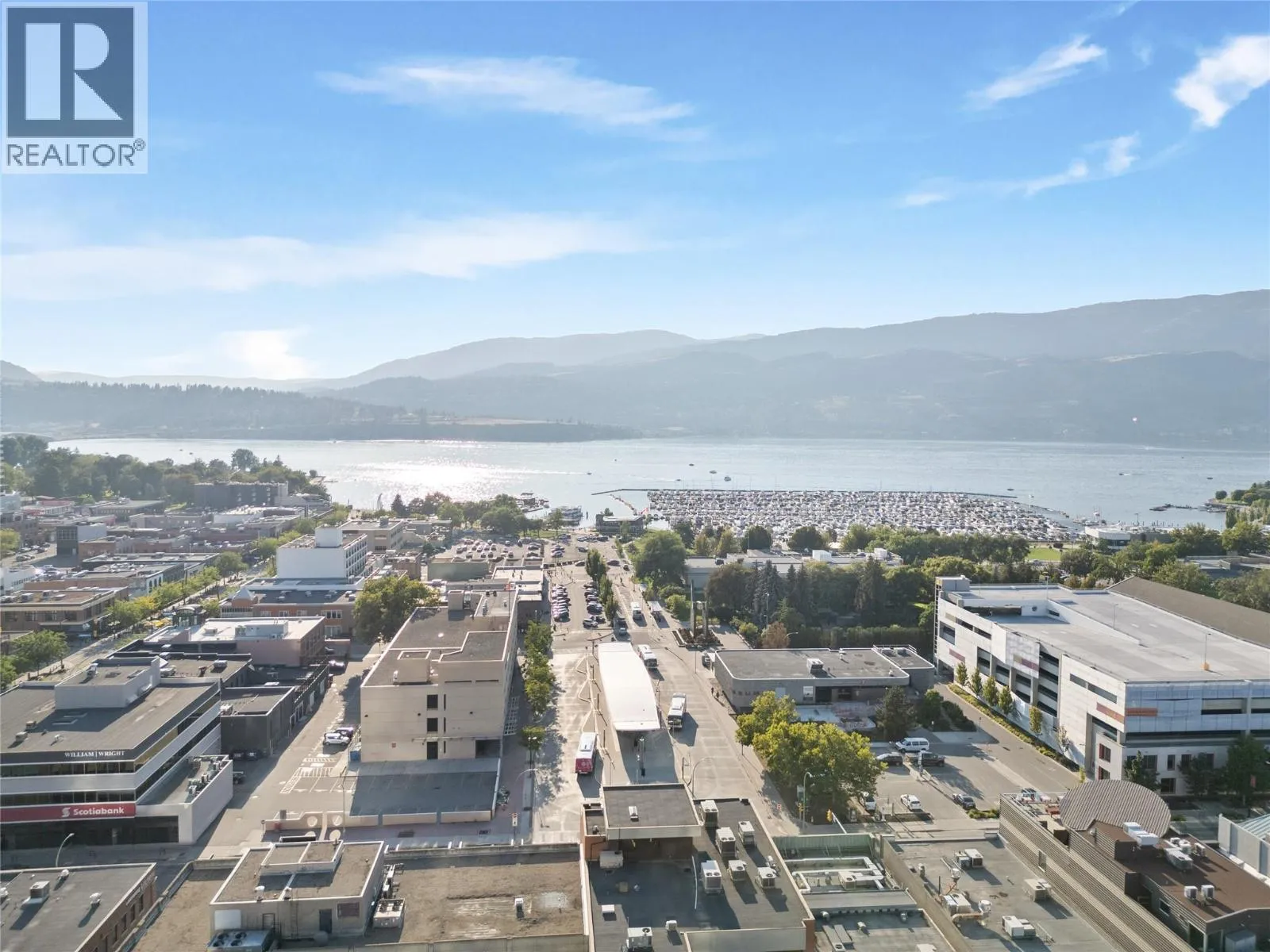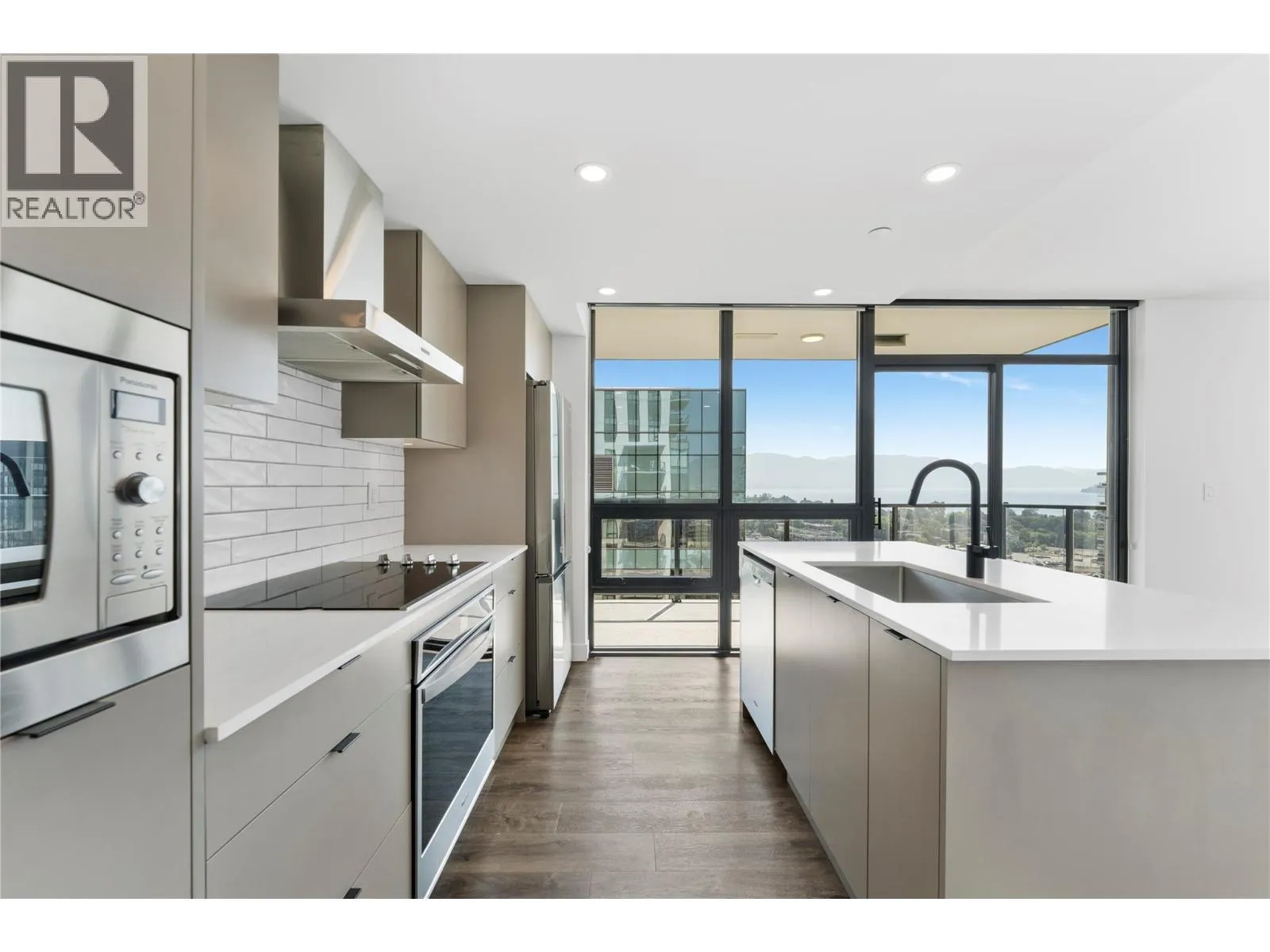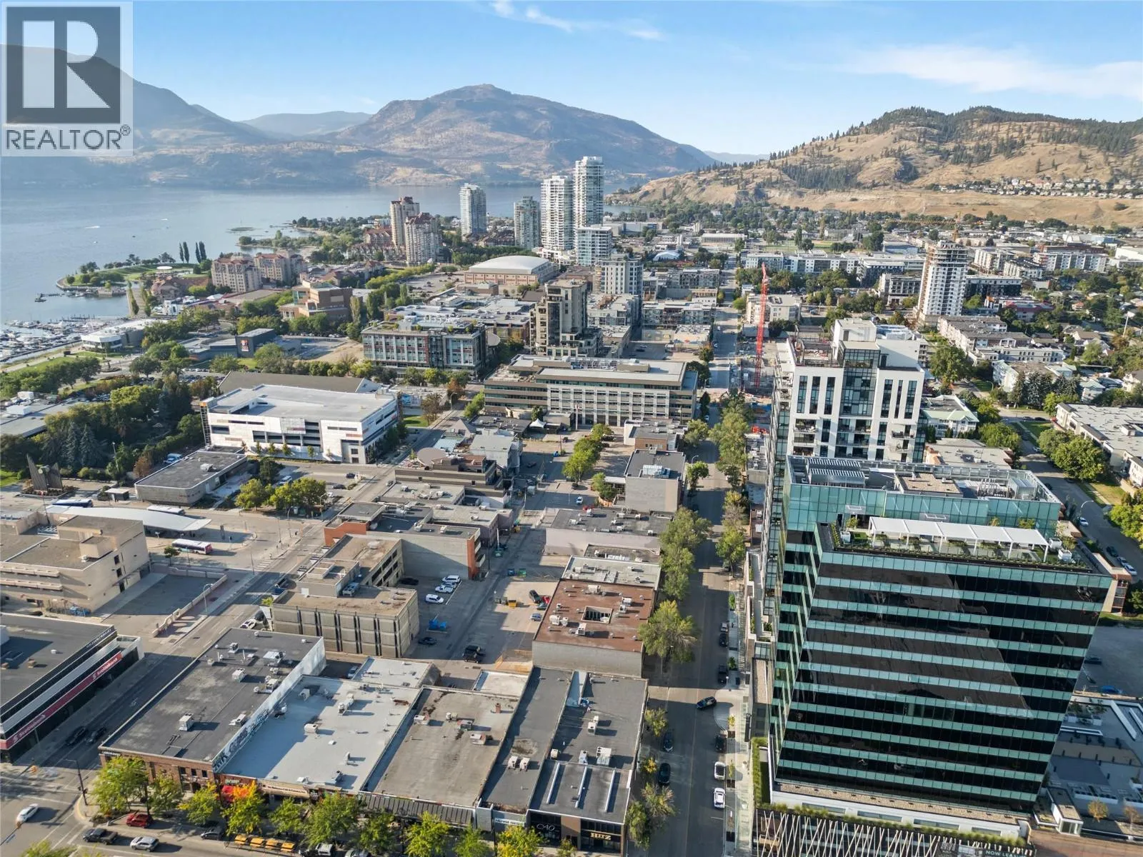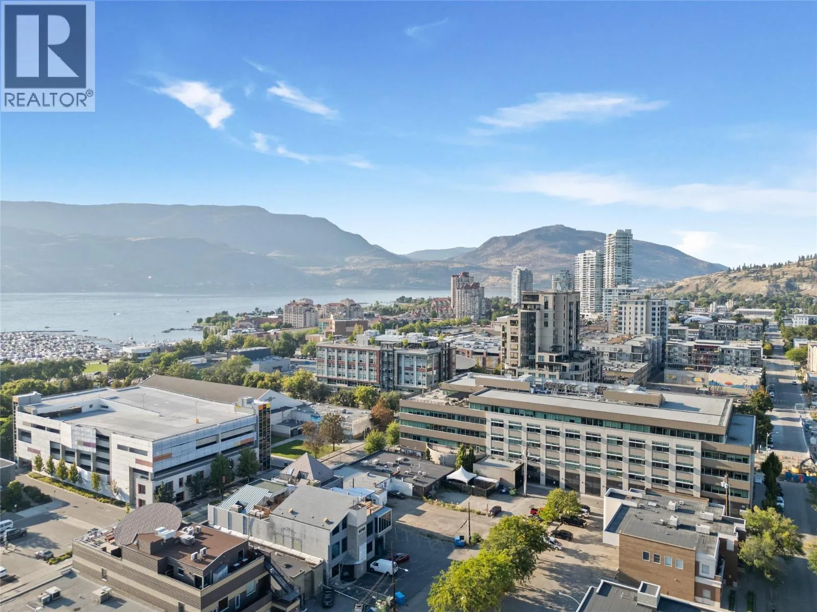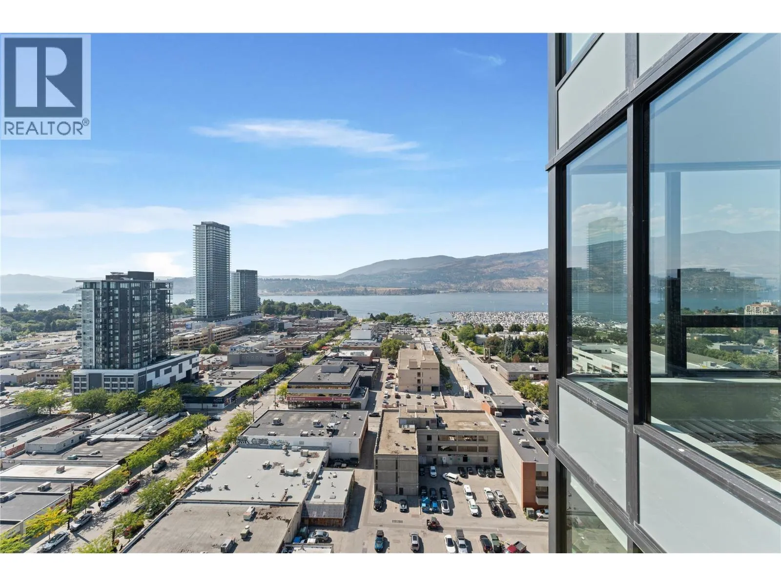 Experience ultimate downtown living at Brooklyn, one of Kelownaâs most iconic high-rises. Unit 2005 is a 2 bed, 2 bath condo with 871 sq/ft of thoughtfully designed space and a large private patio showcasing panoramic views of Okanagan Lake, the mountains, and the city below. Inside, a modern open-concept layout blends style and comfort with stainless steel appliances, quartz countertops, and a large island perfect for entertaining. Expansive windows fill the home with natural light, while the primary suite offers a private ensuite and the second bedroom provides flexibility for guests or a home office. In-suite laundry and high-end finishes add everyday comfort. This home includes a secure underground parking stall equipped with an EV charger, offering convenience and future-ready appeal. Step outside to the heart of Kelownaâs Bernard District, where boutique shops, cafes, and top-rated restaurants are just steps away. The waterfront, marina, and City Park are a short stroll, with the upcoming UBCO downtown campus adding to the areaâs growth and vibrancy. Residents of Brooklyn enjoy impressive amenities, including a 25th-floor rooftop terrace and lounge with stunning views, BBQ area, conference room, secure bike storage, bike wash, and dog wash. Pet friendly, no age restrictions, and professionally managed for peace of mind. (id:27476)