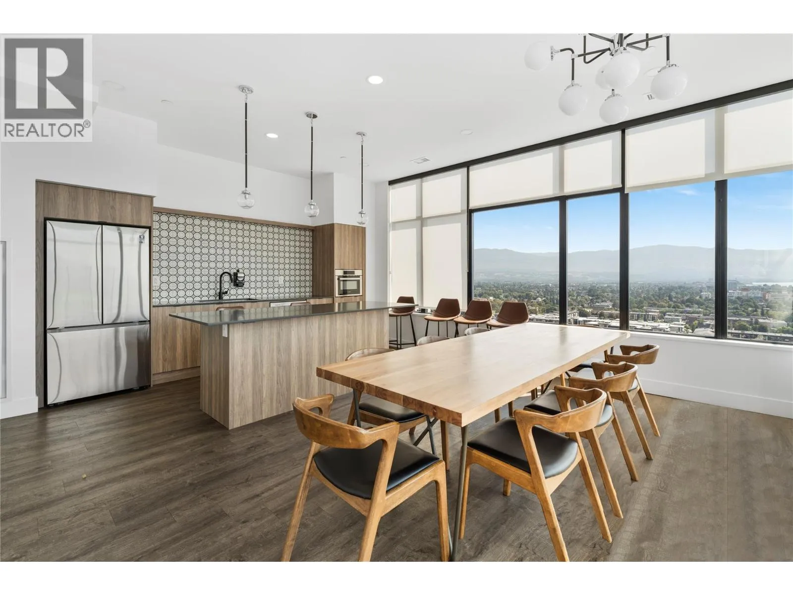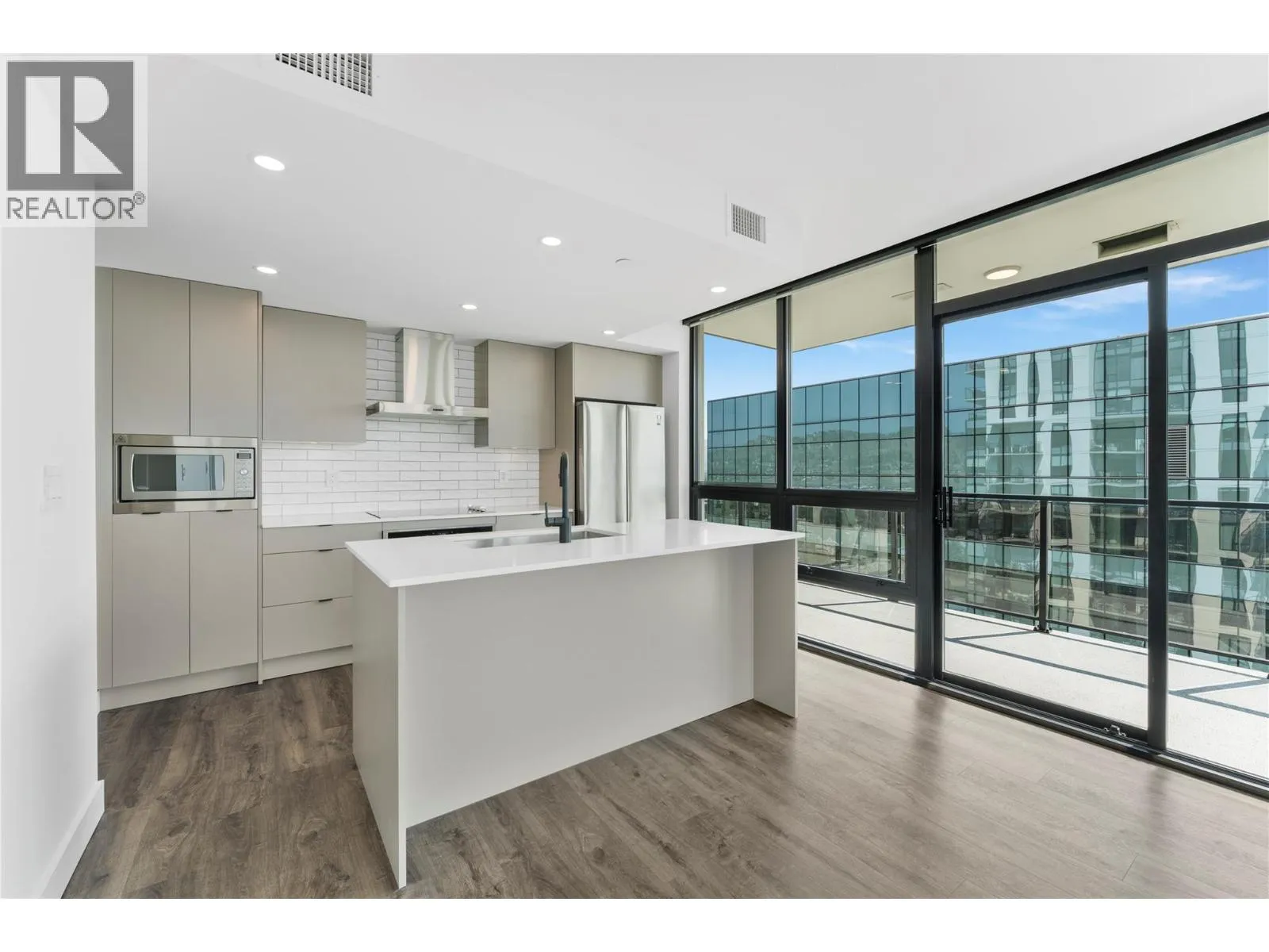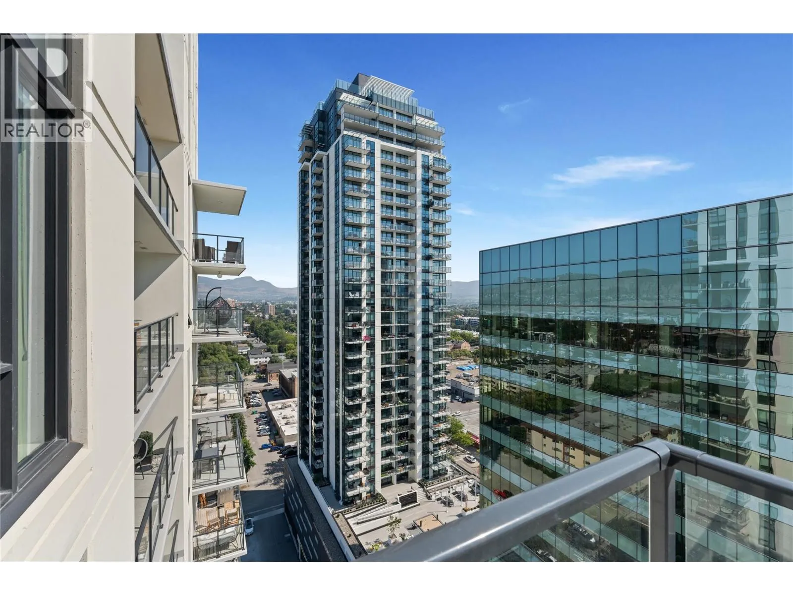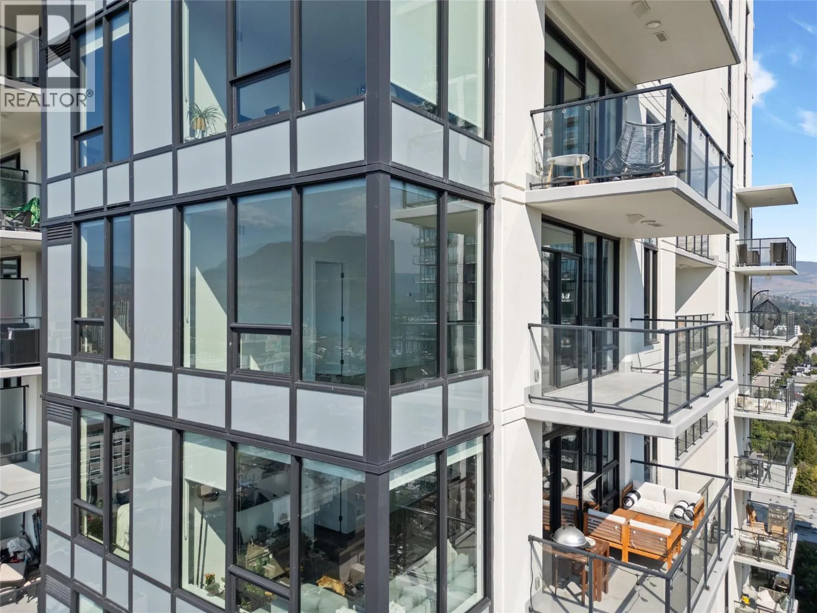 Experience ultimate downtown living at Brooklyn, one of Kelownaâs most iconic high-rises. Unit 2005 is a 2 bed, 2 bath condo with 871 sq/ft of thoughtfully designed space and a large private patio showcasing panoramic views of Okanagan Lake, the mountains, and the city below. Inside, a modern open-concept layout blends style and comfort with stainless steel appliances, quartz countertops, and a large island perfect for entertaining. Expansive windows fill the home with natural light, while the primary suite offers a private ensuite and the second bedroom provides flexibility for guests or a home office. In-suite laundry and high-end finishes add everyday comfort. This home includes a secure underground parking stall equipped with an EV charger, offering convenience and future-ready appeal. Step outside to the heart of Kelownaâs Bernard District, where boutique shops, cafes, and top-rated restaurants are just steps away. The waterfront, marina, and City Park are a short stroll, with the upcoming UBCO downtown campus adding to the areaâs growth and vibrancy. Residents of Brooklyn enjoy impressive amenities, including a 25th-floor rooftop terrace and lounge with stunning views, BBQ area, conference room, secure bike storage, bike wash, and dog wash. Pet friendly, no age restrictions, and professionally managed for peace of mind. (id:27476)