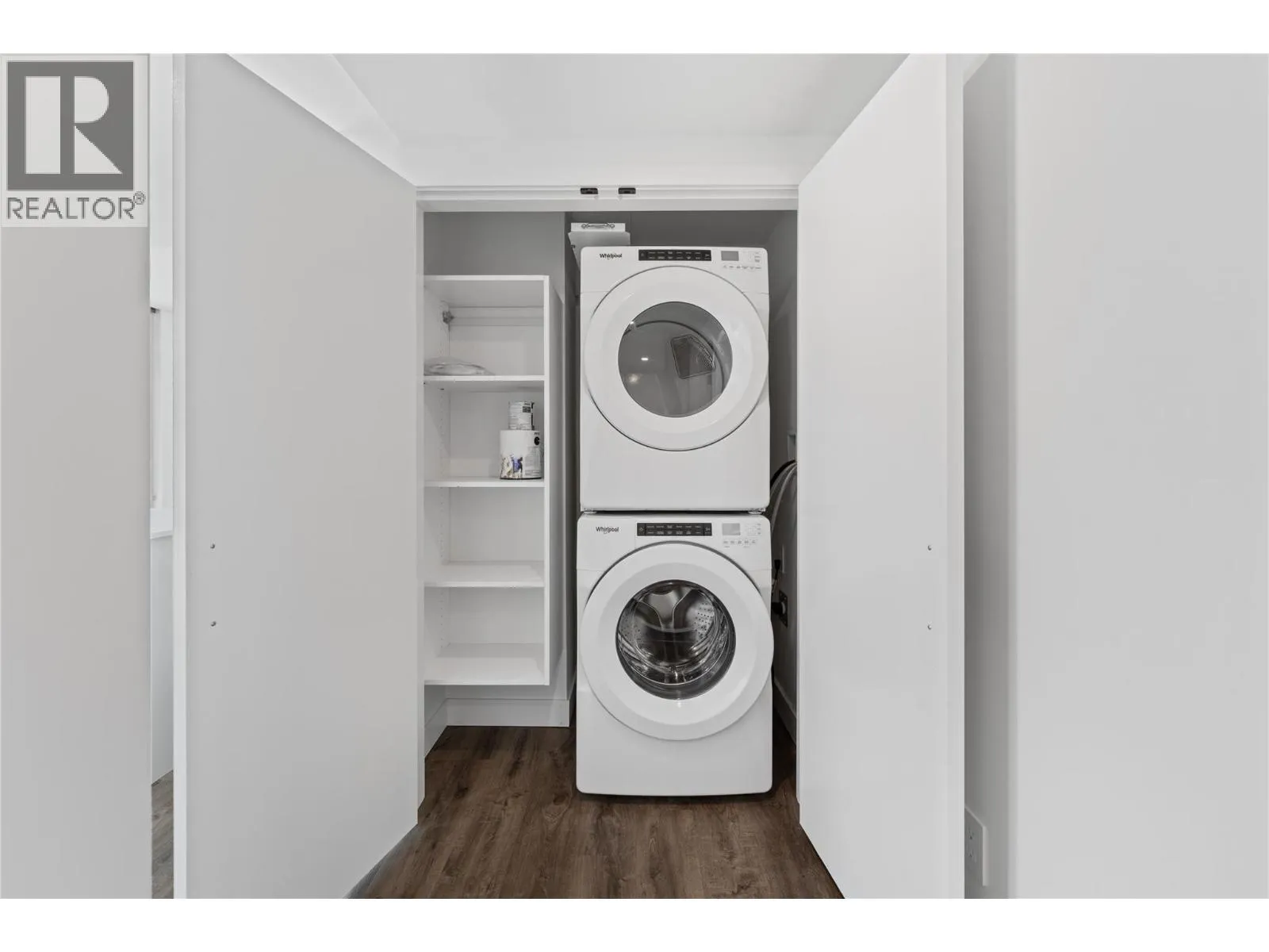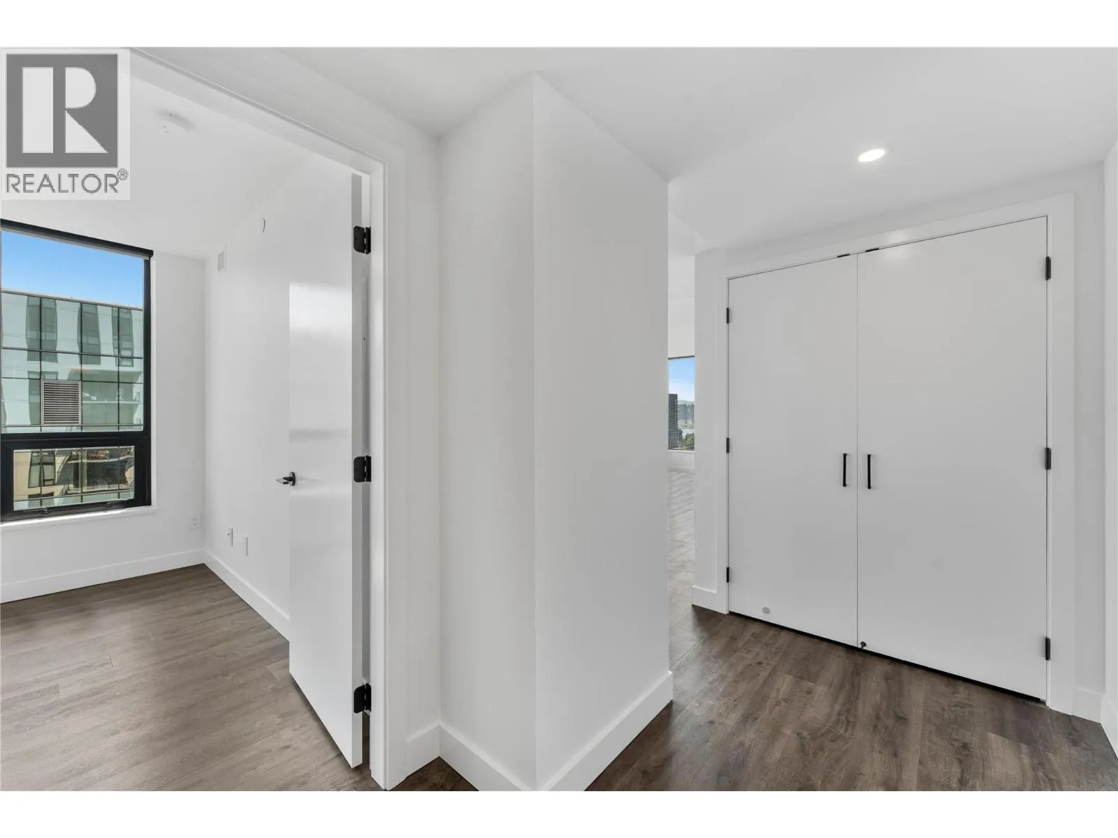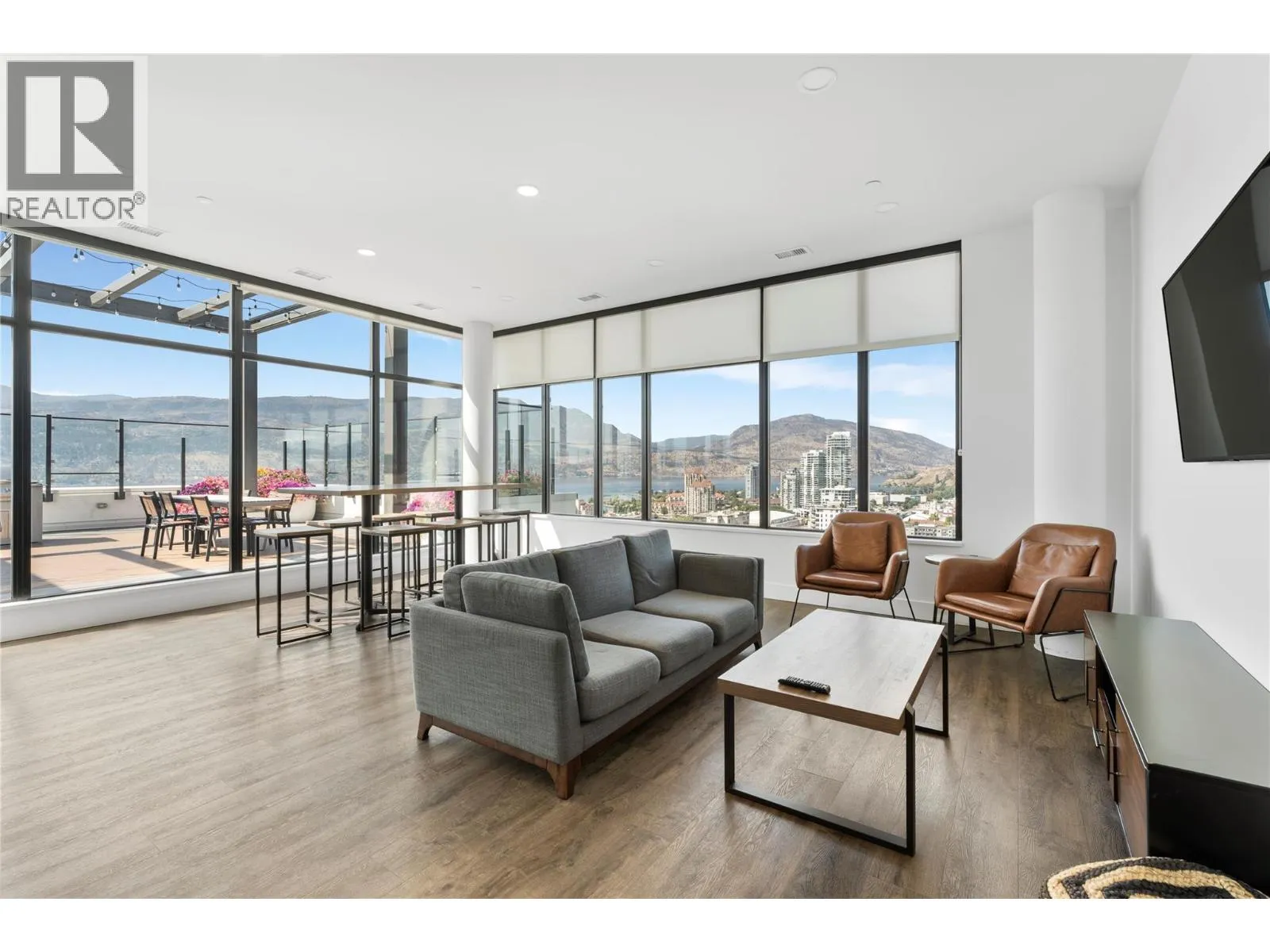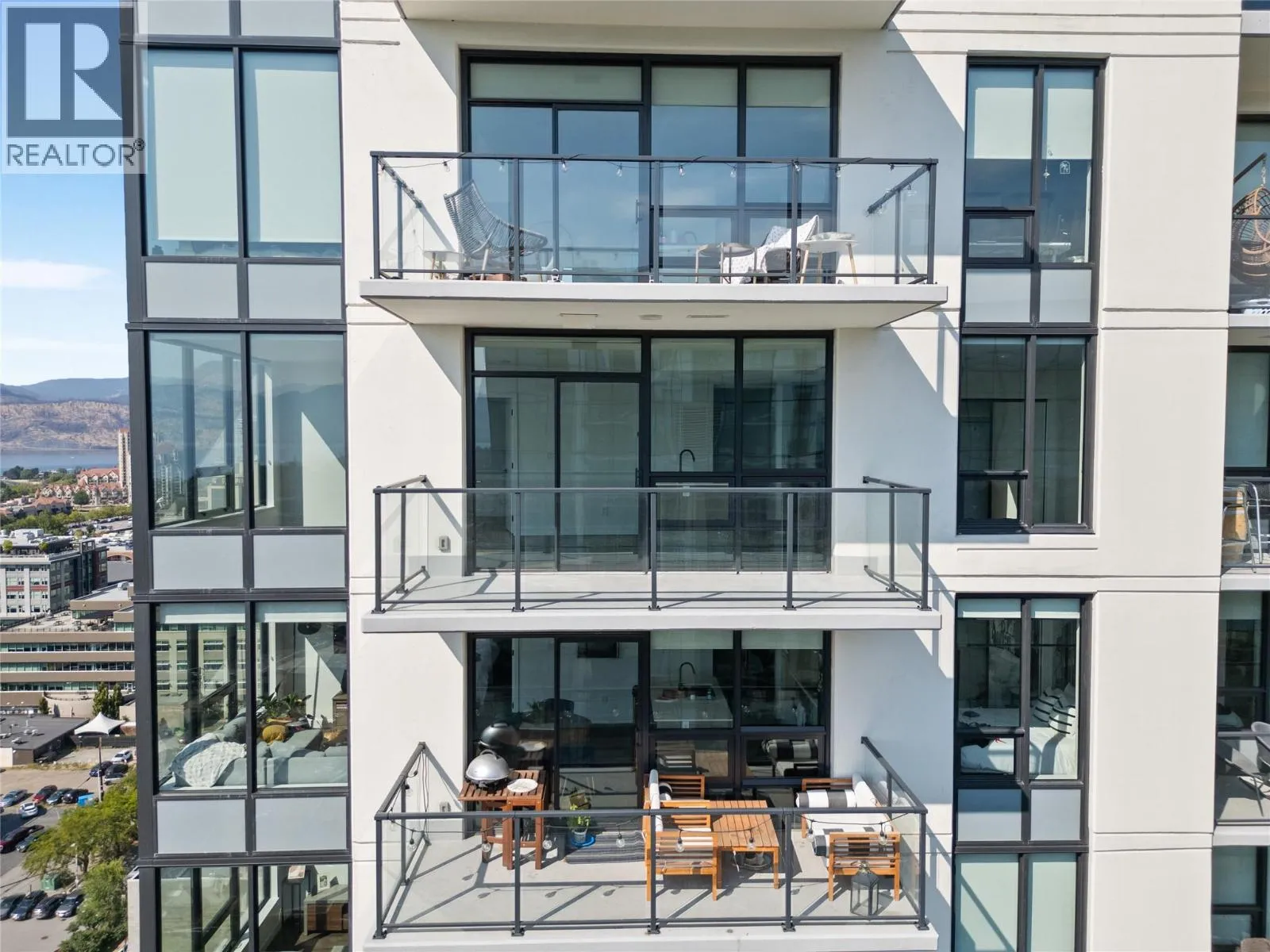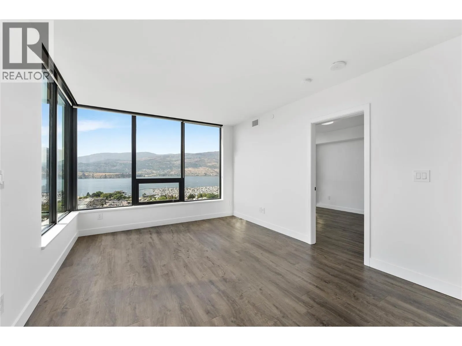Experience ultimate downtown living at Brooklyn, one of Kelownaâs most iconic high-rises. Unit 2005 is a 2 bed, 2 bath condo with 871 sq/ft of thoughtfully designed space and a large private patio showcasing panoramic views of Okanagan Lake, the mountains, and the city below. Inside, a modern open-concept layout blends style and comfort with stainless steel appliances, quartz countertops, and a large island perfect for entertaining. Expansive windows fill the home with natural light, while the primary suite offers a private ensuite and the second bedroom provides flexibility for guests or a home office. In-suite laundry and high-end finishes add everyday comfort. This home includes a secure underground parking stall equipped with an EV charger, offering convenience and future-ready appeal. Step outside to the heart of Kelownaâs Bernard District, where boutique shops, cafes, and top-rated restaurants are just steps away. The waterfront, marina, and City Park are a short stroll, with the upcoming UBCO downtown campus adding to the areaâs growth and vibrancy. Residents of Brooklyn enjoy impressive amenities, including a 25th-floor rooftop terrace and lounge with stunning views, BBQ area, conference room, secure bike storage, bike wash, and dog wash. Pet friendly, no age restrictions, and professionally managed for peace of mind. (id:27476)