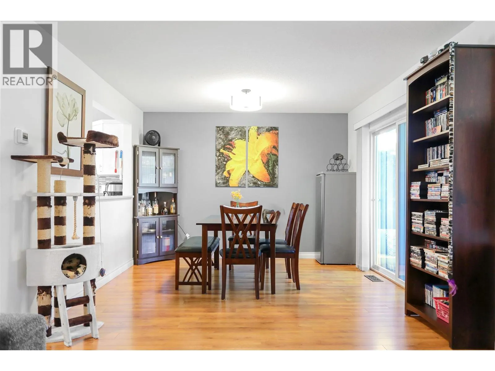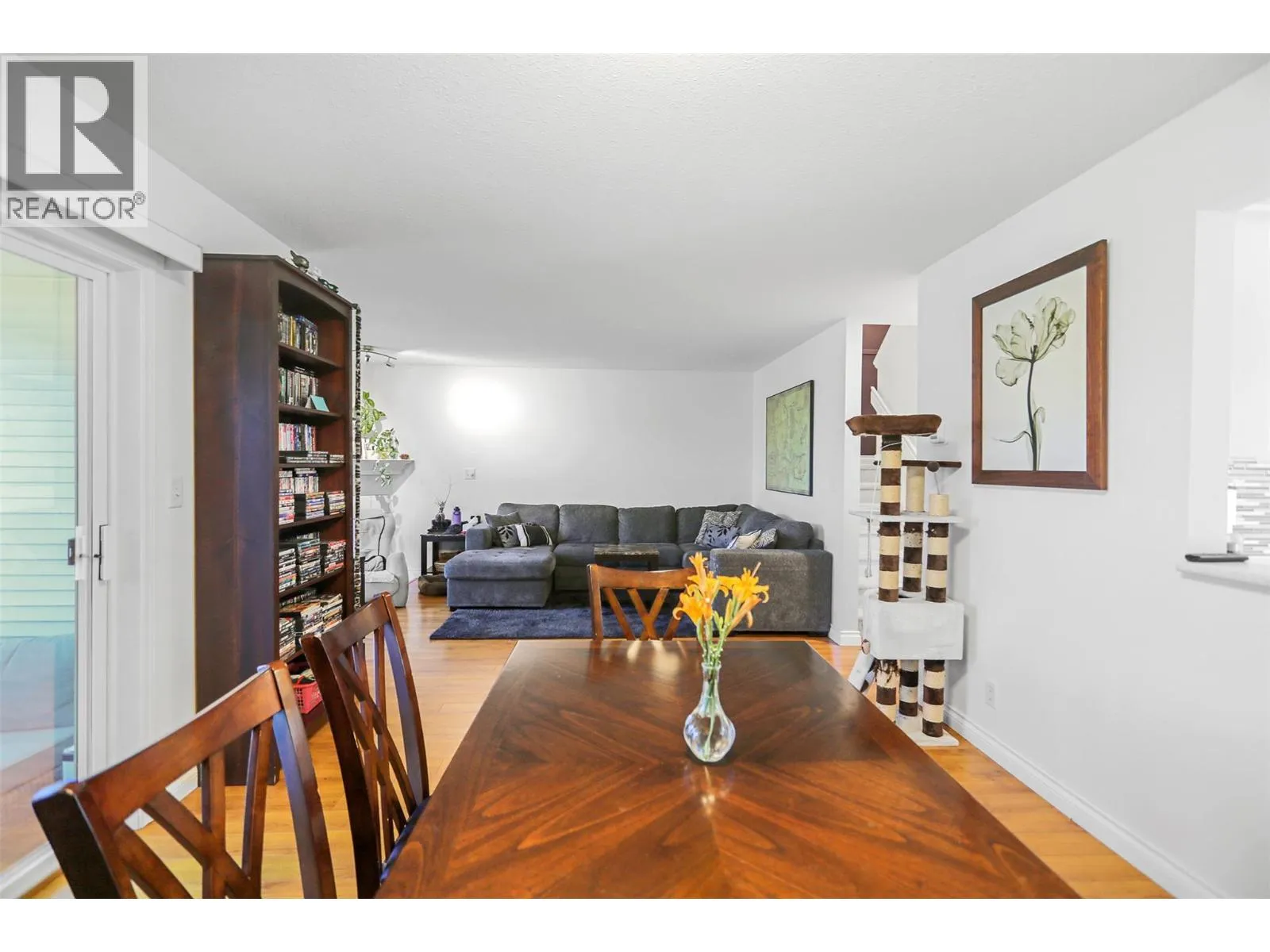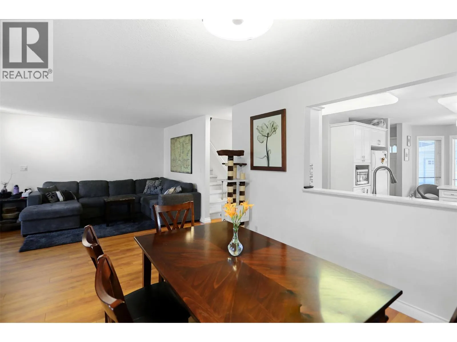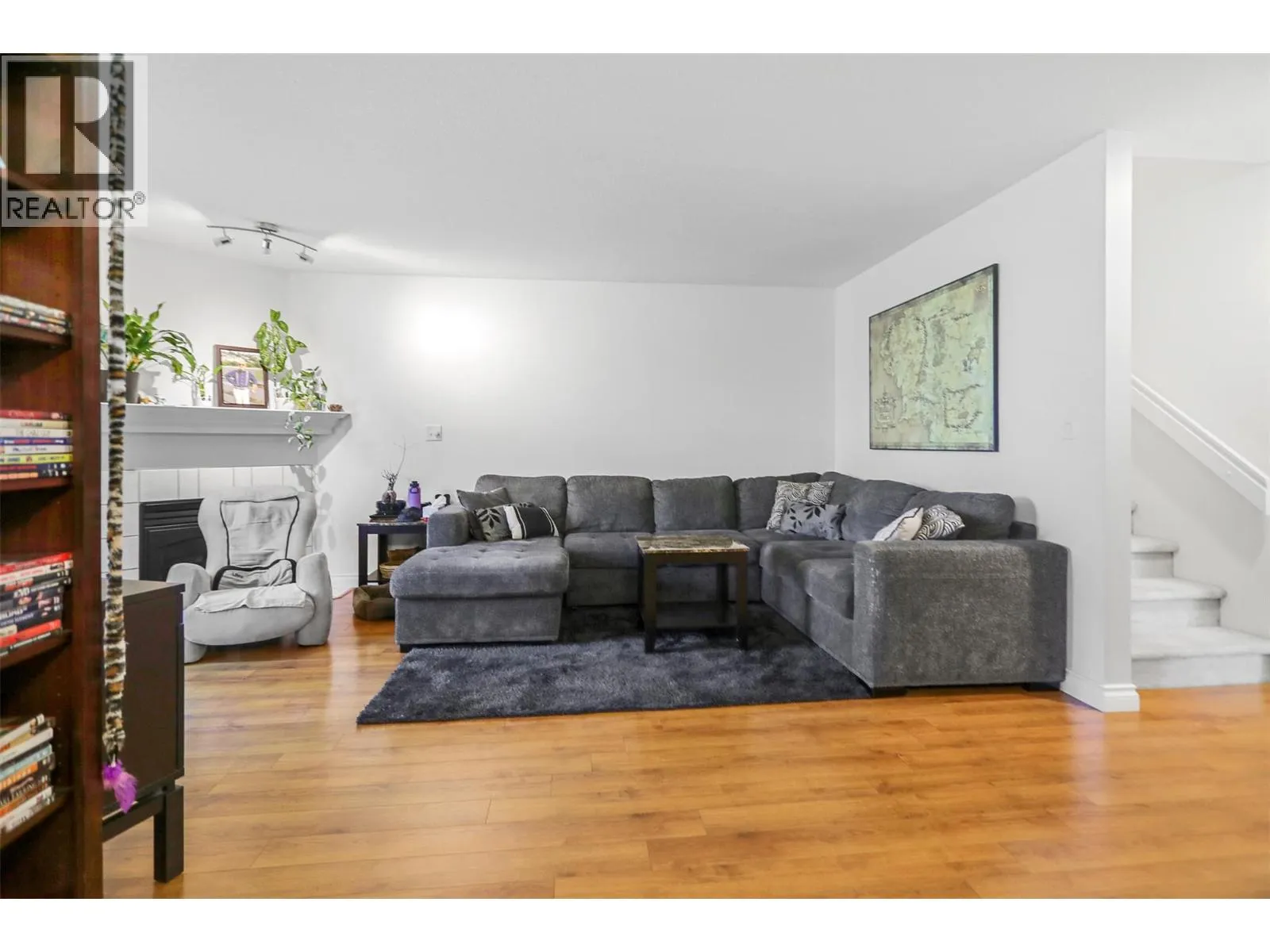 Welcome to your dream townhome in the heart of a vibrant, well-maintained complex! This bright and airy end-unit townhome is flooded with natural light thanks to its extra windows, creating a warm and inviting atmosphere. The main level boasts a spacious kitchen with ample cabinetry and counter space, perfect for culinary enthusiasts, complete with a charming pass-through window to the generous dining/living room area. Adjacent to the dining room, step out onto your private covered patio, where you can relax and enjoy stunning views of lush green space. The kitchen also features a cozy eat-in area, ideal for casual meals. The expansive living room is anchored by a gas fireplace, perfect for cozy evenings. Upstairs, youâll find two generously sized bedrooms with abundant clothing storage, complemented by a convenient cheater en-suite bathroom. Recent upgrades include a new HWT (25'), furnace (22') and air conditioner (22'), ensuring year-round comfort, and a 2025 roof replacement for peace of mind. The property includes a spacious single-car garage with extra storage and a crawl space for seasonal items, plus an oversized dedicated surface parking spot right outside your front door (largest in the complex). Perfectly located, this home is just a short drive from Strathcona Beach and downtown, yet within walking distance to the charming boutique shops and amenities of Guisachan Village. Donât miss this rare opportunity to own a move-in-ready townhome in an unbeatable location! (id:27476)