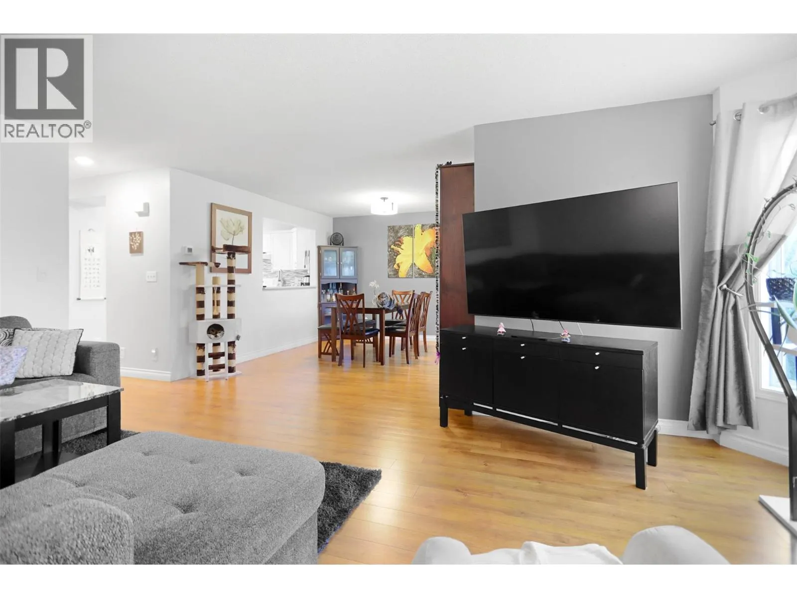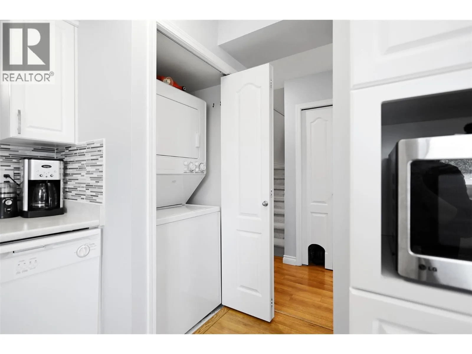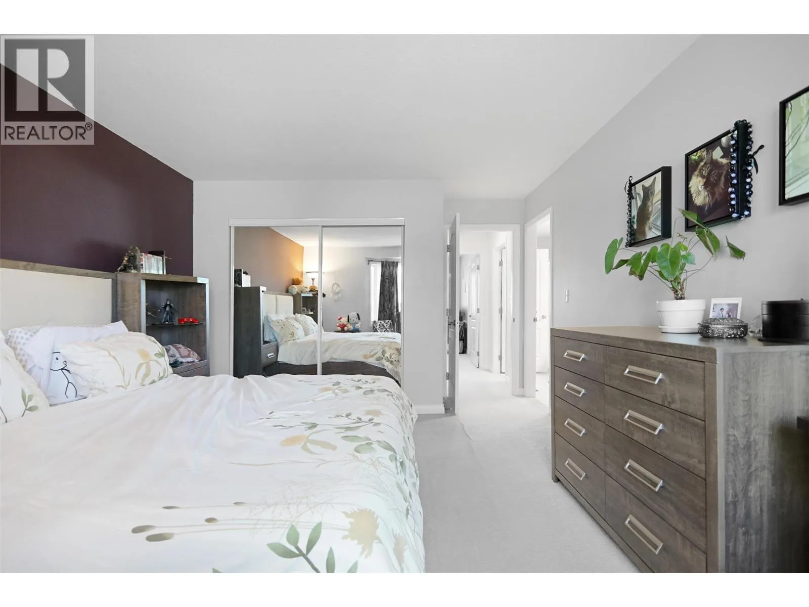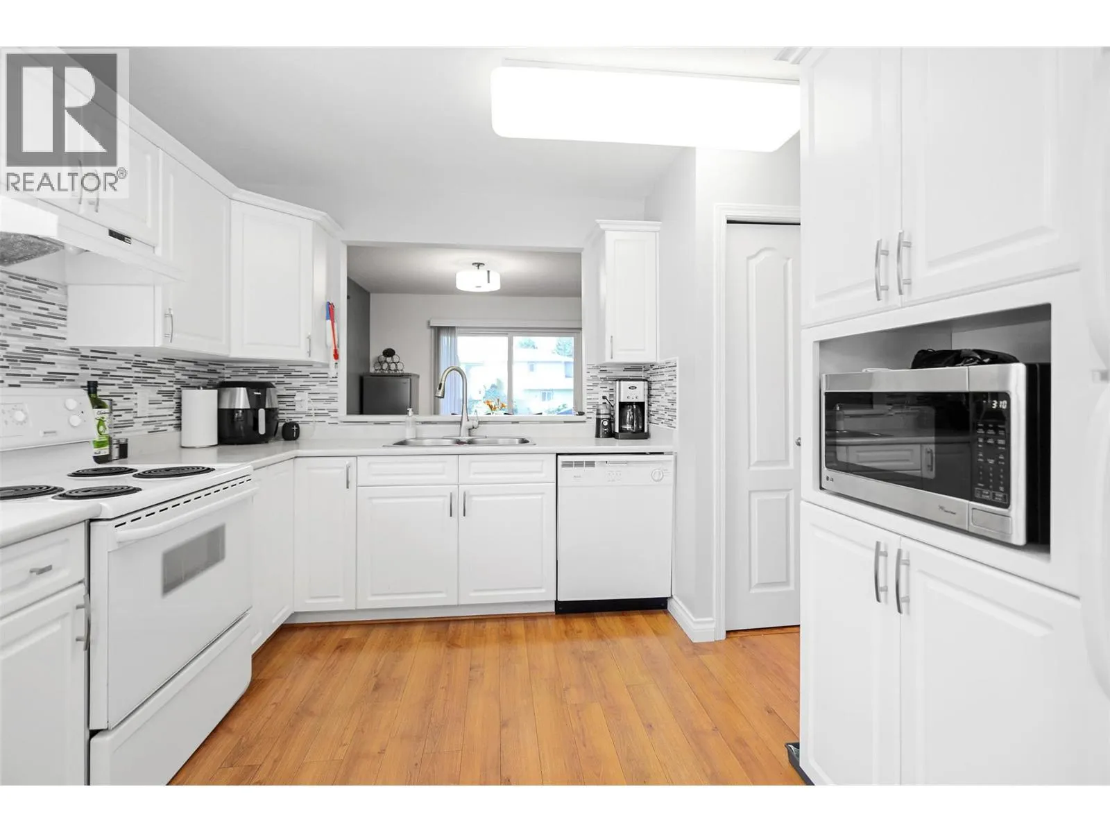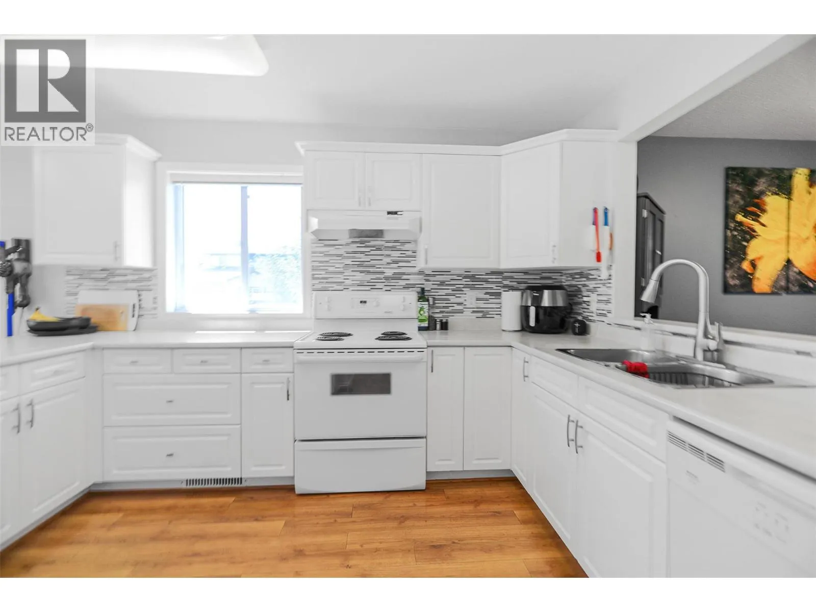 Welcome to your dream townhome in the heart of a vibrant, well-maintained complex! This bright and airy end-unit townhome is flooded with natural light thanks to its extra windows, creating a warm and inviting atmosphere. The main level boasts a spacious kitchen with ample cabinetry and counter space, perfect for culinary enthusiasts, complete with a charming pass-through window to the generous dining/living room area. Adjacent to the dining room, step out onto your private covered patio, where you can relax and enjoy stunning views of lush green space. The kitchen also features a cozy eat-in area, ideal for casual meals. The expansive living room is anchored by a gas fireplace, perfect for cozy evenings. Upstairs, youâll find two generously sized bedrooms with abundant clothing storage, complemented by a convenient cheater en-suite bathroom. Recent upgrades include a new HWT (25'), furnace (22') and air conditioner (22'), ensuring year-round comfort, and a 2025 roof replacement for peace of mind. The property includes a spacious single-car garage with extra storage and a crawl space for seasonal items, plus an oversized dedicated surface parking spot right outside your front door (largest in the complex). Perfectly located, this home is just a short drive from Strathcona Beach and downtown, yet within walking distance to the charming boutique shops and amenities of Guisachan Village. Donât miss this rare opportunity to own a move-in-ready townhome in an unbeatable location! (id:27476)