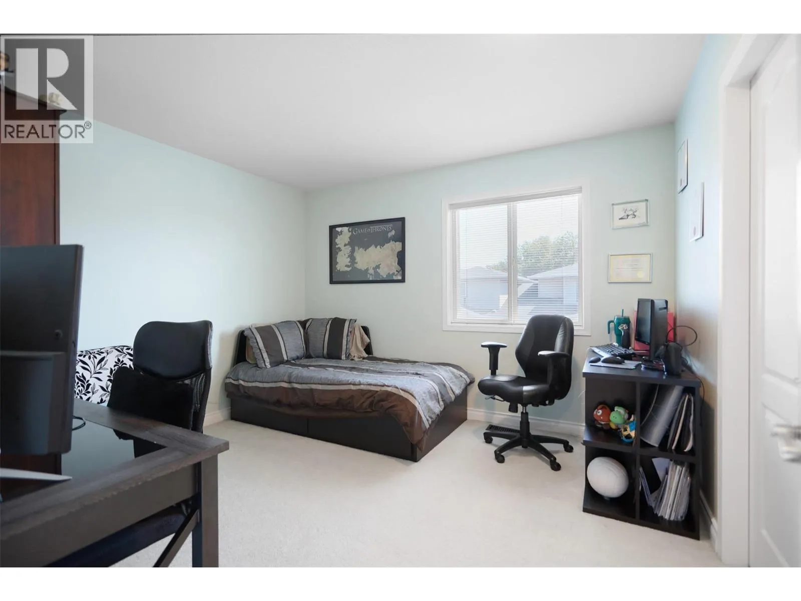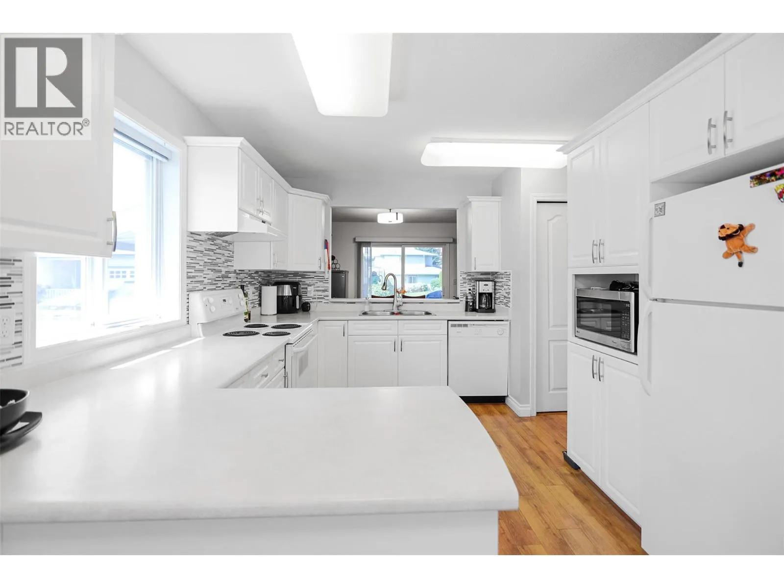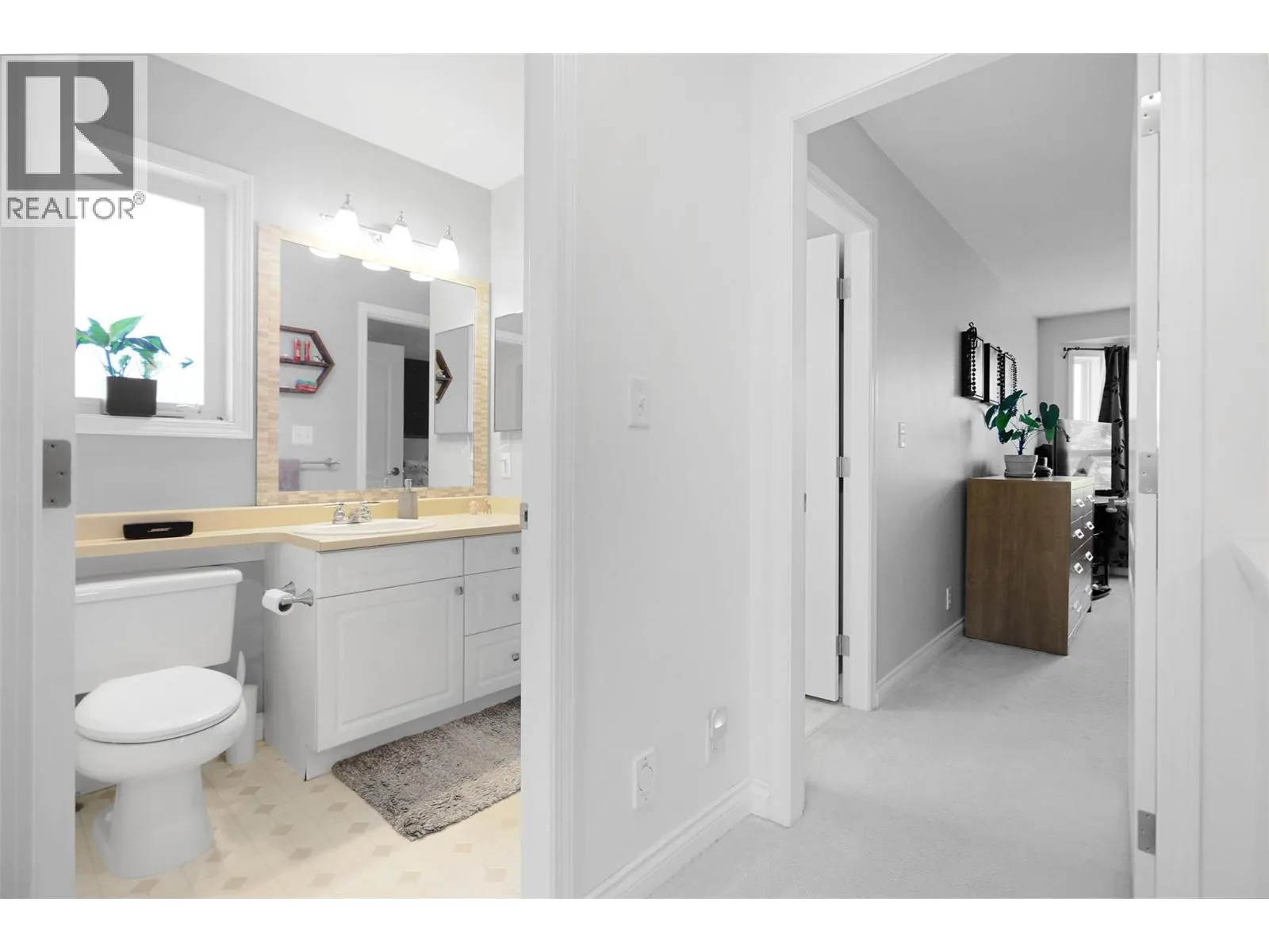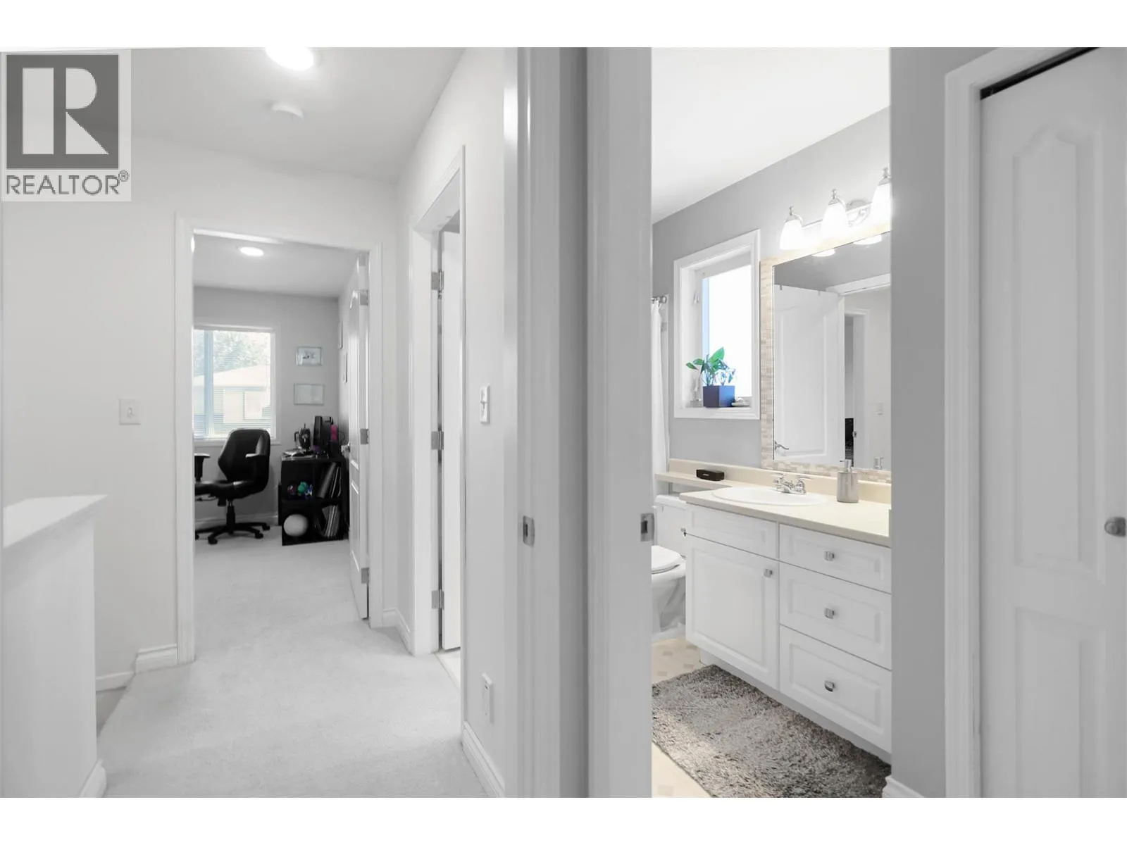 Welcome to your dream townhome in the heart of a vibrant, well-maintained complex! This bright and airy end-unit townhome is flooded with natural light thanks to its extra windows, creating a warm and inviting atmosphere. The main level boasts a spacious kitchen with ample cabinetry and counter space, perfect for culinary enthusiasts, complete with a charming pass-through window to the generous dining/living room area. Adjacent to the dining room, step out onto your private covered patio, where you can relax and enjoy stunning views of lush green space. The kitchen also features a cozy eat-in area, ideal for casual meals. The expansive living room is anchored by a gas fireplace, perfect for cozy evenings. Upstairs, youâll find two generously sized bedrooms with abundant clothing storage, complemented by a convenient cheater en-suite bathroom. Recent upgrades include a new HWT (25'), furnace (22') and air conditioner (22'), ensuring year-round comfort, and a 2025 roof replacement for peace of mind. The property includes a spacious single-car garage with extra storage and a crawl space for seasonal items, plus an oversized dedicated surface parking spot right outside your front door (largest in the complex). Perfectly located, this home is just a short drive from Strathcona Beach and downtown, yet within walking distance to the charming boutique shops and amenities of Guisachan Village. Donât miss this rare opportunity to own a move-in-ready townhome in an unbeatable location! (id:27476)