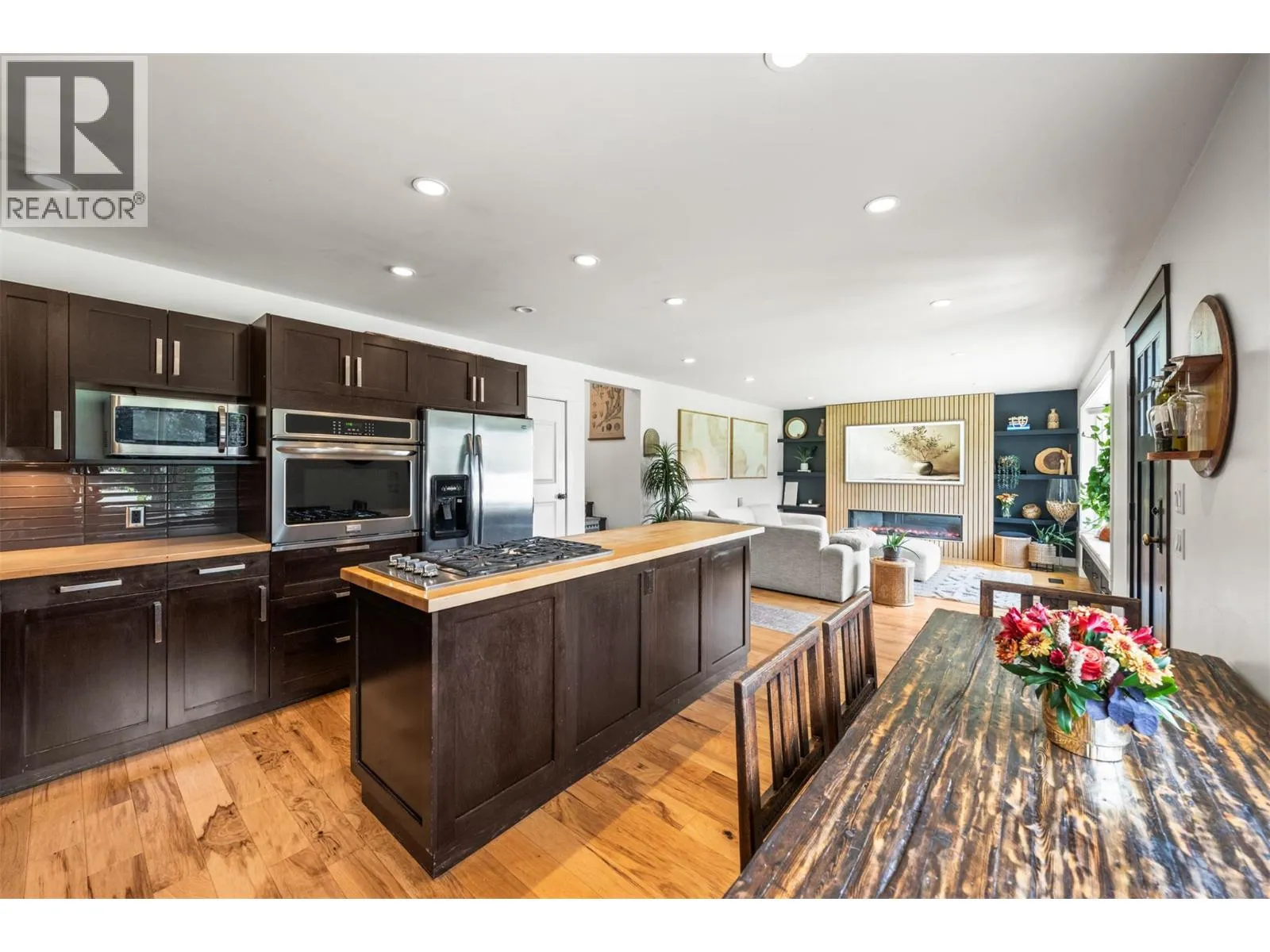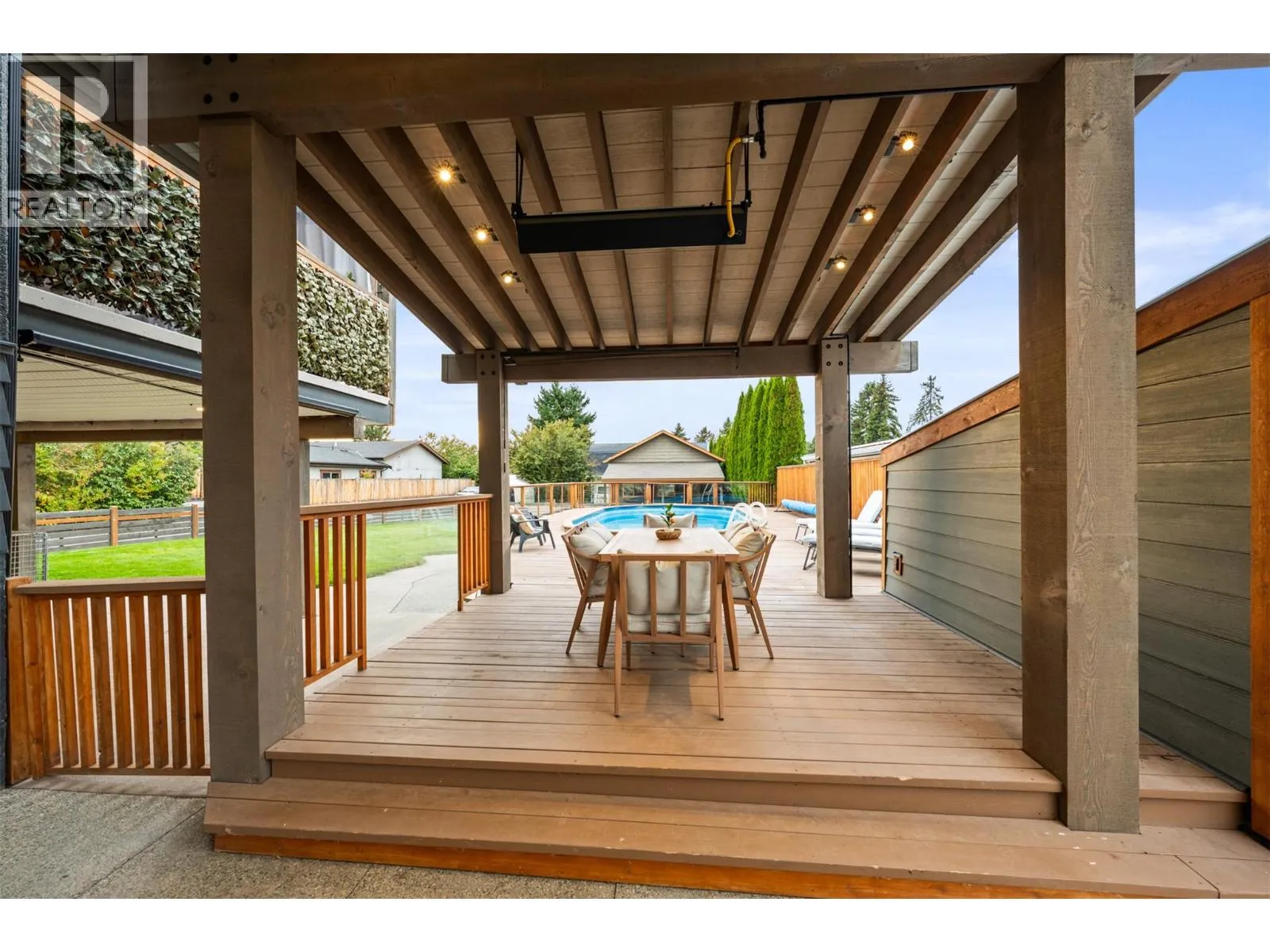Renovated 5 bedroom home on a large lot, in an exceptional location, with a suite, a pool, and a dream shop! Feel the serenity of country living with the convenience of a 5 min drive to Okanagan Lake or 10 min to downtown Kelowna. The interior and exterior of the home were recently renovated and it shows like near new. The kitchen is fully updated from top to bottom with pot lights, stainless steel appliances, a large island with gas cooktop, wall oven, and opens up to the living room with fireplace and feature wall. Upstairs you will find 3 generous sized bedrooms, an updated full bathroom, and a primary bedroom with private covered deck oasis. This deck is sure to please and outfitted with shades which offer both privacy and the ability to take in the panoramic views of the mountains, backyard, and surroundings. Downstairs there is a laundry room and one bedroom in law suite fit for the most discerning eye with separate entrance, kitchen, living room, fireplace, and french doors to its own patio. To the back of the home is a palatial style gazebo with custom built in barbecue station and dining table with overhead gas heater, which leads to the the pool and surrounding deck. In the backyard there is a 24 x 40 shop with mezzanine, bathroom, shower, office, 16' ceilings and carport. Custom quality build, not your typical cookie cutter. Perfectly configured to take full advantage of the 0.4 acre lot, this property ticks all the boxes and then some, this is a must see! (id:27476)