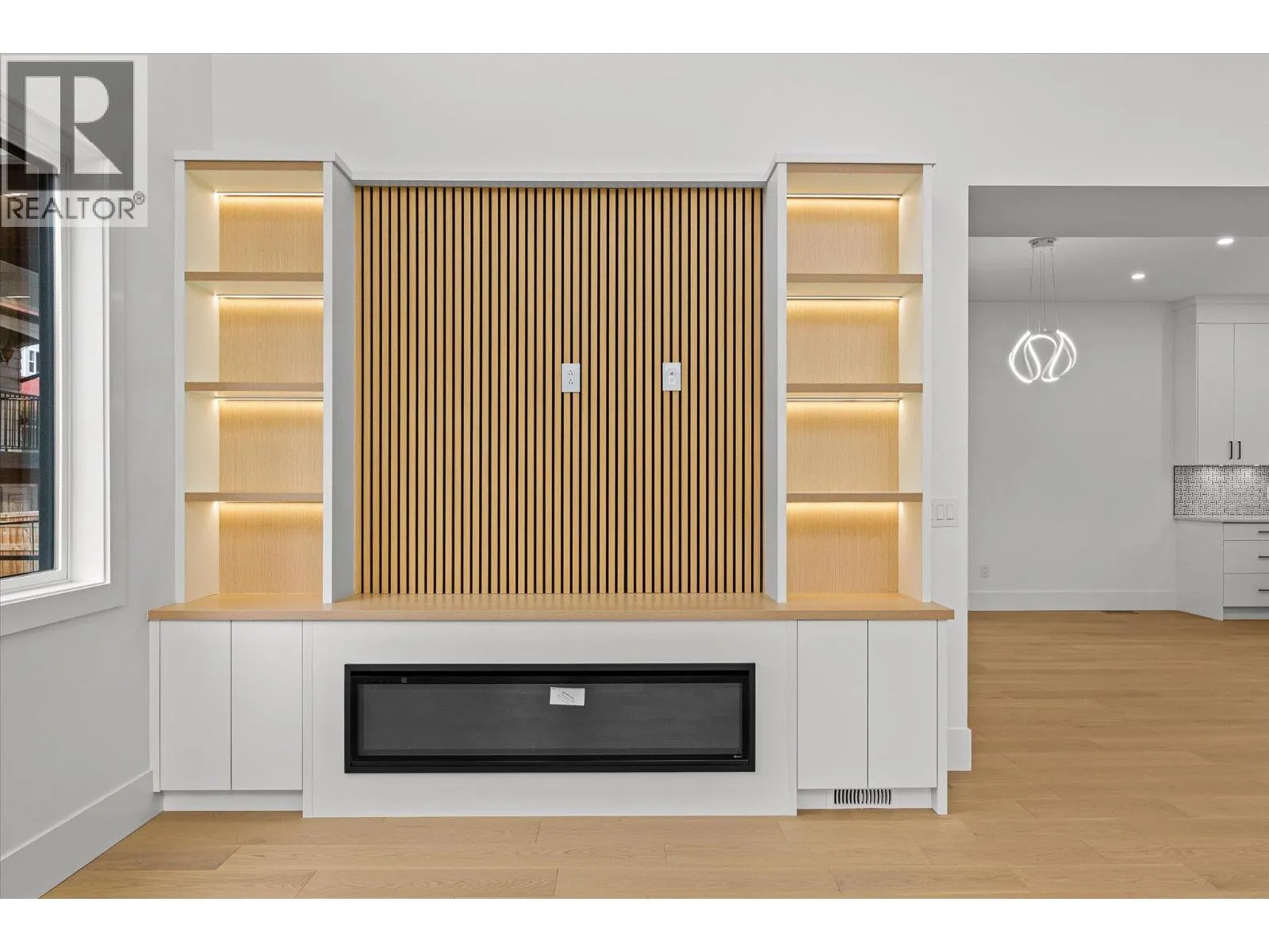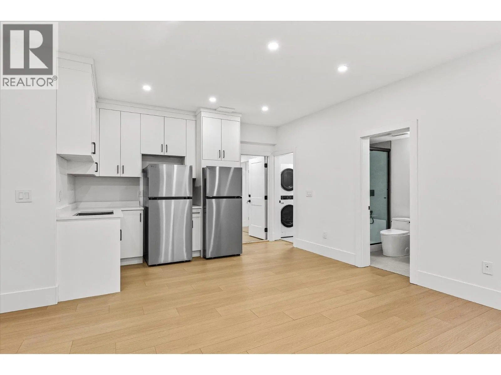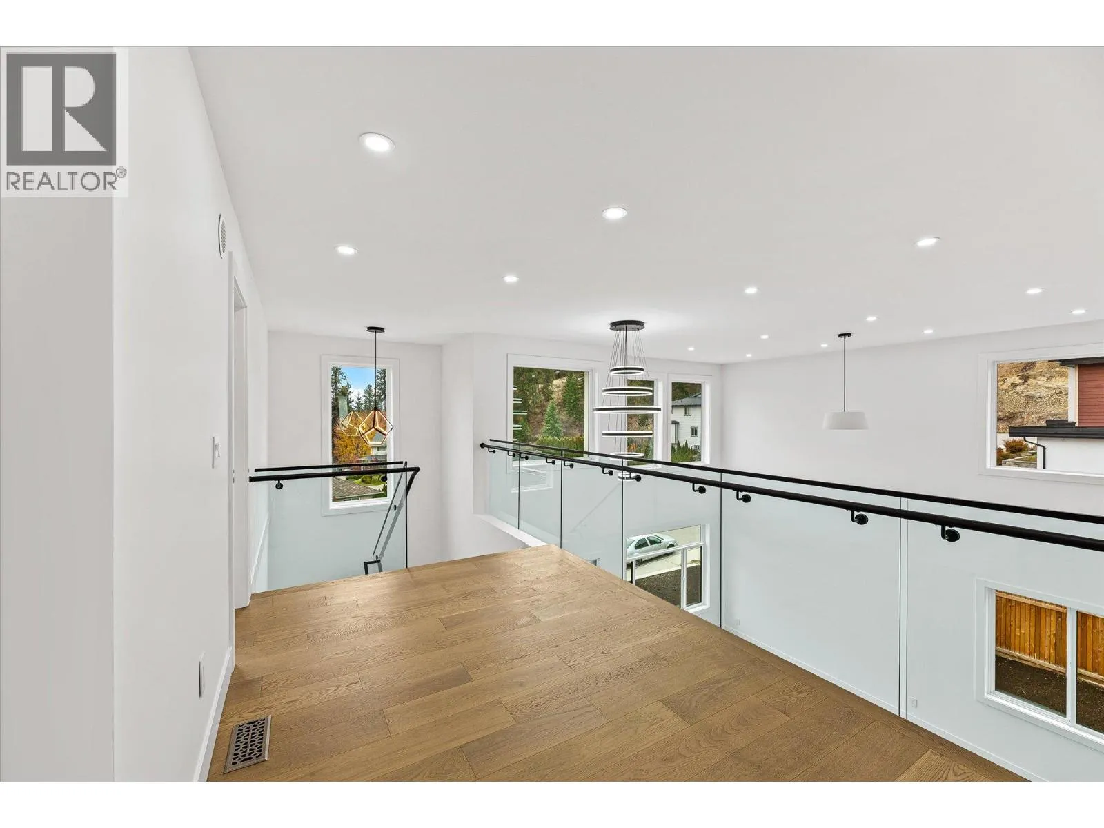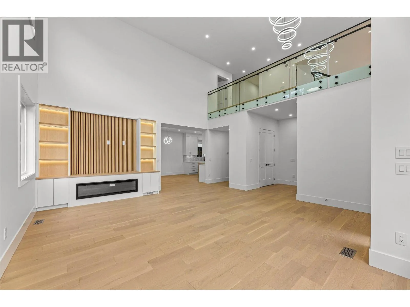 RARELY DO YOU SEE BRAND-NEW, STUNNING, MODERN ARCHITECTURE, FAMILY HOME OFFERED FOR SALE IN NORTH GLENMORE! This home is perfect, 8 bedrooms and 7 bathrooms, including a 2-bedroom LEGAL SUITE for rental revenue. The kitchen is a dream and features an ENORMOUS island including Fisher Paykel luxury appliance package, custom high gloss soft close cabinetry, ITALIAN quartz countertops, and a beautiful butler's spice kitchen with KitchenAid appliances. 19ft high ceilings continue throughout the entry and the family room area with 60â linear electric fireplace. Grab a glass of wine or coffee, enjoy the covered deck off the main floor primary bedroom, complete with 3pc ensuite or additional covered deck off the living room. Main floor also includes laundry room, and an office. The second floor primary bedroom is a peaceful retreat offering, large custom walk-in closet, ensuite, dual sinks, free-standing tub, and 6 jet shower. 2 additional bedrooms with shared ensuite, plus a 3rd bedroom with it's own ensuite and large balcony for sweeping valley/mountain views on the 2nd level. The lower-level 2-bedroom suite has private laundry, quartz counters, and full appliance package. The lower level also features a wet bar and additional bedroom and full bathroom for the main house. Plenty of parking with a 2-car garage and massive driveway. Other highlights include central AC, wired for 4 security cameras, custom wood soffits, riobel plumbing fixtures, engineered HWD floors & more. (id:27476)
