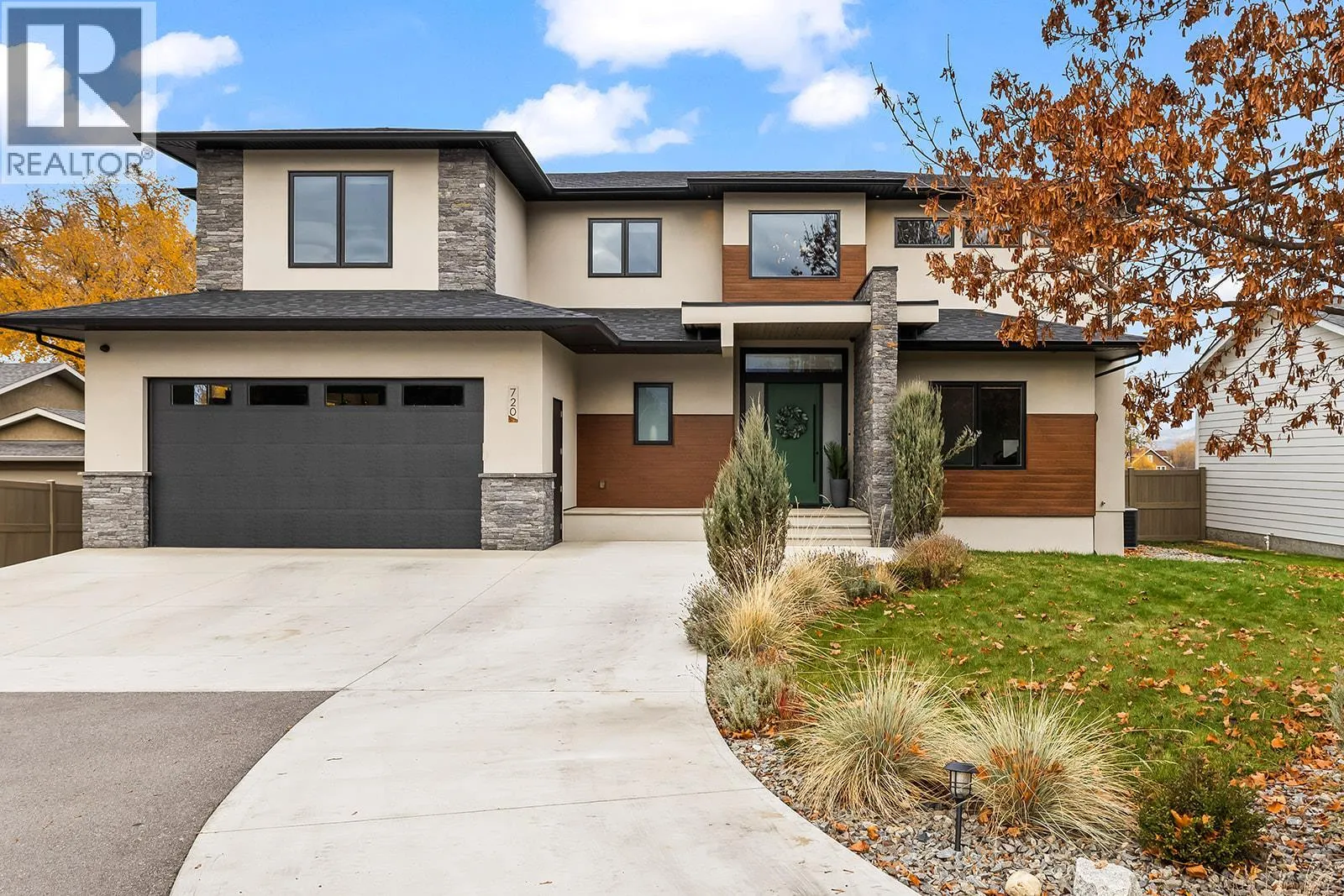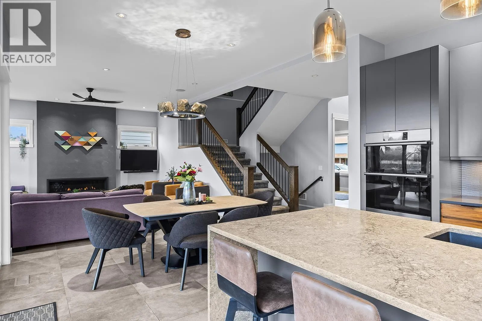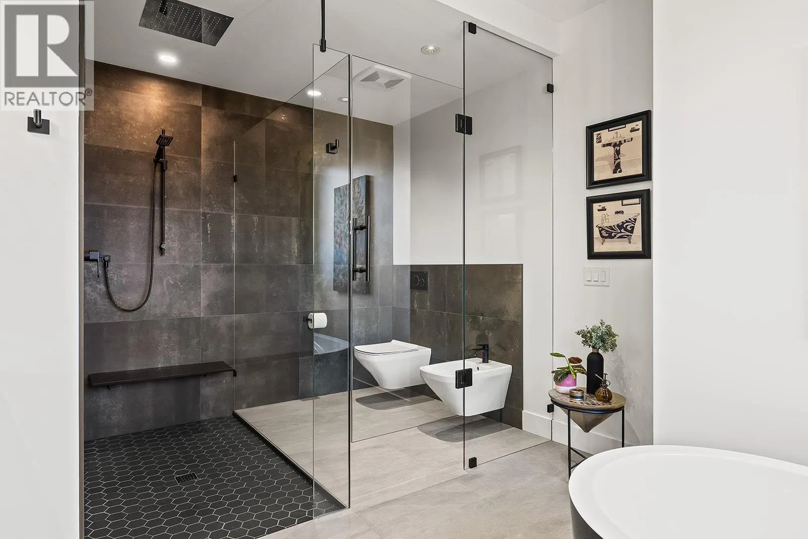 Designed with impressive scale, this home features soaring ceilings, oversized doorways, and a bright, open-concept main living space filled with natural light. The contemporary kitchen offers modern finishes, a large island, a butlerâs pantry, and effortless flow onto a spacious covered deck, perfect for year-round entertaining. The backyard delivers exceptional privacy and lifestyle, complete with a sleek in-ground pool with concrete patio surround, mature landscaping, and unobstructed views toward land soon to be organic orchard. With six bedrooms, plus an office and five bathrooms, this residence provides outstanding flexibility for families of all sizes. The upper level includes four generously sized bedrooms, including one with its own ensuite, a standout primary suite with an oversized layout and true walk-in closet, and a large laundry room for added convenience. The main floor offers a dedicated office and bathroom, while the lower level features its own kitchen, laundry, bathroom, and two bedrooms, along with a multi-purpose room, making it ideal for guests, extended family, or a private living space that could easily be suited. Those who appreciate extra garage and workspace will enjoy the true double garage with an attached shop, along with abundant additional parking. Every detail reflects quality craftsmanship and thoughtful design. Positioned on a quiet street in the Lower Mission, this home is an uncommon find in one of Kelownaâs most desirable pockets. (id:27476)