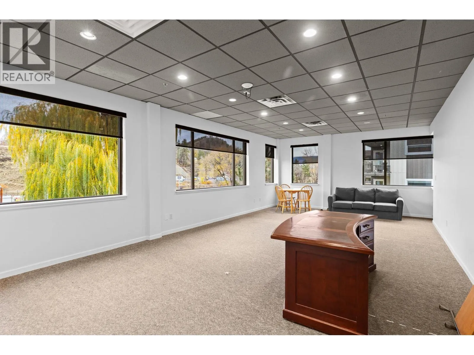 Well-maintained second-floor office space available in a central Kelowna professional building. Unit 203 offers a bright and functional layout suitable for medical, wellness, counselling, or general office users. The space includes a kitchenette, three individual rooms that can support private offices, treatment rooms, or collaborative workspace. Neutral interior finishes and ample natural light create a comfortable and professional environment for staff and clients alike. Common washrooms and elevator accessible. Conveniently located off Enterprise Way with easy access to Highway 97, transit, and nearby amenities, the building offers strong visibility and accessibility within Kelownaâs Landmark/Enterprise commercial corridor. (id:27476)