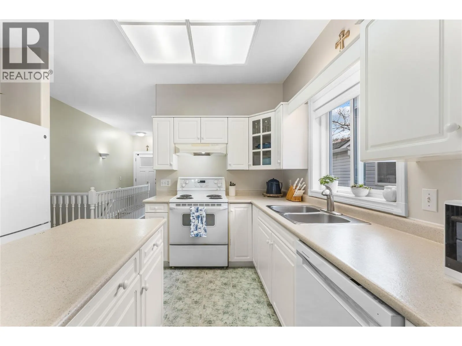 Tucked into a quiet, family-friendly community in Kelowna, this well-maintained single-family home is move-in ready and packed with practical updates. A high-efficiency furnace (2022), new windows, a renovated basement, and a refreshed composite deck mean your big ticket items are already done, just move in and enjoy. Natural light fills the main living area, while the kitchen and dining space flow seamlessly onto a covered deck perfect for BBQs and evening wind-downs. The fully fenced yard is great for kids, pets and gardening, with a handy shed for tires or seasonal gear. Underground irrigation in the front and back yards keeps lawn care easy and efficient. The complex features RV parking, an outdoor pool, playground, and community park - all with low bare land strata fees of just $180/month. Mill Creek Park's scenic trails are just around the corner, and the Kangaroo Farm is a short stroll away. With quiet neighbors, great amenities, and proximity to YLW Airport, UBCO, and shopping, this home offers the perfect balance of comfort, convenience, and community. (id:27476)