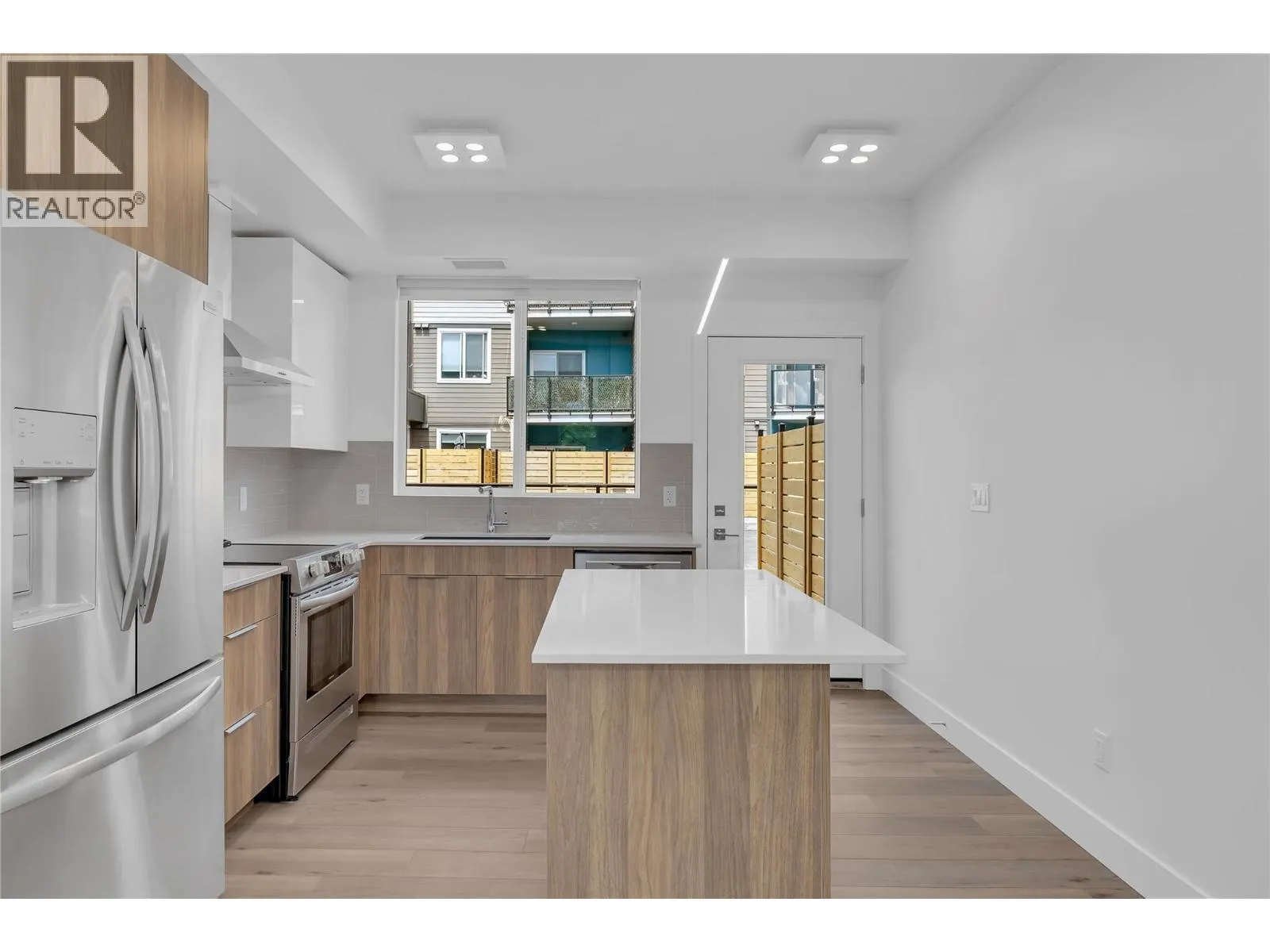 DEVELOPER PROMO NO STRATA FEES FOR 3 YEARS!! This brand new home offers 3 bedrooms, 3 bathrooms, and 1445 sq ft of functional space. A park space sits directly in front of the unit, and the lower level includes a den or office suitable for working from home. The open concept main floor connects the living, dining, and kitchen areas. The kitchen is finished with quartz countertops and modern cabinetry, and the adjoining patio includes a natural gas hookup. Large windows bring in plenty of natural light. Durable luxury vinyl flooring runs through the main areas and 9 foot ceilings create a spacious feel. Green Square includes garden plots, a fitness room, rooftop patio, dog wash, and bike storage. Close by are wineries, restaurants, a park, shopping, and Gyro Beach. GST is applicable, with a possible exemption for first time buyers. (id:27476)