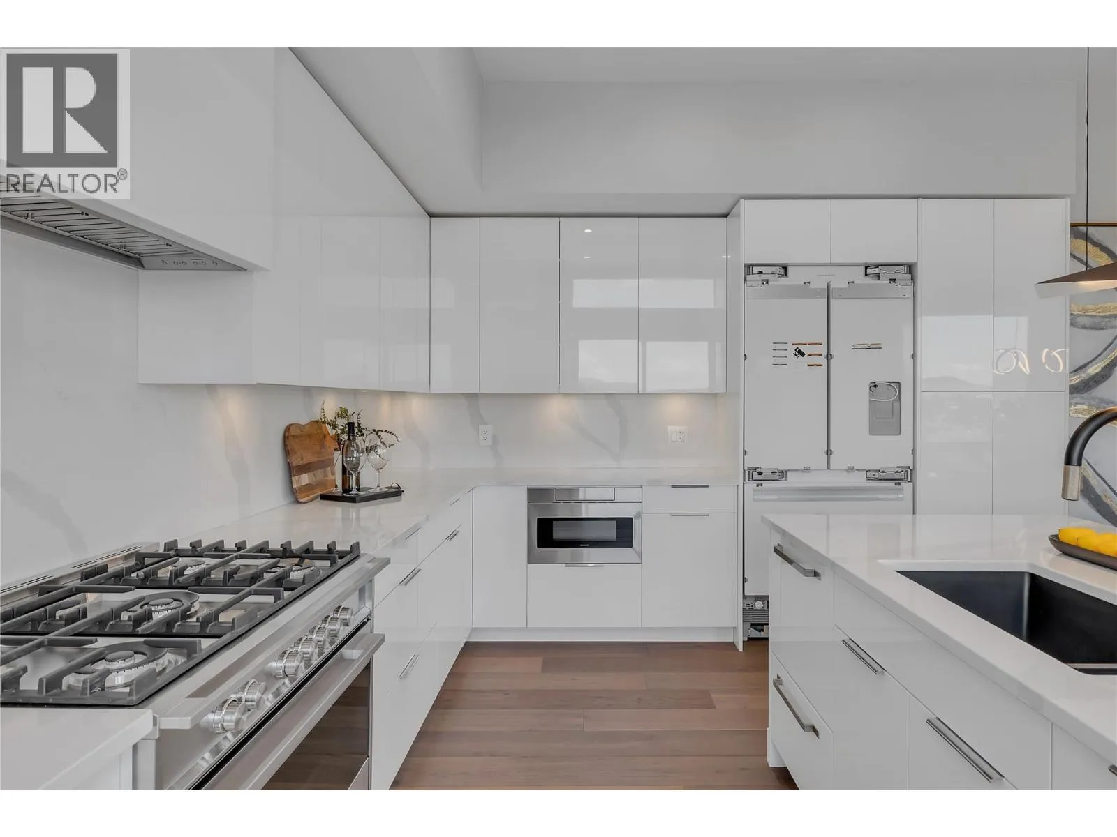 DEVELOPER PROMO NO STRATA FEES FOR 3 YEARS!! Located in the heart of the Lower Mission, this Green Square Vert penthouse offers 3 bedrooms, 2 bathrooms, and 1777 sq ft of interior living space. An additional 900 sq ft of outdoor space includes a hot tub and views of Okanagan Lake and the surrounding mountains. Interior features include custom cabinetry, marble inspired quartz countertops, engineered hardwood flooring, Fisher Paykel appliances, custom closets, and quality finishes throughout. Two parking stalls and a large in unit storage room are included. Green Square provides extensive amenities including the Modo car share program, community garden plots, fitness facility, rooftop patio, dog wash, and bike storage. The location offers quick access to wineries, restaurants, parks, shopping, and Gyro Beach, just two blocks away. GST is applicable, with a possible exemption for first time buyers in BC. (id:27476)