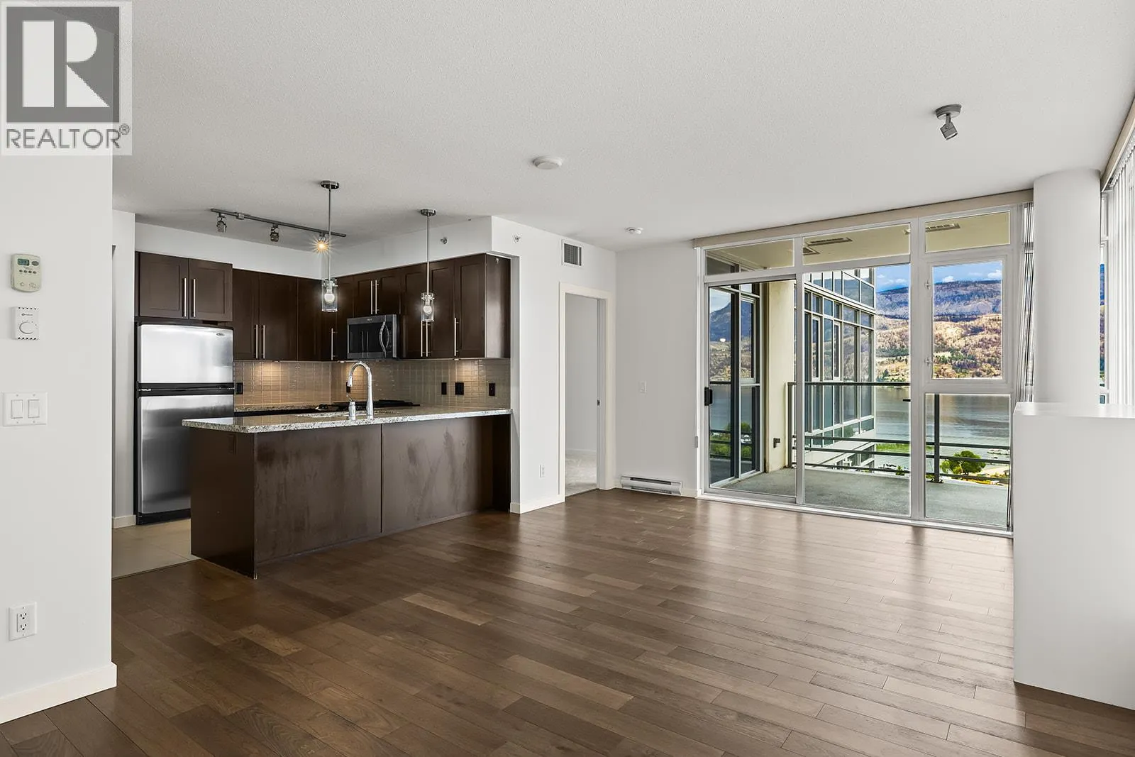 Discover this newly painted, and ready to move in condo in one of Kelowna's most coveted developments â Waterscapes Skye Tower. This 2-bedroom and den condo has not only been freshly painted, but comes with new carpets in both bedrooms and updated light fixtures. The living areas had also been previously updated with engineered flooring. This condo offers breathtaking views of the lake and Knox Mountain. The kitchen boasts granite countertops and tiled flooring and seamlessly flows into the open living and dining area with the engineered hardwood flooring, leading to one of the more expansive decks in any condo. The Primary bedroom, features a walk-in shower, soaker tub, and marble counters with double sinks. There is also the convenience of a spacious walk-in closet. The second bedroom is strategically positioned on the opposite side of the condo, ensuring enhanced privacy. The den serves as an ideal space for a home office or versatile use. Waterscapes elevates your lifestyle with a large host of amenities, including a fully equipped fitness centre, swimming pool, two inviting hot tubs, a BBQ area, and an amenities room complete with TVs, pool tables, and a kitchen. Suites are also available for rent, catering to visiting guests. Walking distance to downtown, the beach, restaurants, shopping, the casino, theatre and arena. You will love the Waterscapes lifestyle. (id:27476)