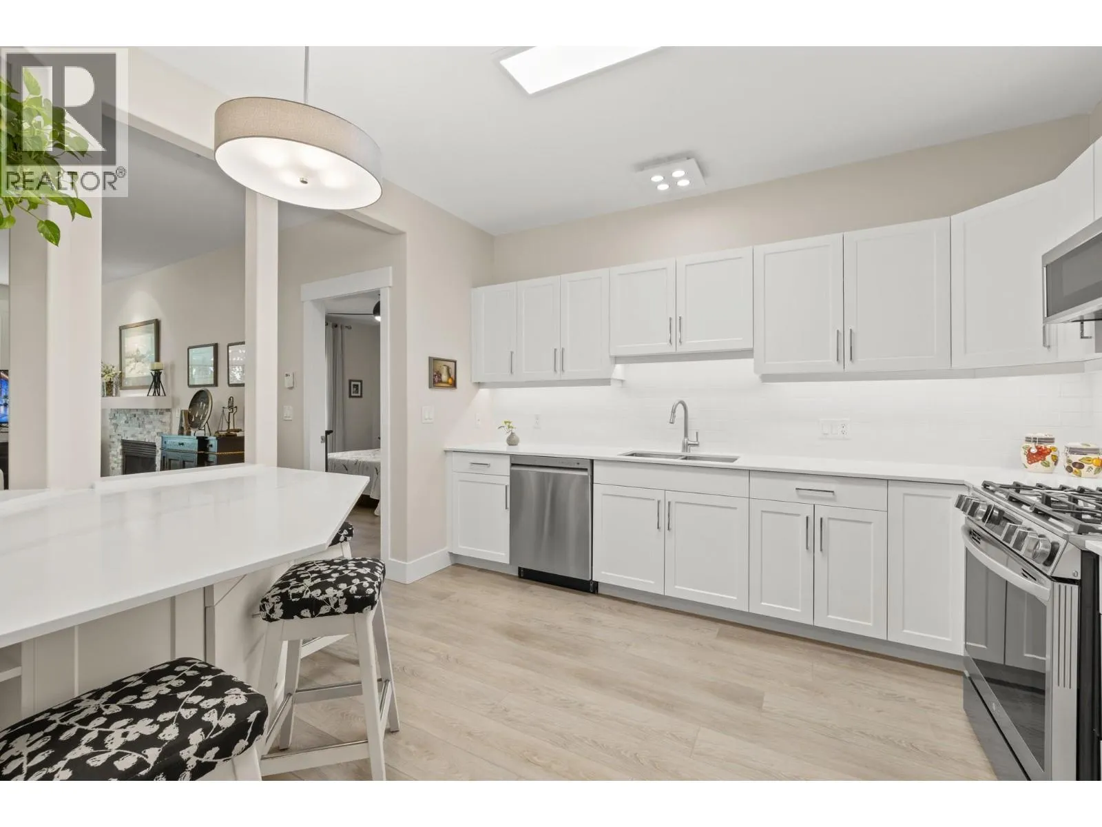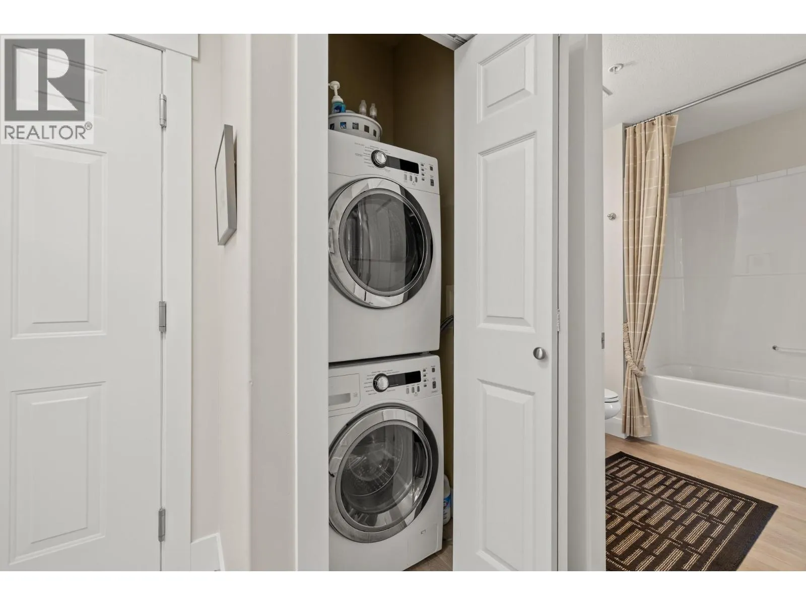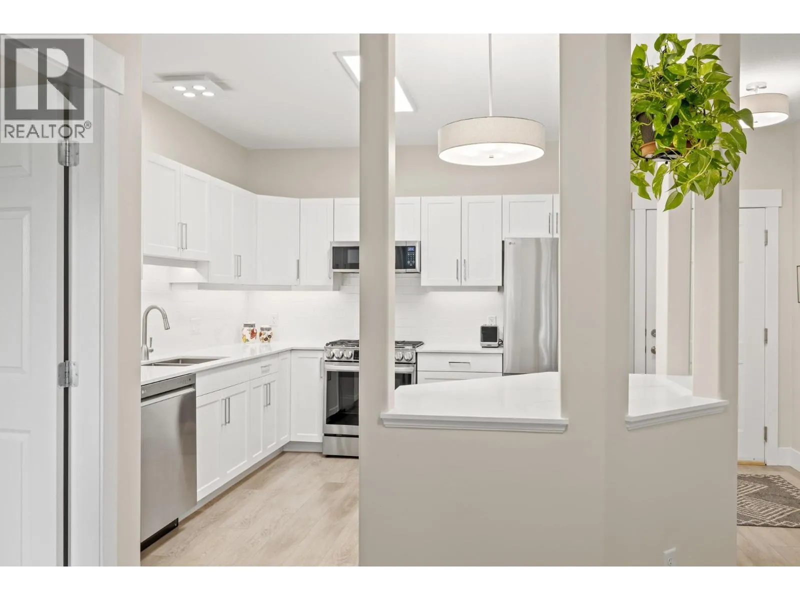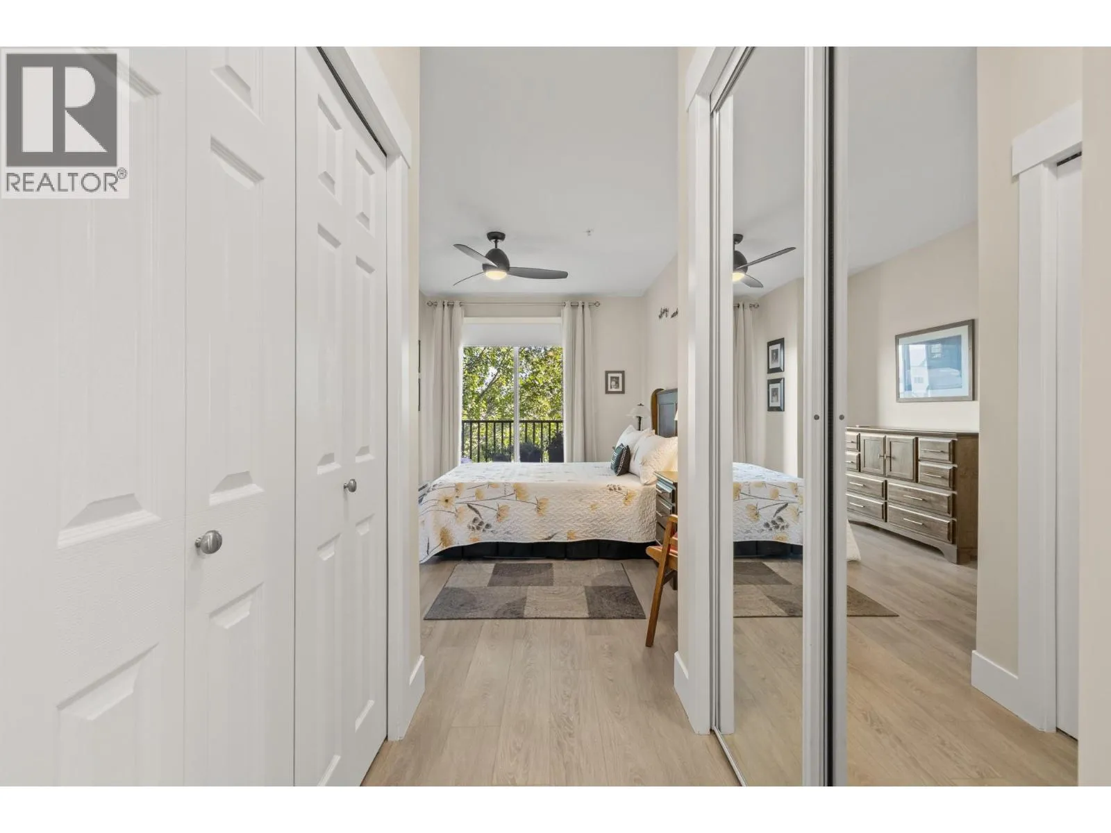 Bright and spacious 2 Bedroom, 2 Bathroom Condo featuring 9â ceilings with a desirable split bedroom layout and open concept design. Each bedroom offers its own private covered patio, perfect for morning coffee or quiet relaxation. With the open floor plan and big windows this unit feels very bright and welcoming with its cosy gas fireplace in the main living area. The kitchen is spacious and modern with quartz counter tops, under cabinet lighting, stainless steel appliances, including a gas range. Additional conveniences include in-suite laundry, Murphy bed, one dedicated parking stall, storage locker, bike storage & recycling bins in the garage. On the 1st and 2nd floors you will find a well equipped fitness room with access to a pool table and a lovely social room. Super location near Okanagan College, Kelowna Hospital, H2O fitness centre, Walking and Biking Trails, Schools Nearby, Good Bus Service and Great Shopping. (id:27476)