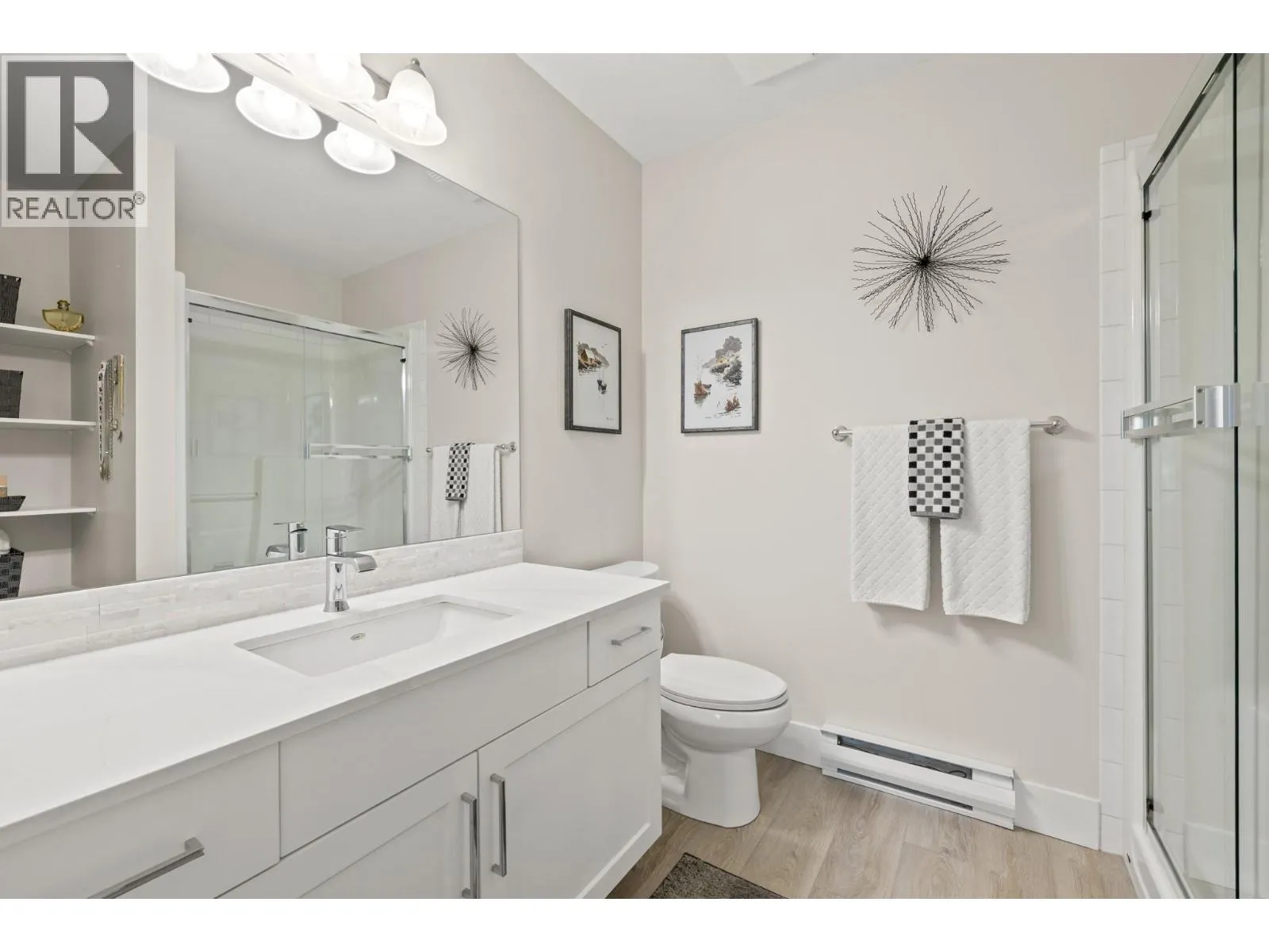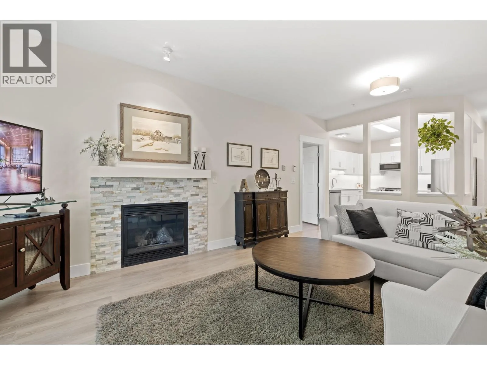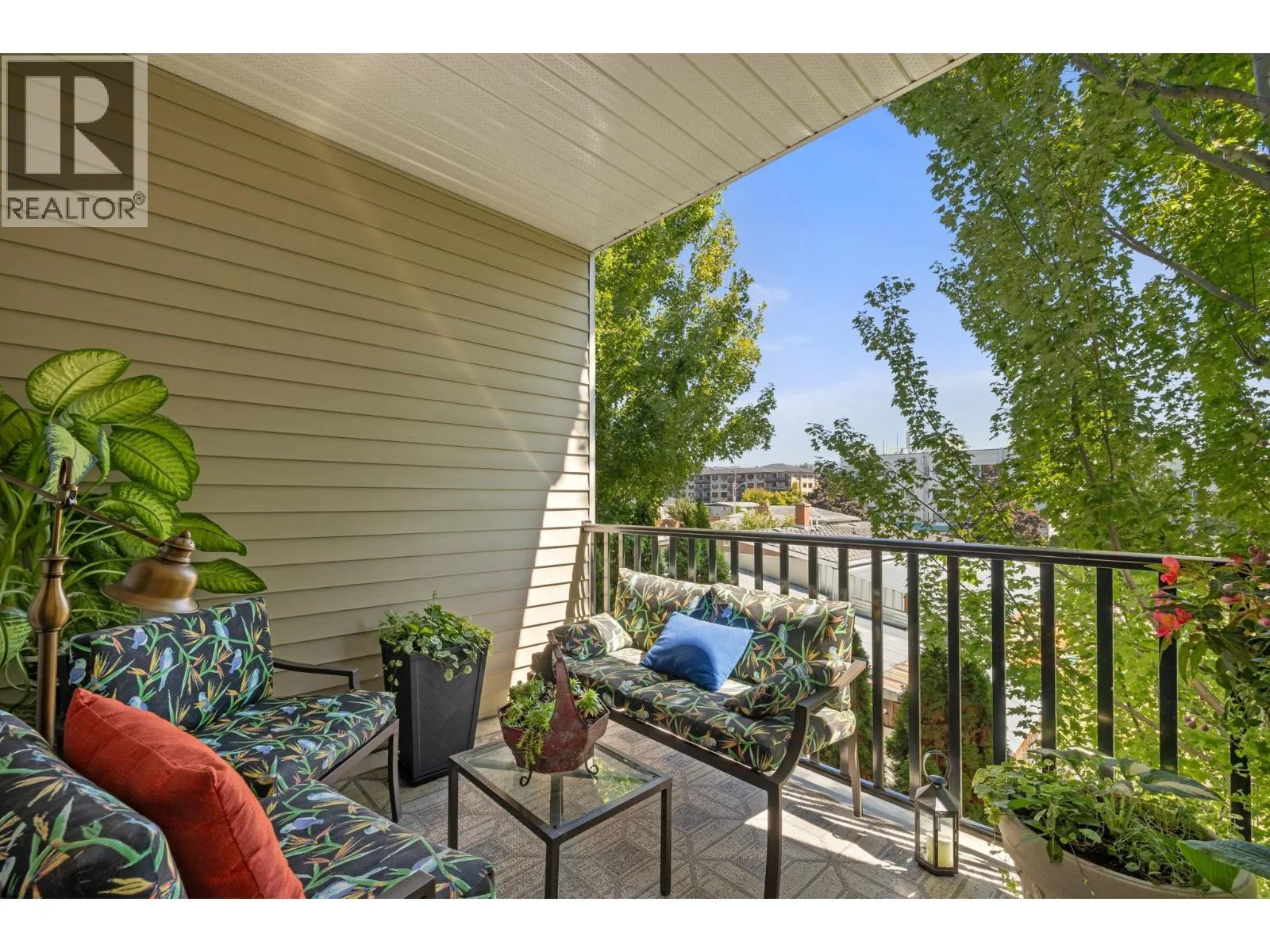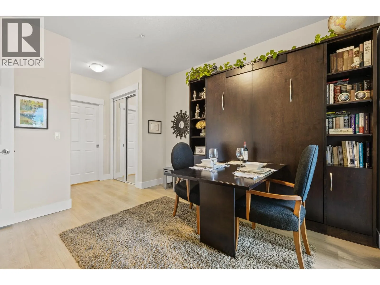 Bright and spacious 2 Bedroom, 2 Bathroom Condo featuring 9â ceilings with a desirable split bedroom layout and open concept design. Each bedroom offers its own private covered patio, perfect for morning coffee or quiet relaxation. With the open floor plan and big windows this unit feels very bright and welcoming with its cosy gas fireplace in the main living area. The kitchen is spacious and modern with quartz counter tops, under cabinet lighting, stainless steel appliances, including a gas range. Additional conveniences include in-suite laundry, Murphy bed, one dedicated parking stall, storage locker, bike storage & recycling bins in the garage. On the 1st and 2nd floors you will find a well equipped fitness room with access to a pool table and a lovely social room. Super location near Okanagan College, Kelowna Hospital, H2O fitness centre, Walking and Biking Trails, Schools Nearby, Good Bus Service and Great Shopping. (id:27476)
