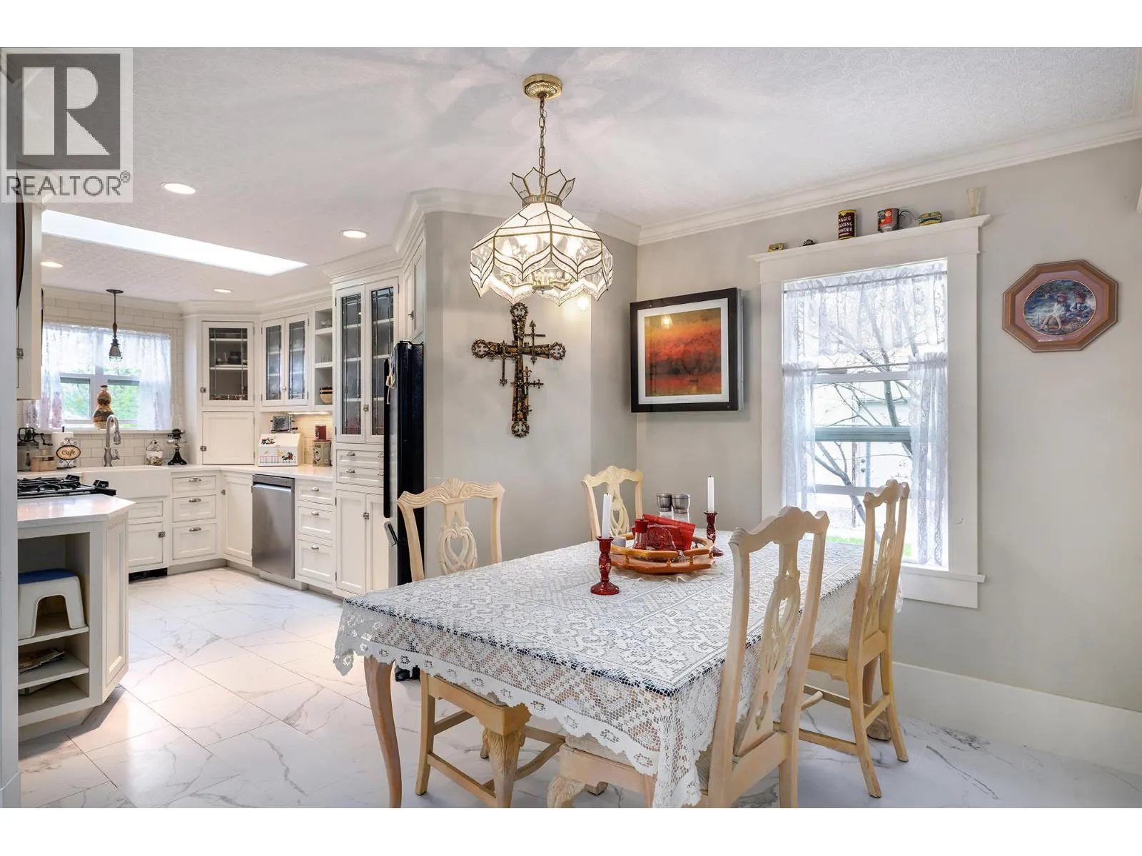 Reduced by $97,000 â Seller Ready to Consider All Serious Offers - Beautifully maintained 1913 Heritage home on a rare 0.3-acre lot in Kelowna, offers both charm and potential development opportunity. This exceptional property blends classic character with thoughtful modern updates. The traditional exterior reflects the homeâs early 20th-century heritage, while the interior showcases warm, elegant living spaces. The expansive living and dining area features an ornate fireplace and large windows that fill the room with natural lightâcreating an inviting setting for everyday living or entertaining. This home provides three well-appointed bedrooms and two updated bathrooms that balance modern convenience with heritage appeal. The beautifully renovated kitchen includes stone countertops, a gas cooktop, upgraded appliances, and carefully preserved vintage details. A separate laundry room adds ease and functionality. Step outside to a stunning, fully landscaped yard highlighted by century-old Walnut and Hazelnut trees, along with many fruit tress and, berry bushes, flowering shrubs, and four raised vegetable beds - an ideal haven for gardeners. Enjoy the private, fully fenced outdoor space with a 6-person hot tub included. Additional features include a large double garage and generous outdoor areas, offering ample room for parking, play, gardening, or future expansion. An extraordinary opportunity to own a piece of Kelownaâs history with significant modern comforts (id:27476)