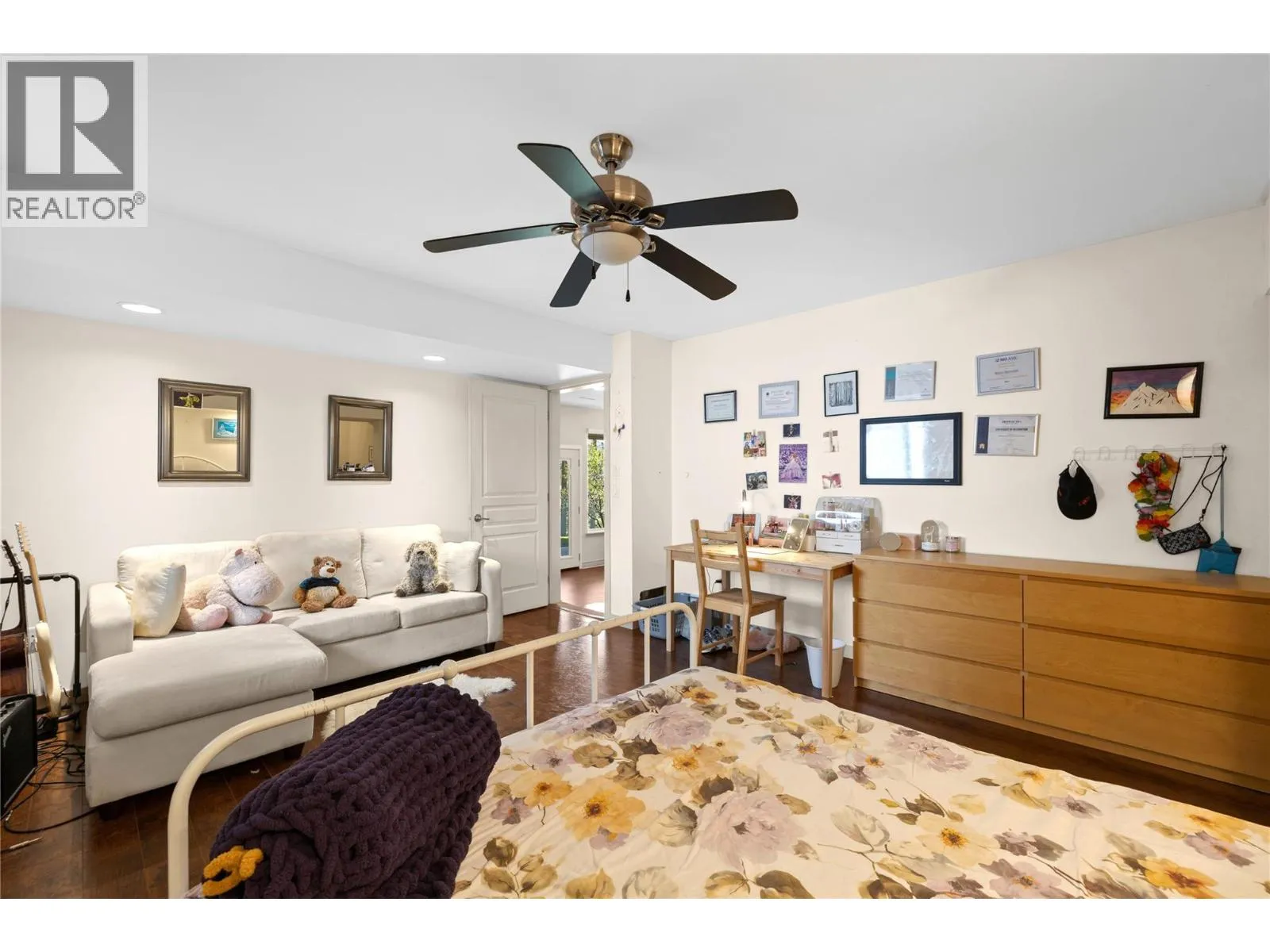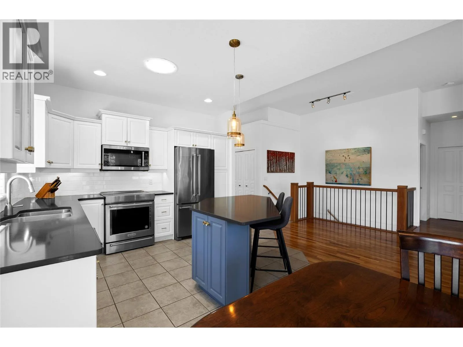 Discover your own retreat tucked into the University District, where convenience meets serenity. This four-bedroom, three-bathroom walk-out home is designed for both everyday comfort and unforgettable gatherings. Sunlight streams through oversized windows, illuminating the airy open-concept interior and showcasing the warm character of hardwood floors and custom cabinetry. The gourmet kitchen, complete with quartz counters, an entertainerâs island, and quality finishes, sets the stage for both casual family meals and lively get-togethers. Step out to the expansive deck or unwind on the lower patio, both offering sweeping mountain and valley vistas. The landscaped backyard feels like a private sanctuary, with a cozy firepit perfect for evenings under the stars. The versatile lower levelâpartially suitedâcreates flexible options for hosting guests or accommodating extended family. With a durable tile roof, thoughtful updates, and membership to the sought-after Casentino community, this home is as practical as it is beautiful. All of this, just moments from UBCO, shops, restaurants, trails, and the lifestyle youâve been waiting for. (id:27476)
